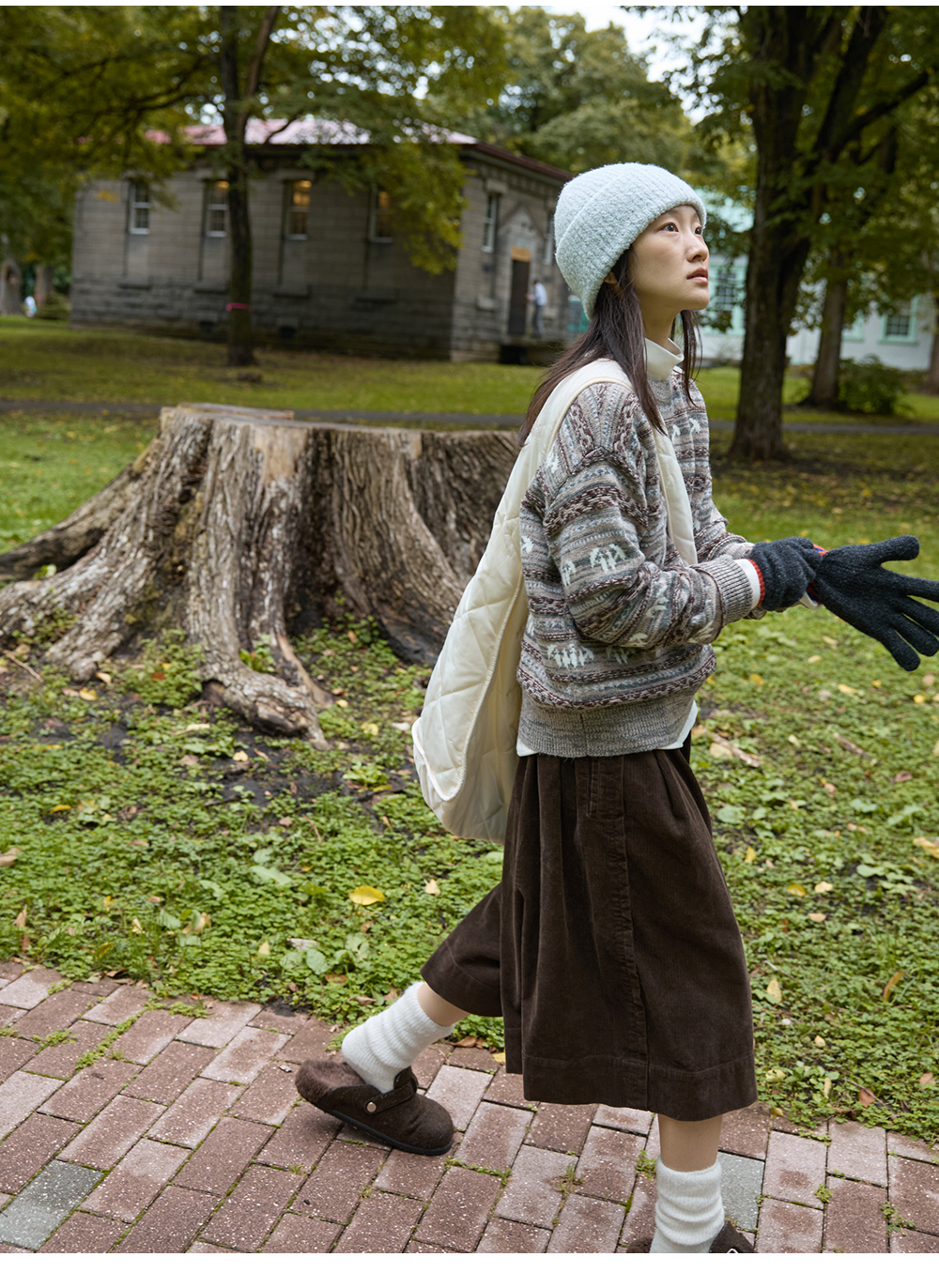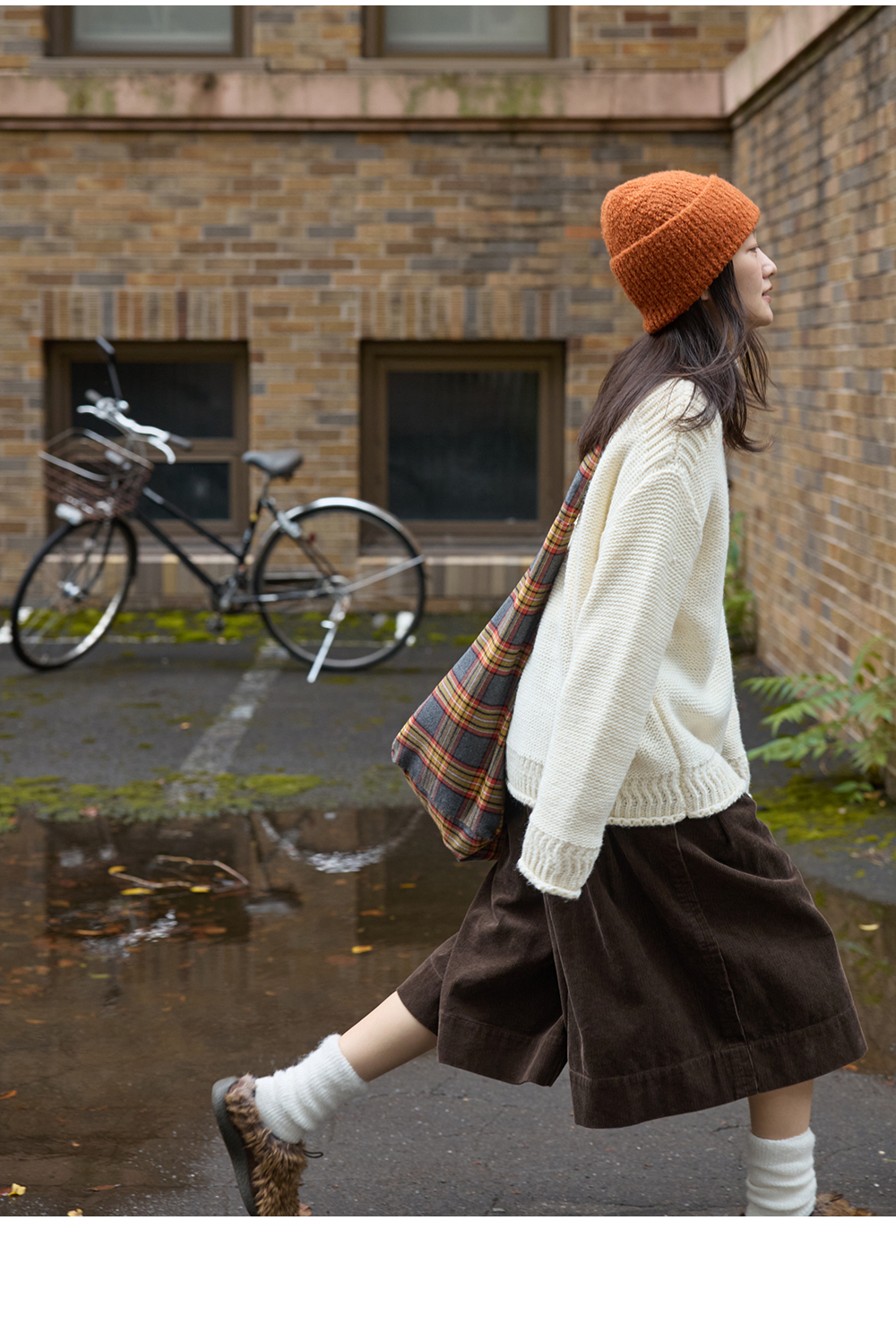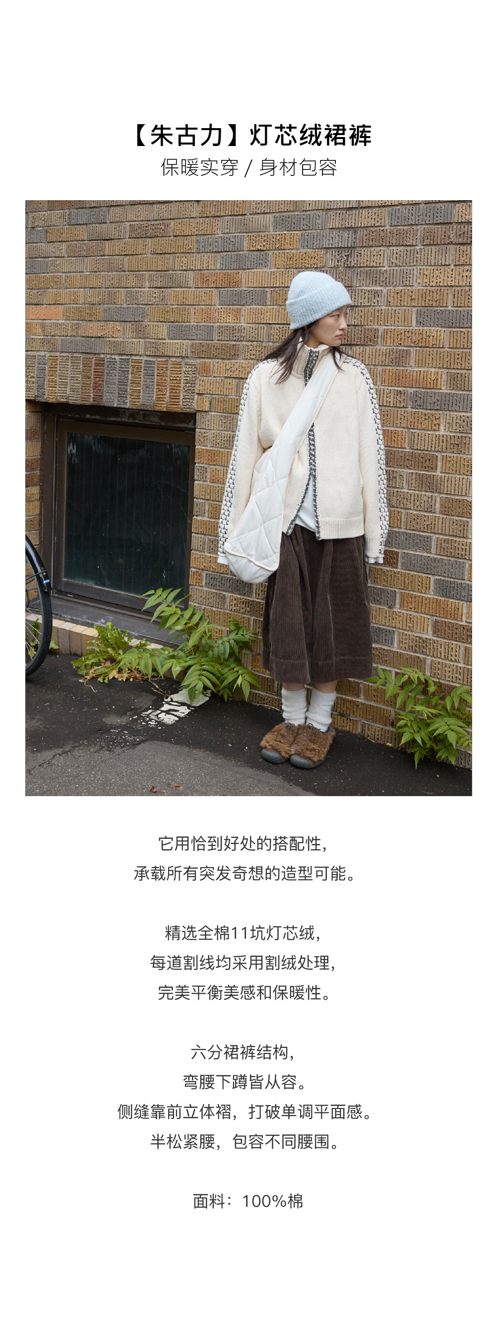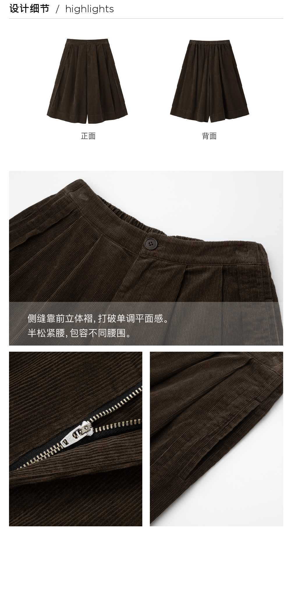 步履不停/5D45067C/半松紧巧克力棕灯芯绒六分裙裤