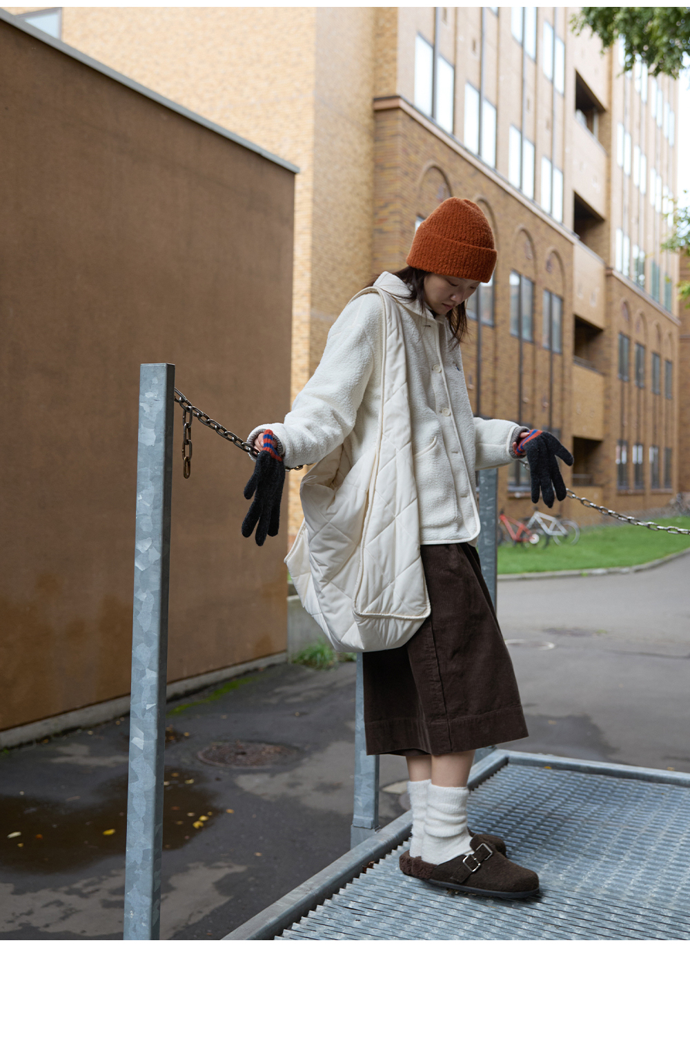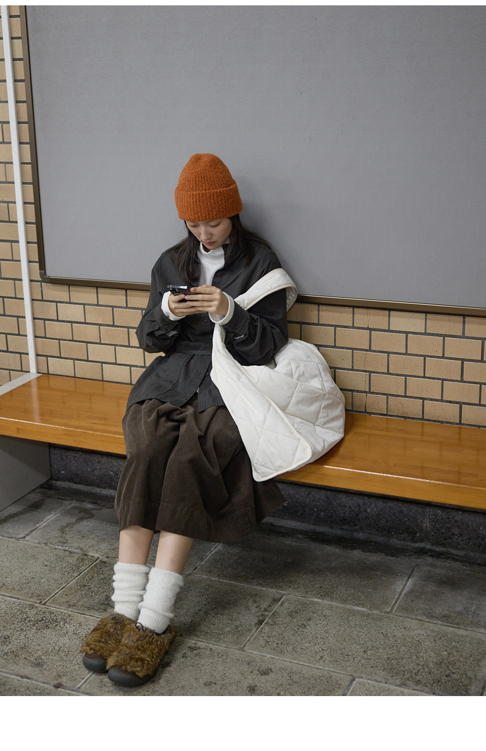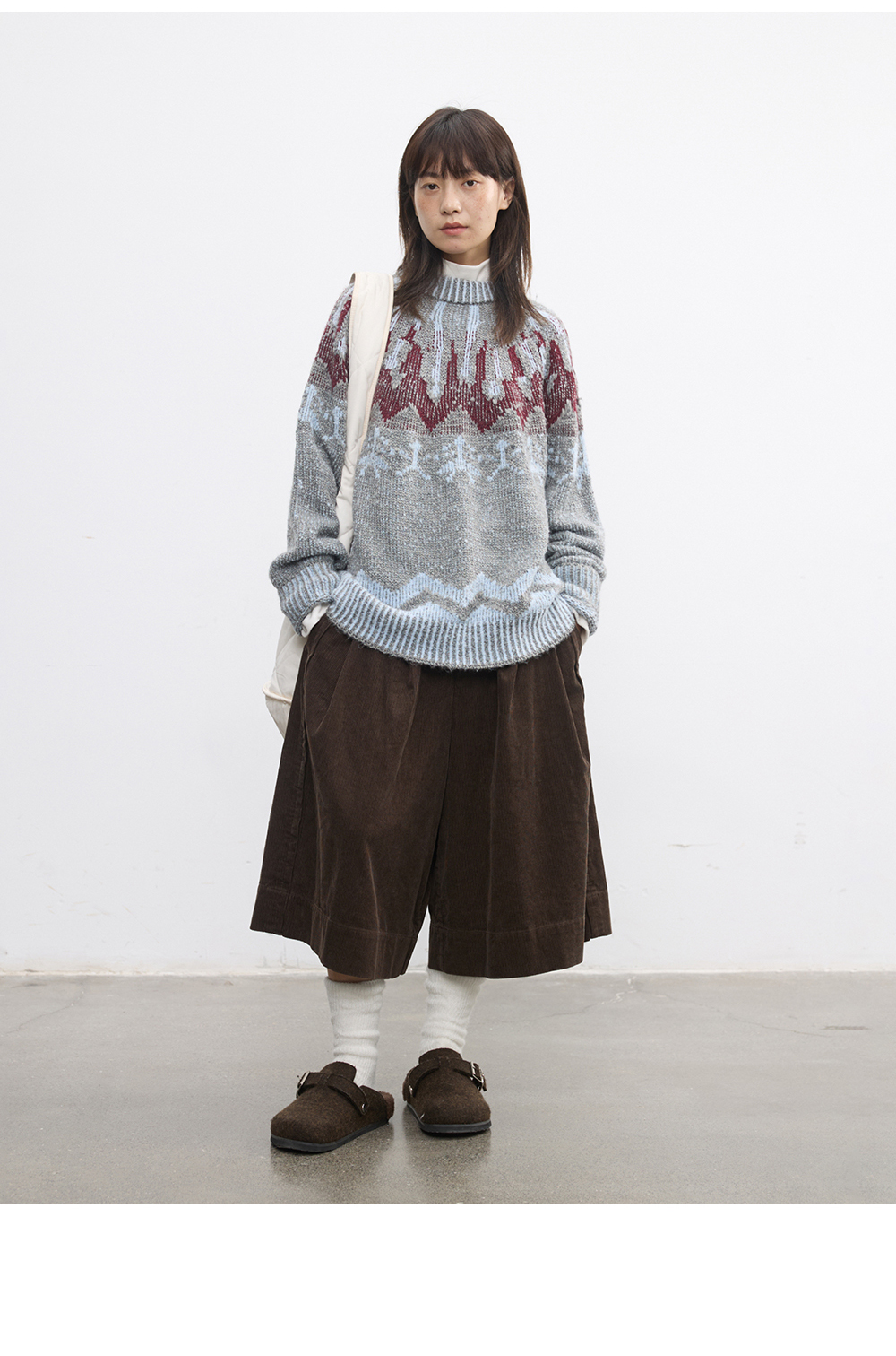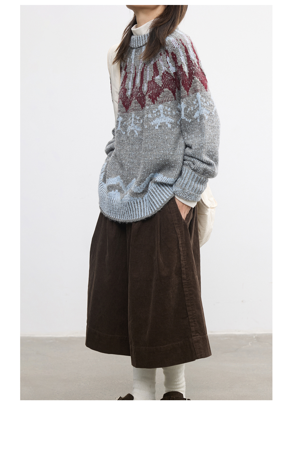 步履不停/5D45067C/半松紧巧克力棕灯芯绒六分裙裤