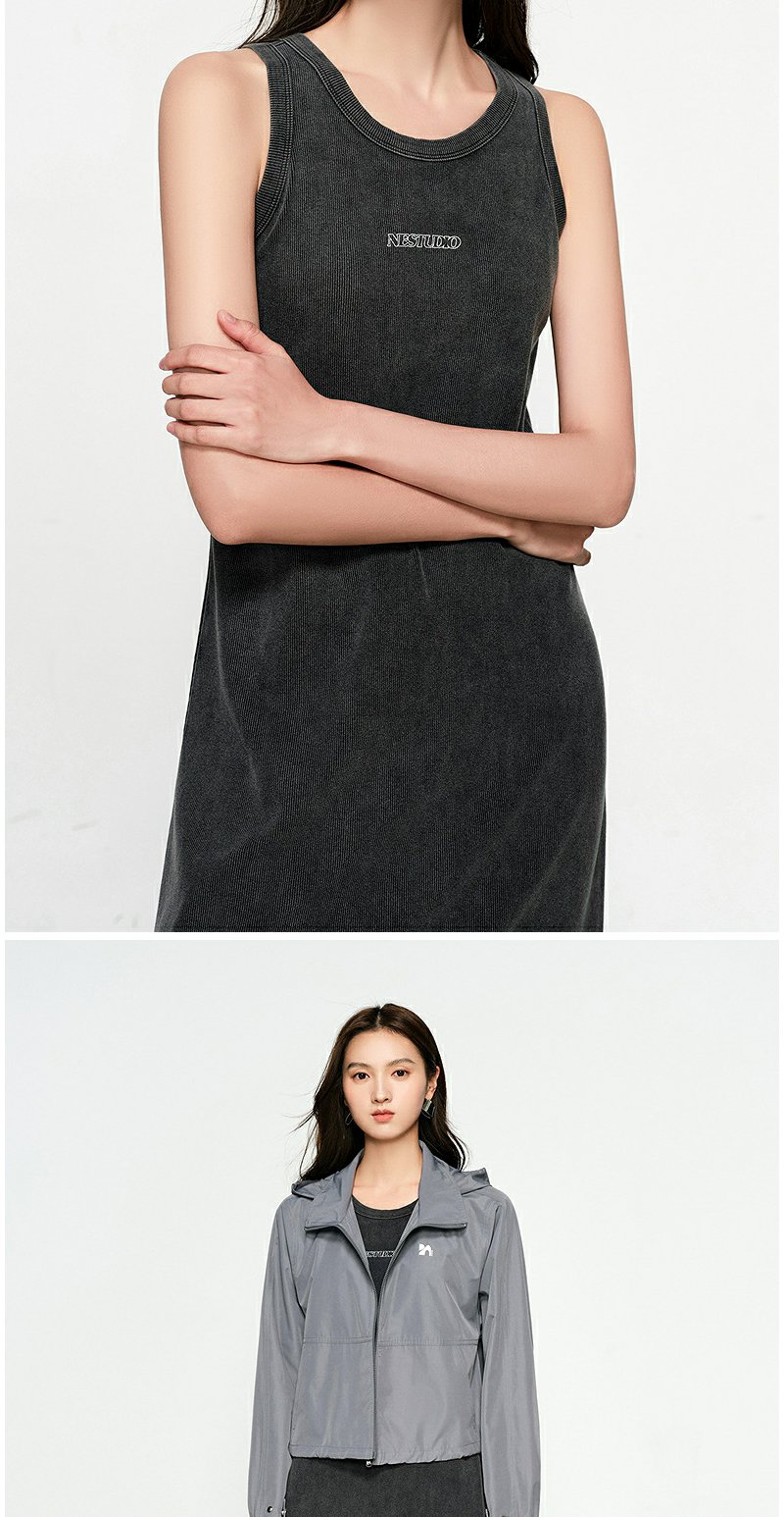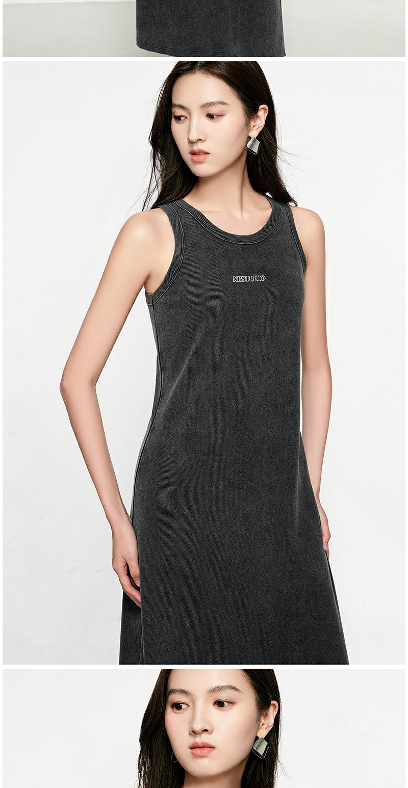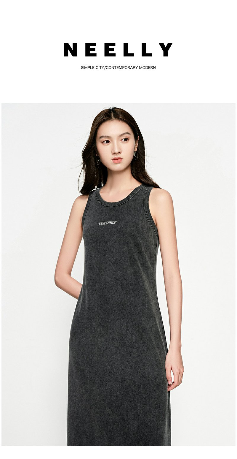 NEELLY纳俪商场同款春季新款休闲松弛背心连衣裙女字母印花中长裙N25031Y01131