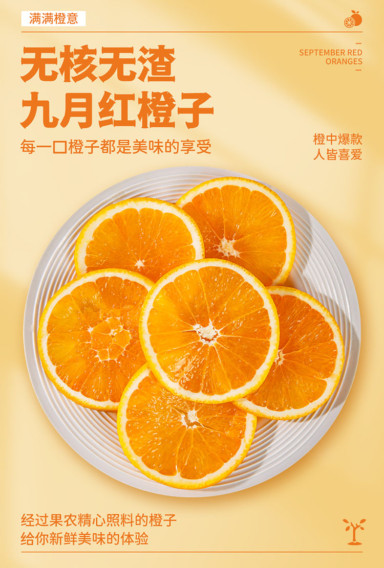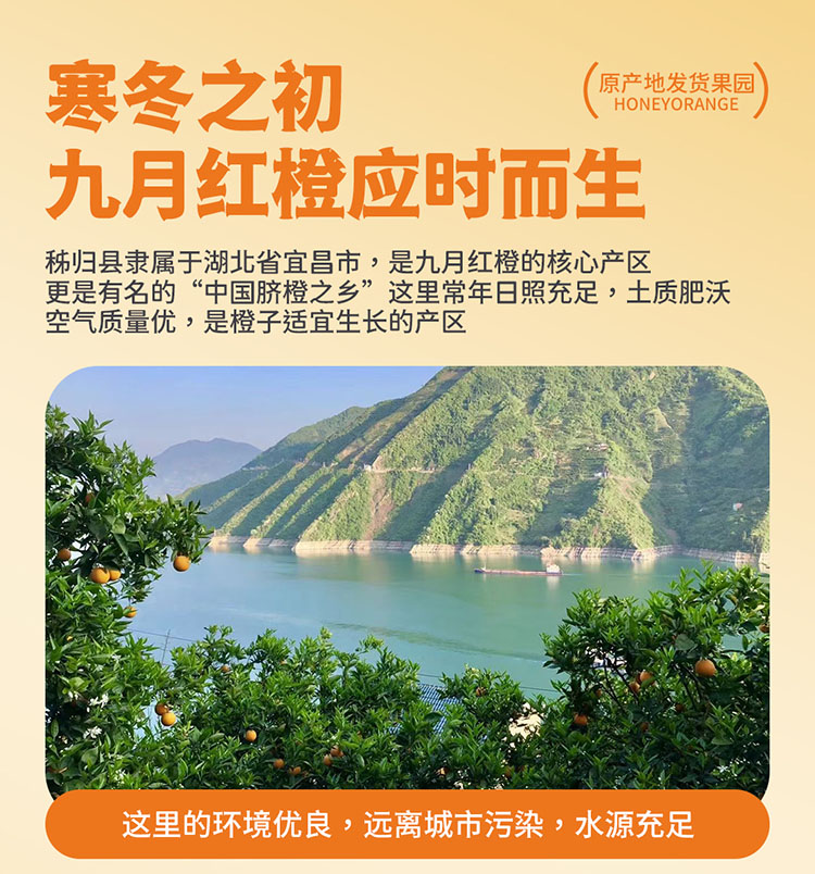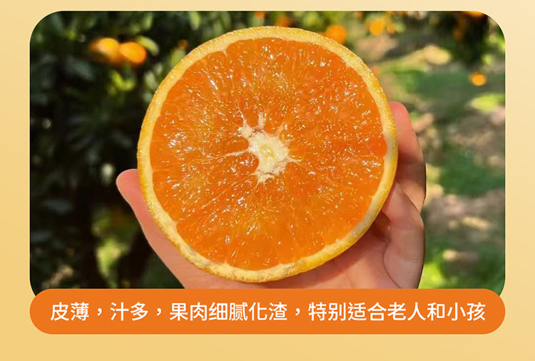 【分销】 宜昌秭归秋橙九月红细腻无渣皮薄多汁 核心产区发送 果农们用心呵护 精心挑选 确保每一颗橙子都皮薄汁多