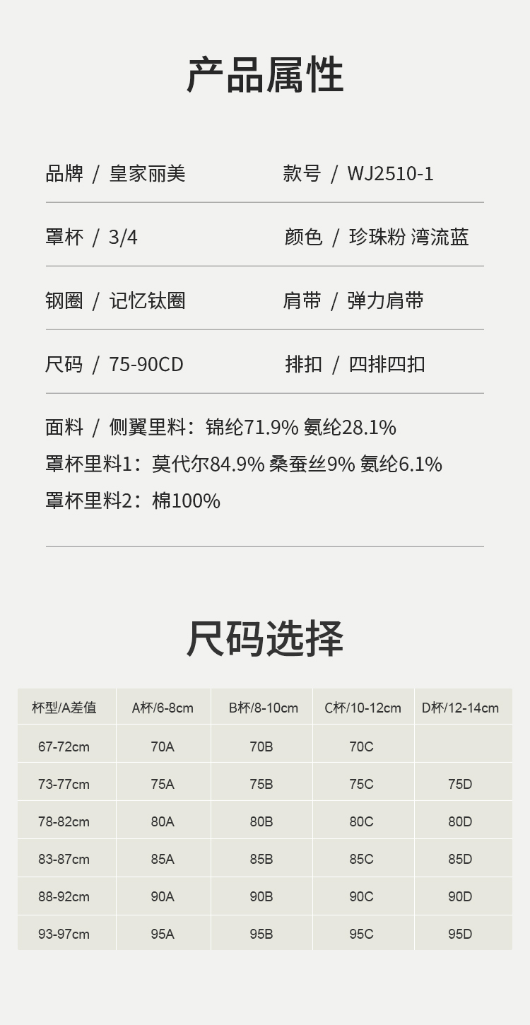 皇家丽美暗香疏影系列文胸 大胸显小侧收副乳 轻薄透气抗菌内衣WJ2510-1