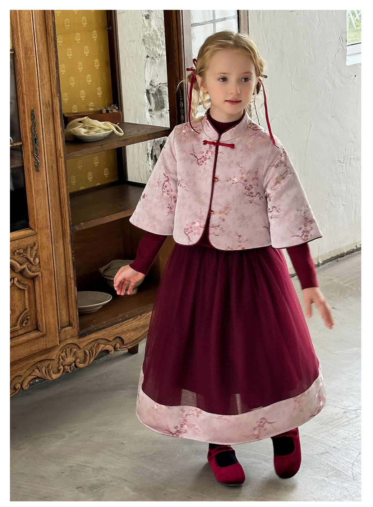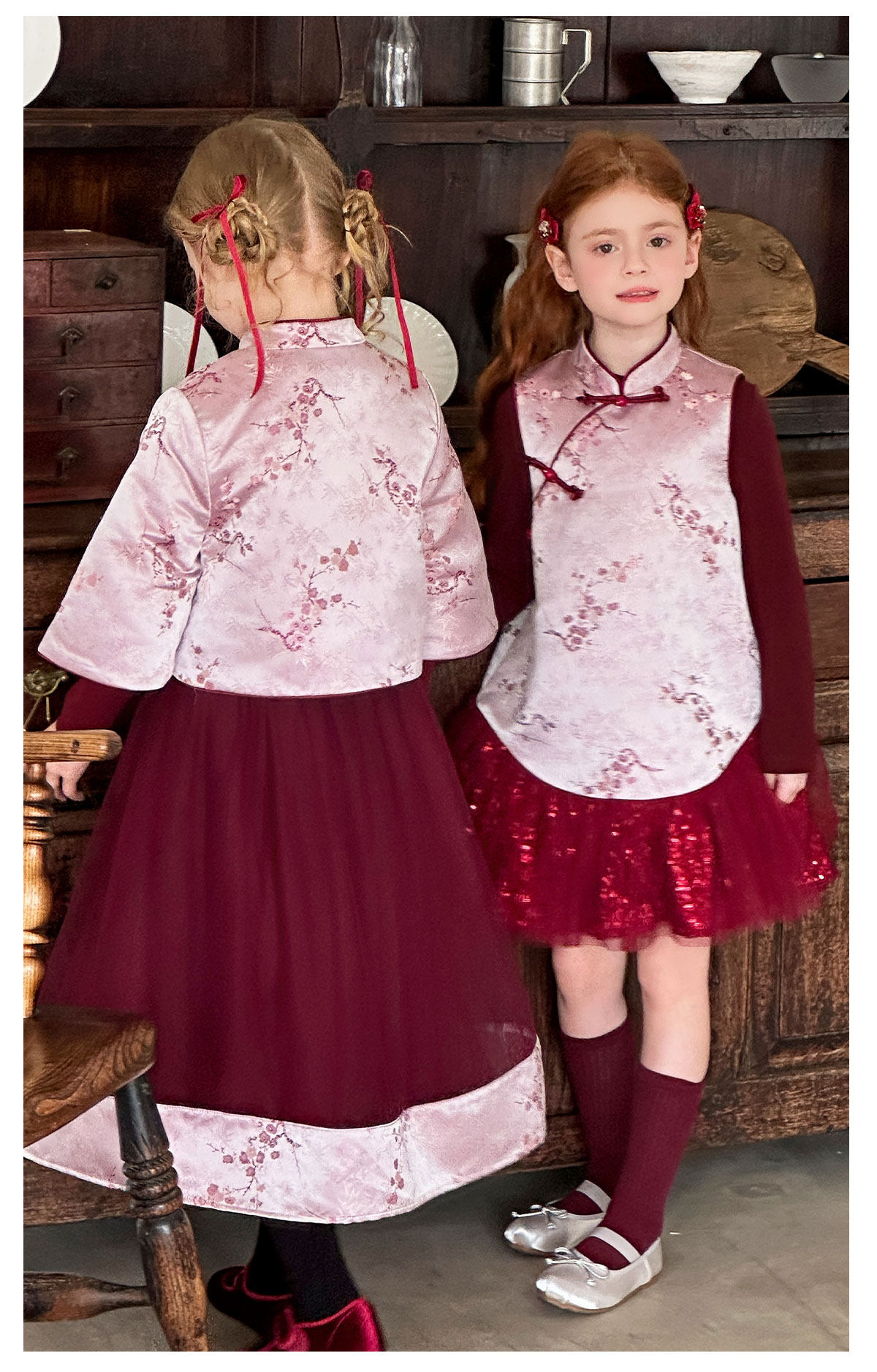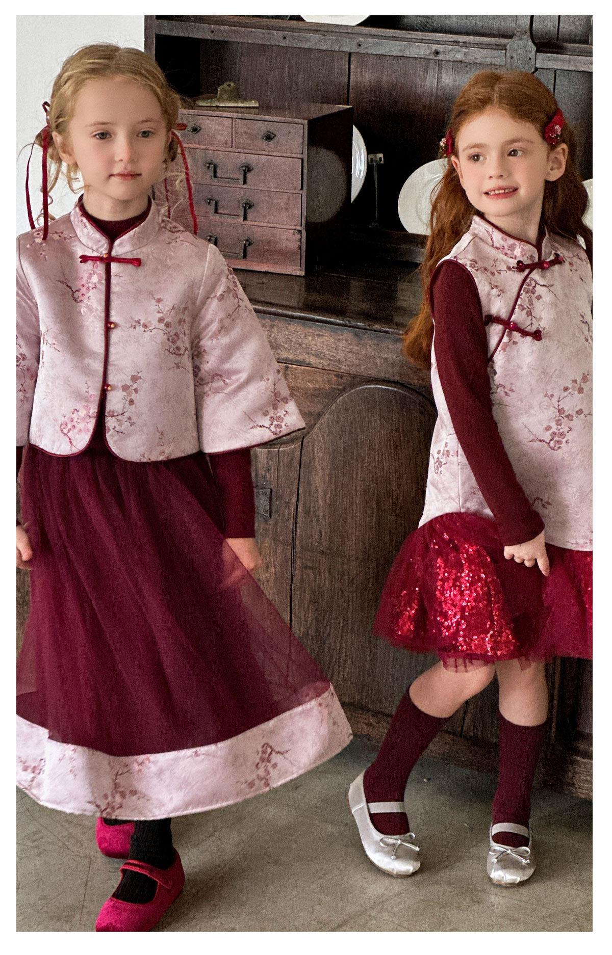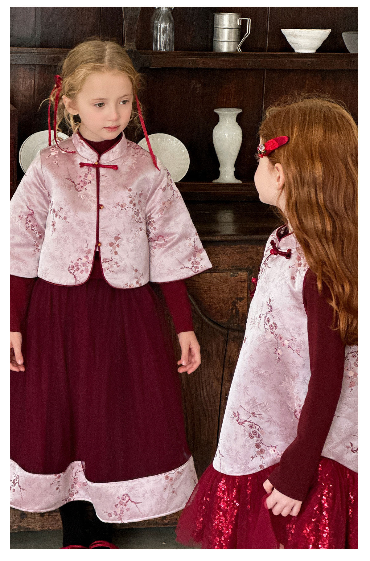 littletime新中式女童旗袍连衣裙拜年服立领盘扣花卉喜庆拜年服