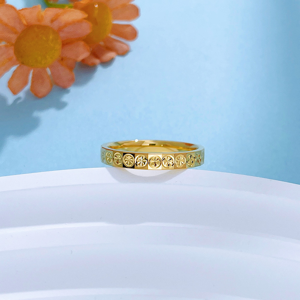 【限时克减150元】足金999 #CNC #固口戒指 5G黄金空心几何方形车花仿钻戒指固口圈戒(面宽约2.7-3.1mm)(BE5GJZ00161)(预售产品下单后不退款不退货不换货不补差价)