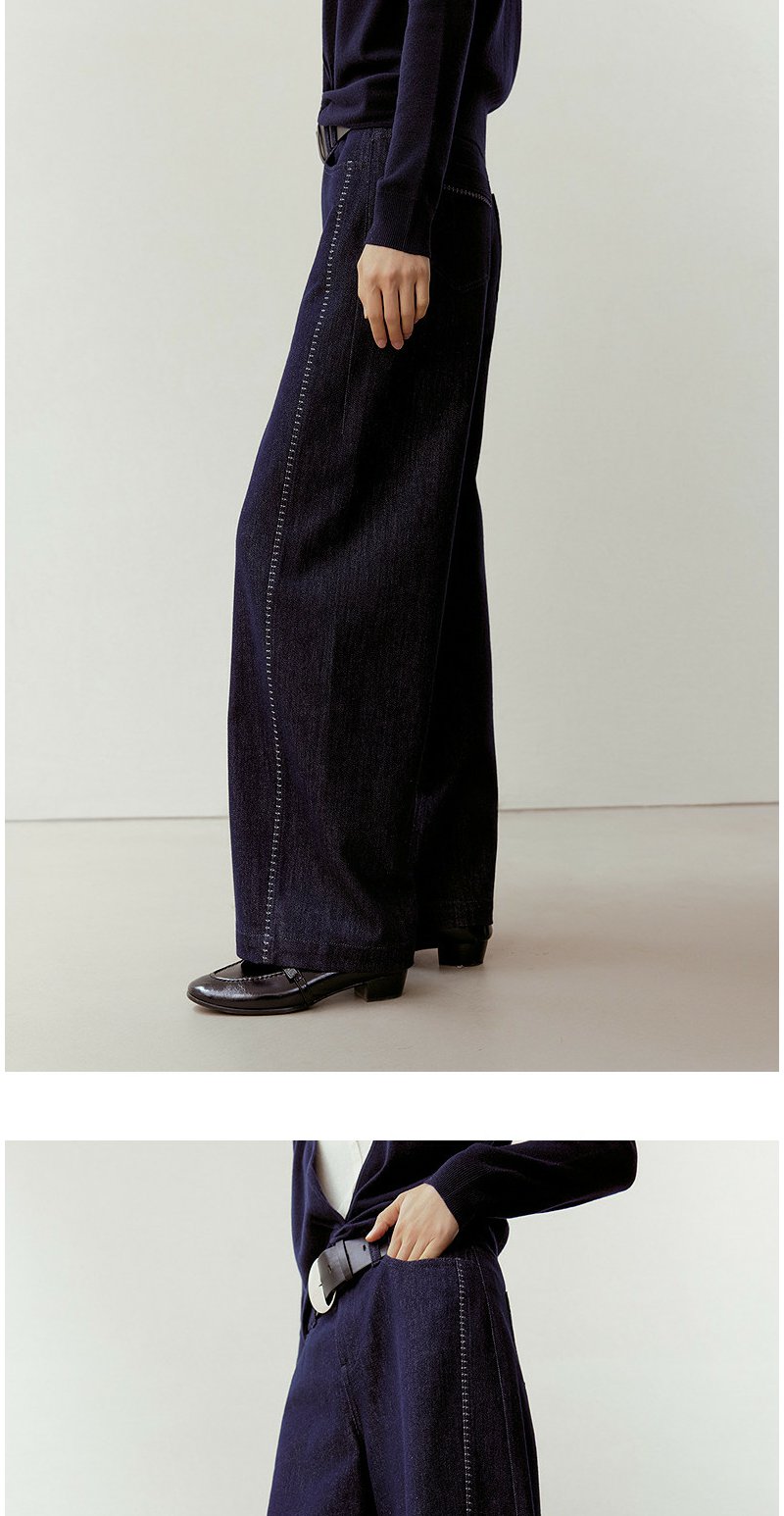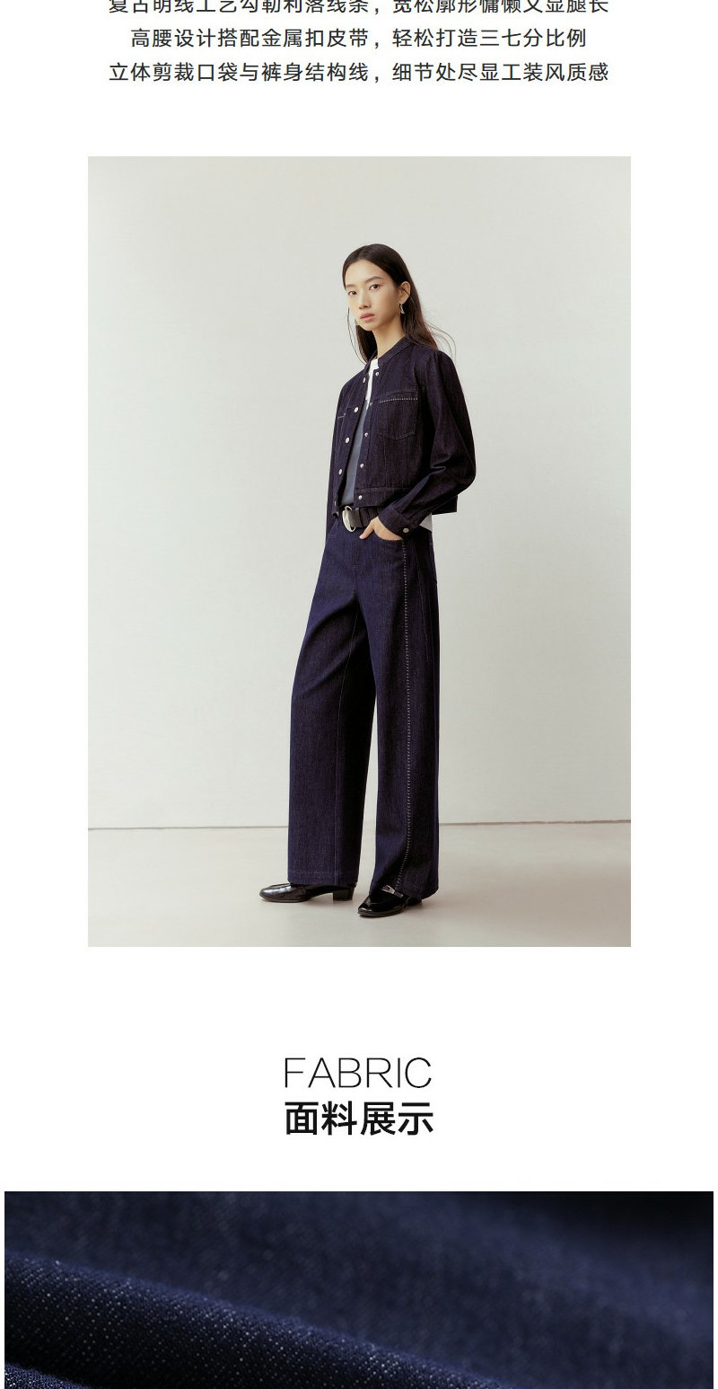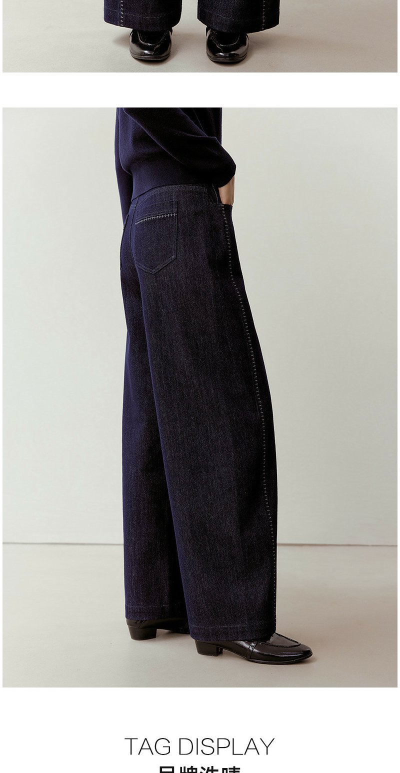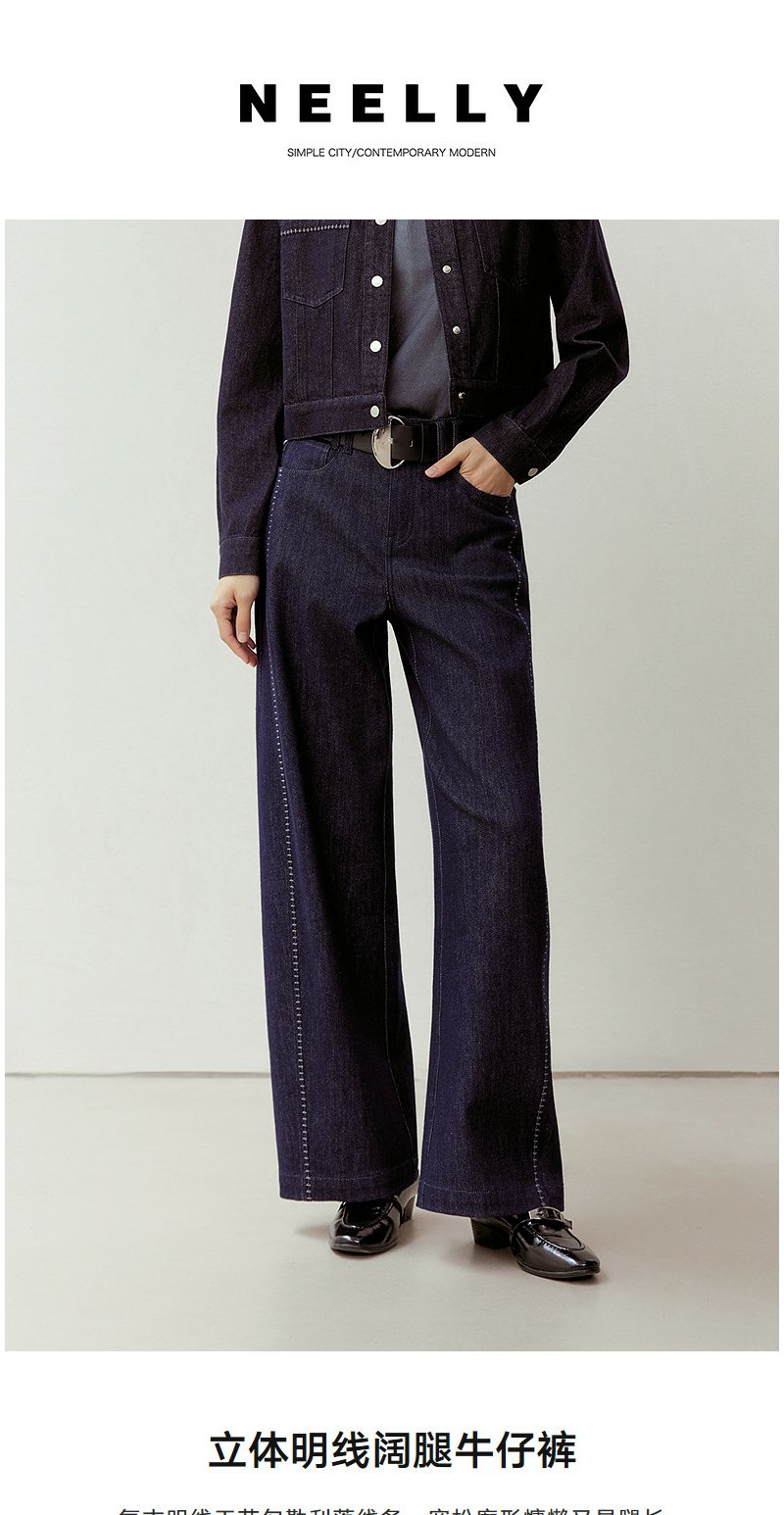 NEELLY纳俪商场同款春新款时尚立体明线阔腿牛仔裤女慵懒随性长裤N26023H01092