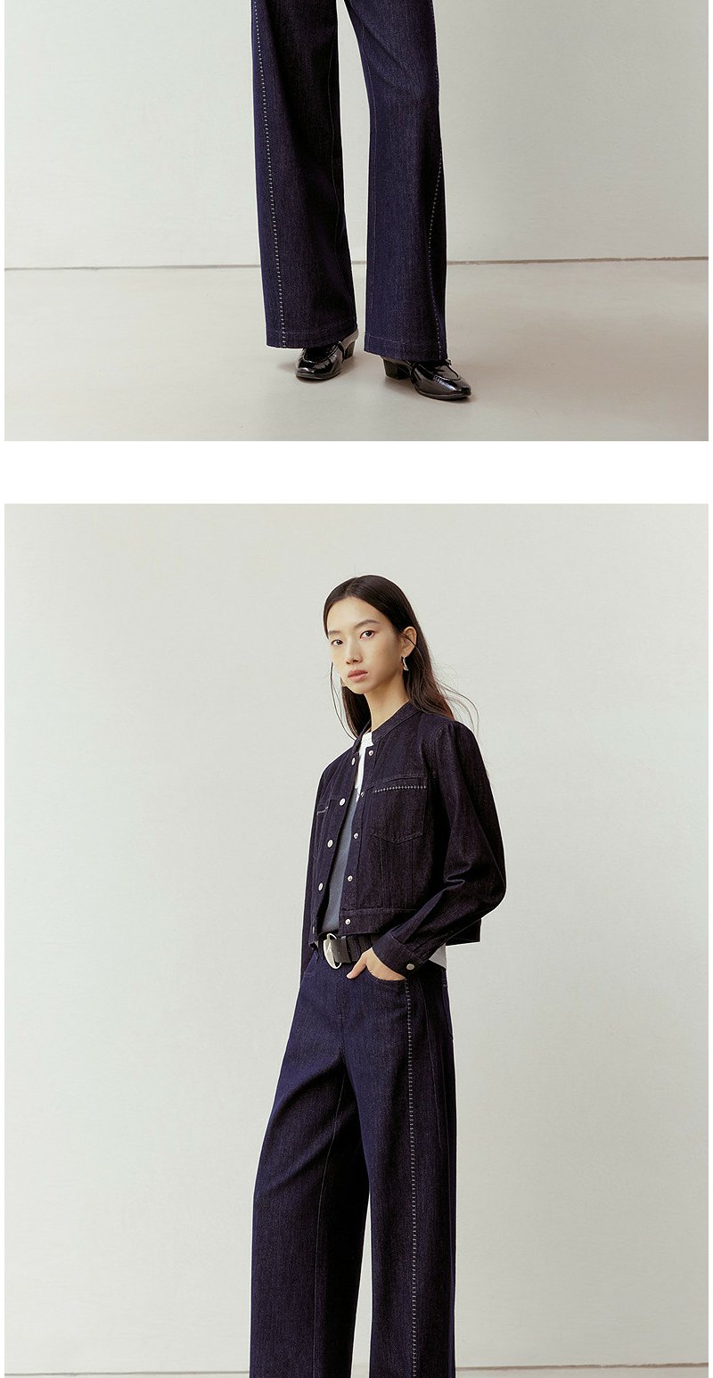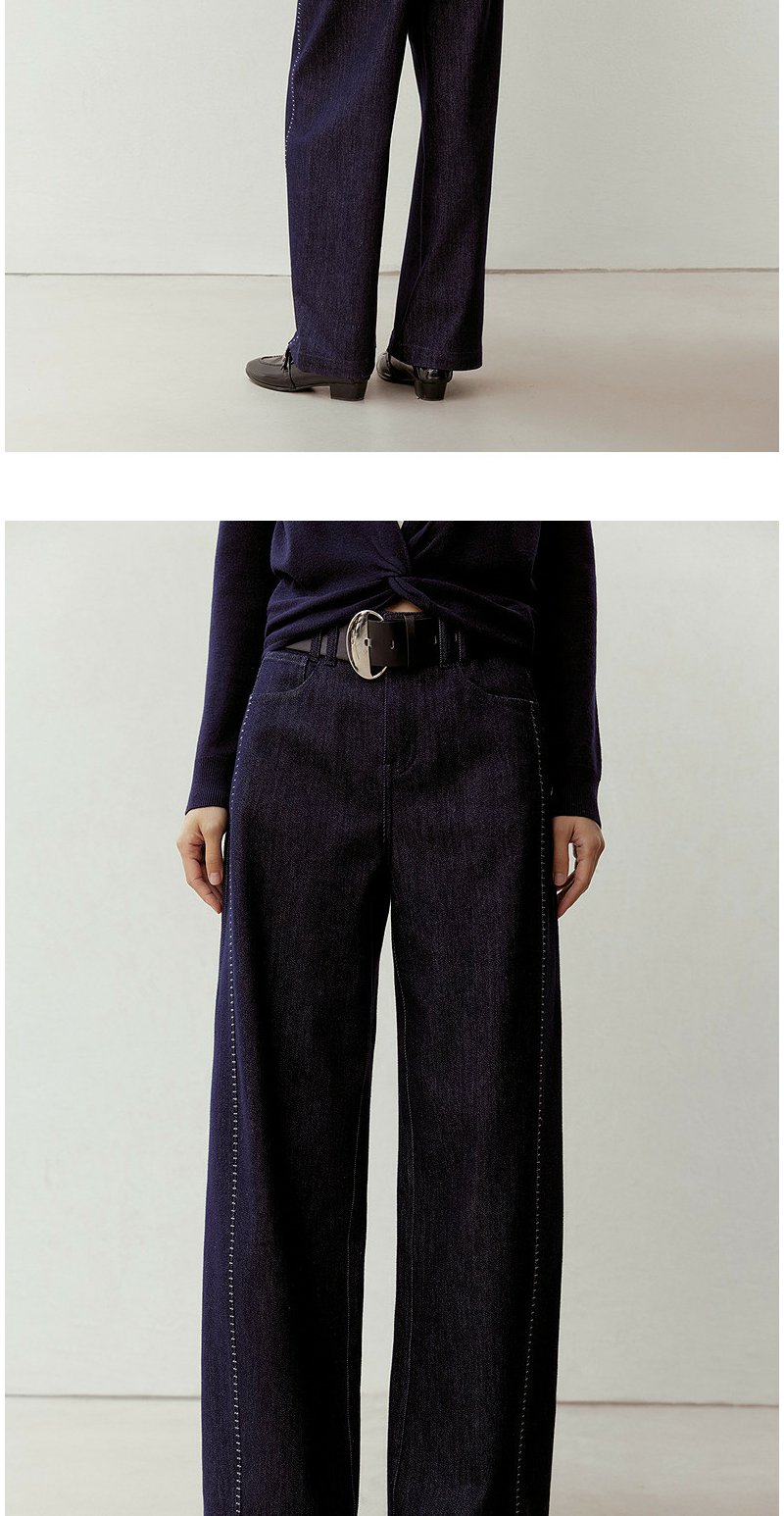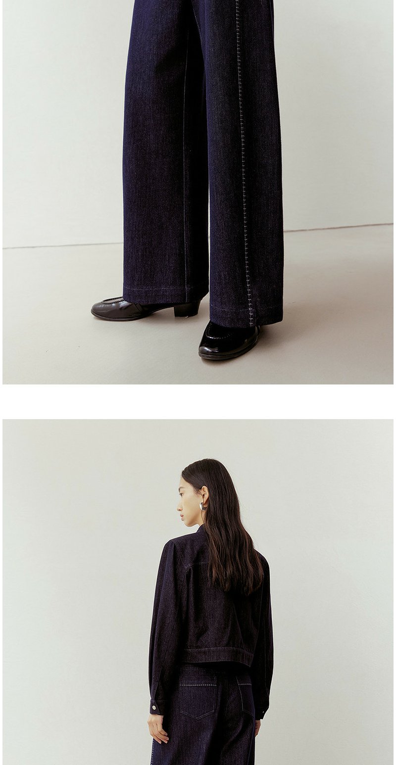 NEELLY纳俪商场同款春新款时尚立体明线阔腿牛仔裤女慵懒随性长裤N26023H01092