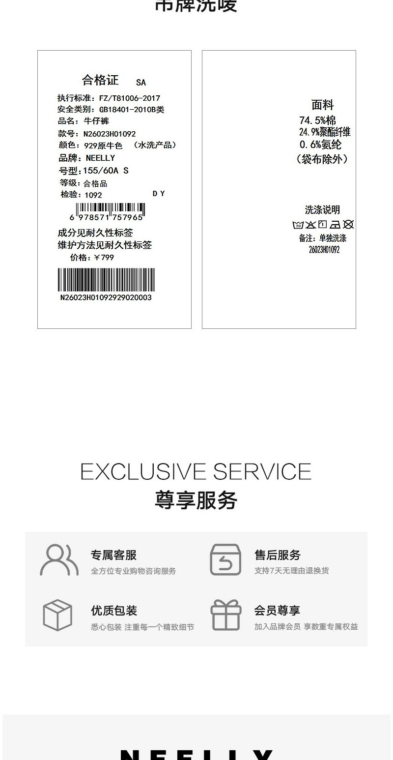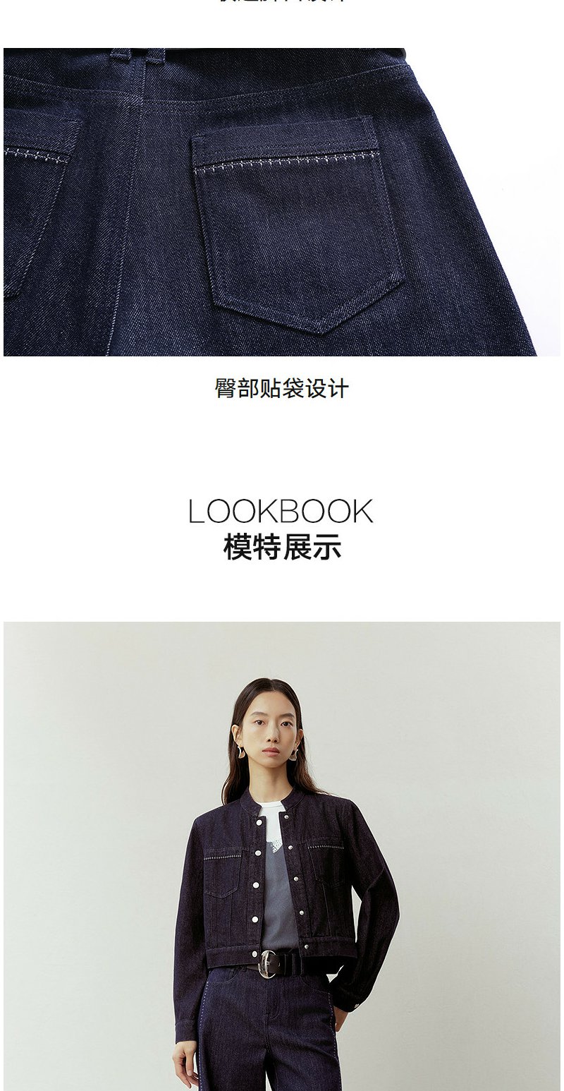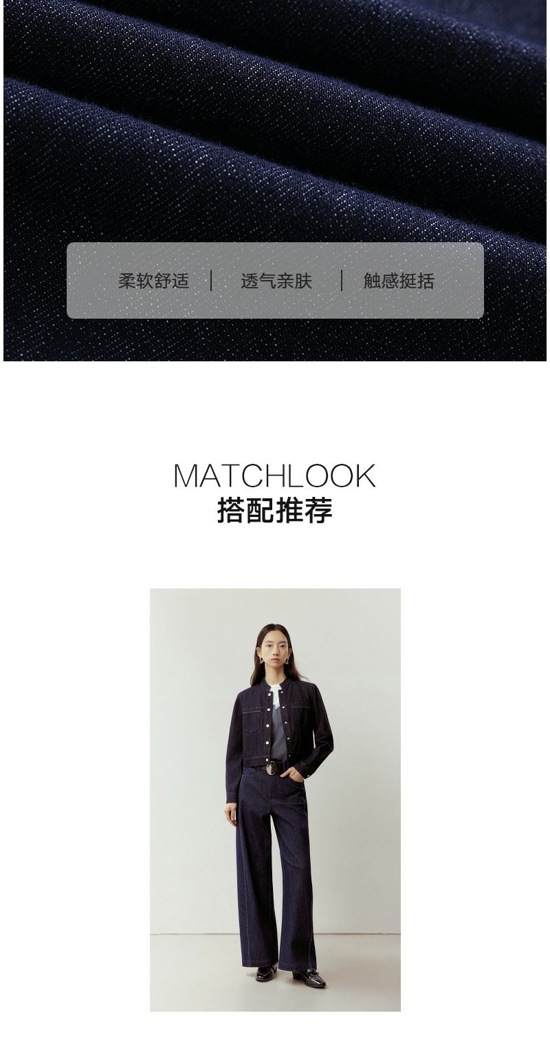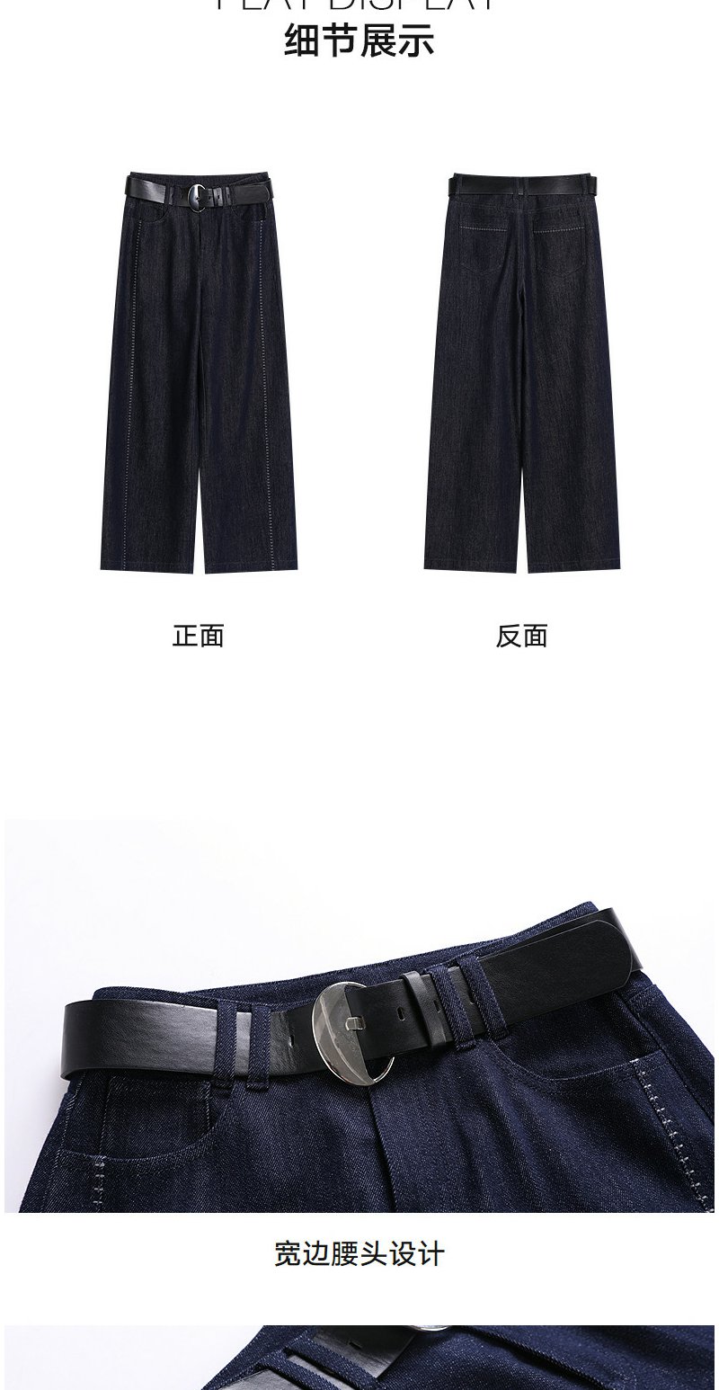 NEELLY纳俪商场同款春新款时尚立体明线阔腿牛仔裤女慵懒随性长裤N26023H01092