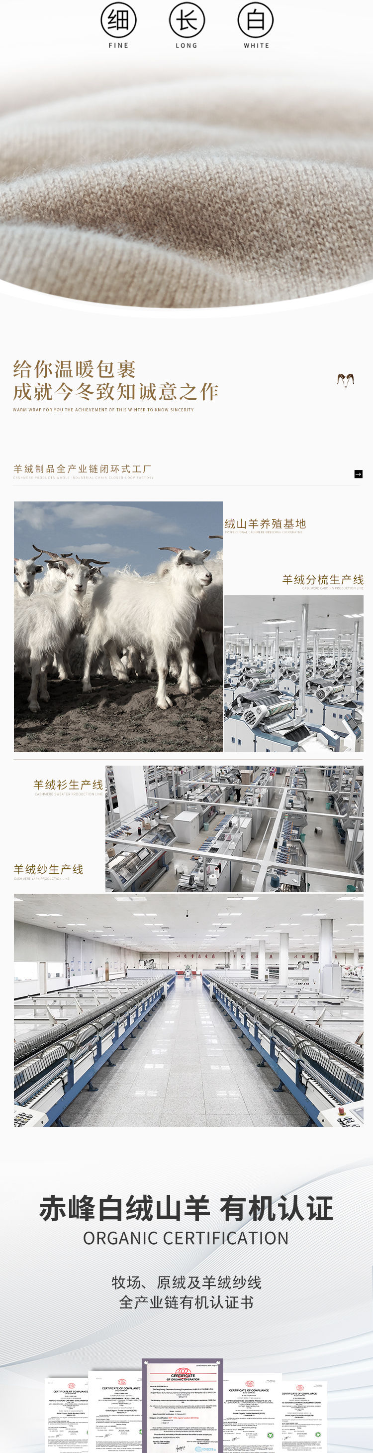 东黎羊绒是赤峰东荣集团自主品牌,自有牧场/羊绒制品全产业链优势,实现了羊绒从“牧场”到“商场”的华丽转变。