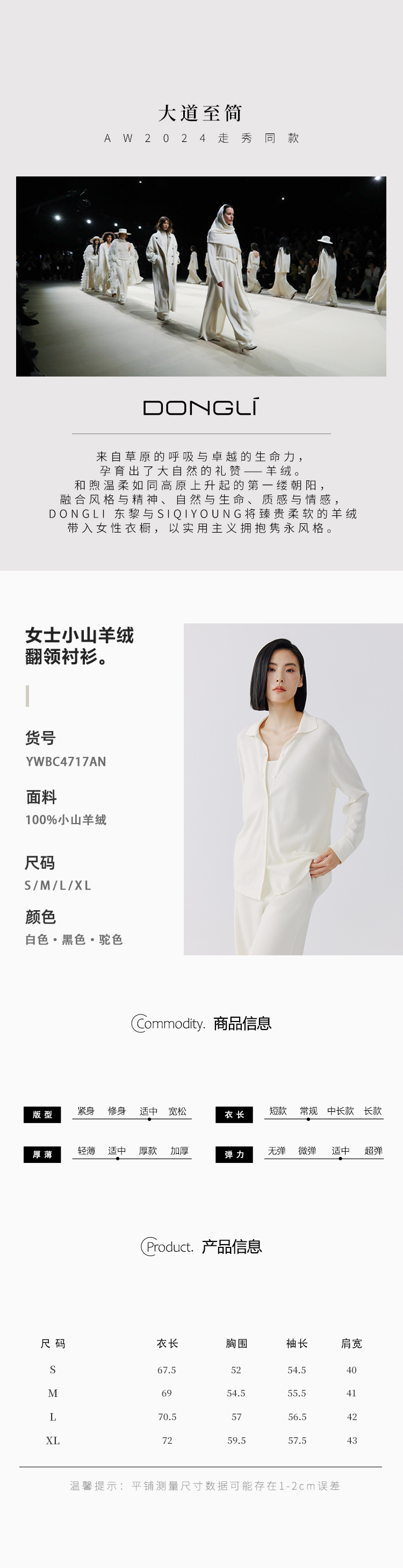 东黎 •小山羊绒女士秋冬翻领衬衫 4717
