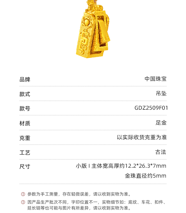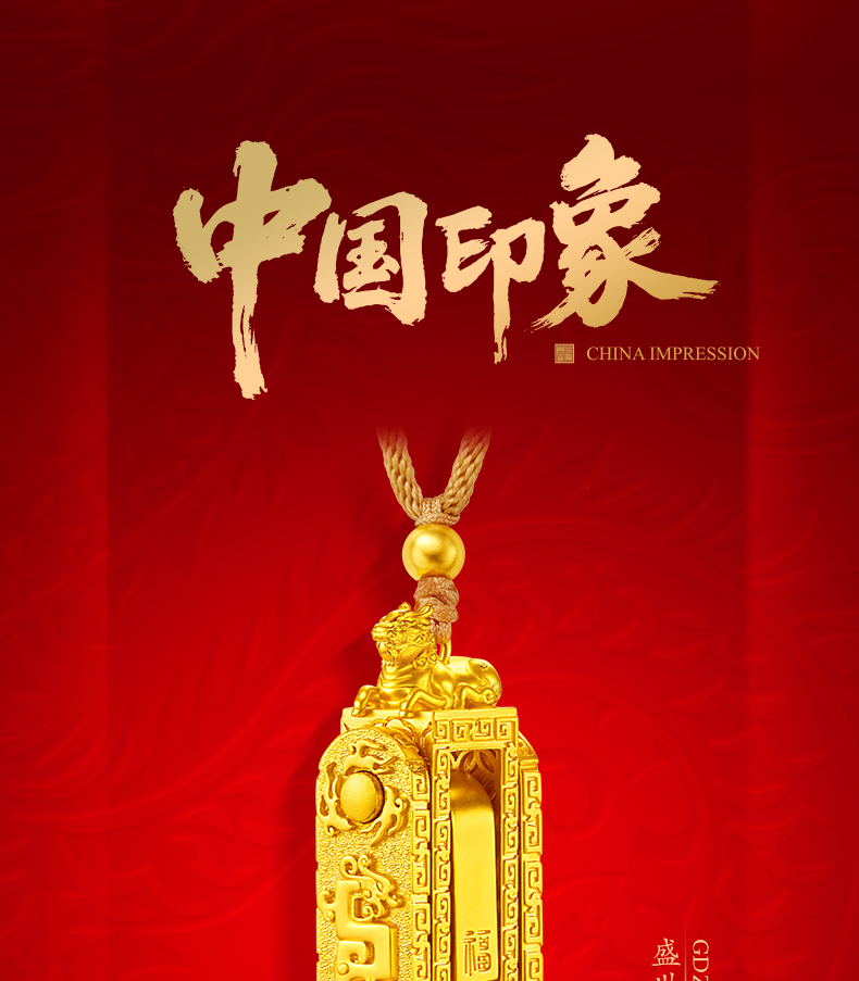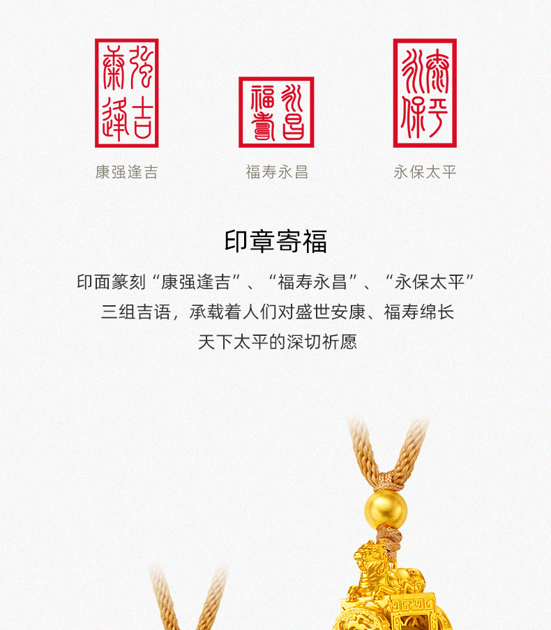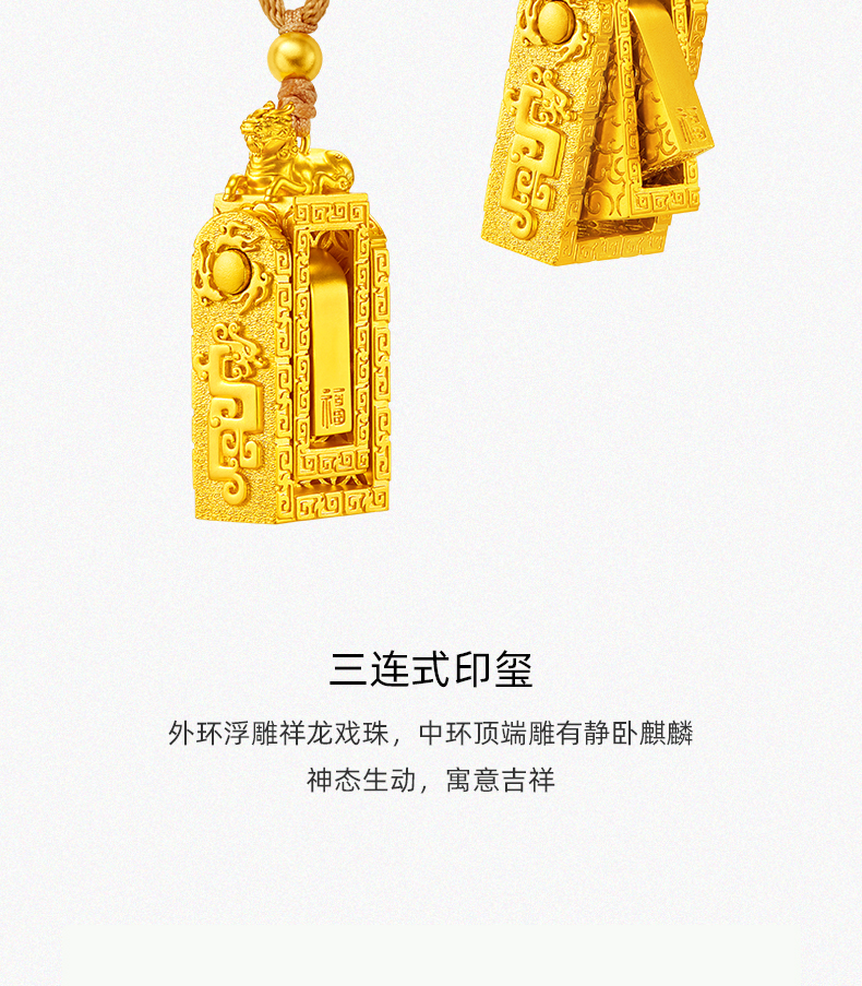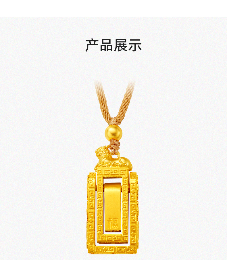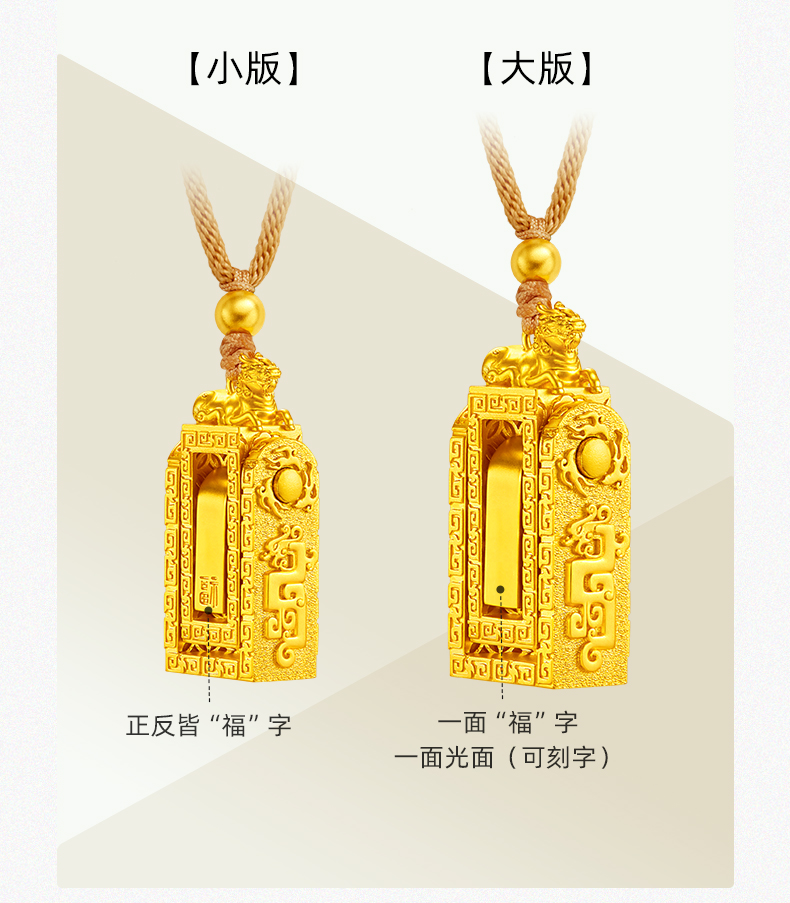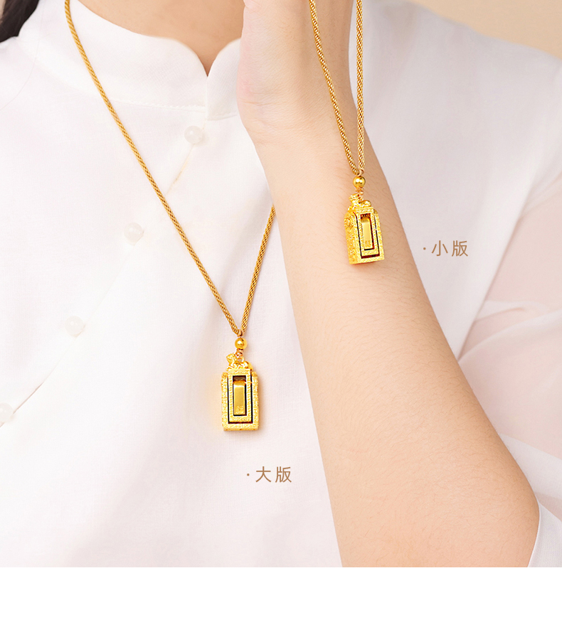「盛世福印」(小版)足金吊坠 古法黄金印章挂饰编织印记项链
