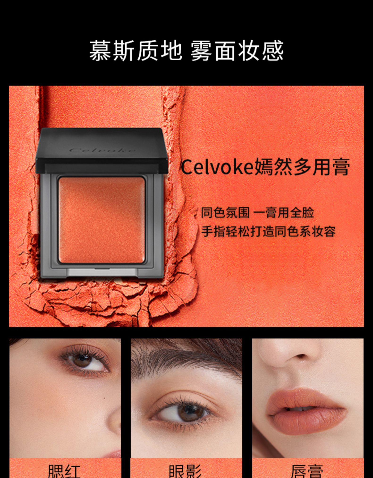 【保税仓】Celvoke嫣然腮红眼影唇膏三合一多用膏 日杂风可叠涂 #02橘子色1.7g