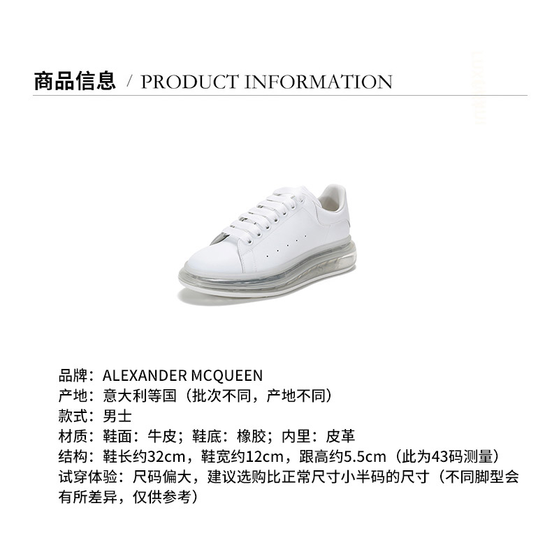 Alexander McQueen/亚历山大麦昆 男士牛皮气垫底系带休闲运动鞋板鞋 604232 WHX98