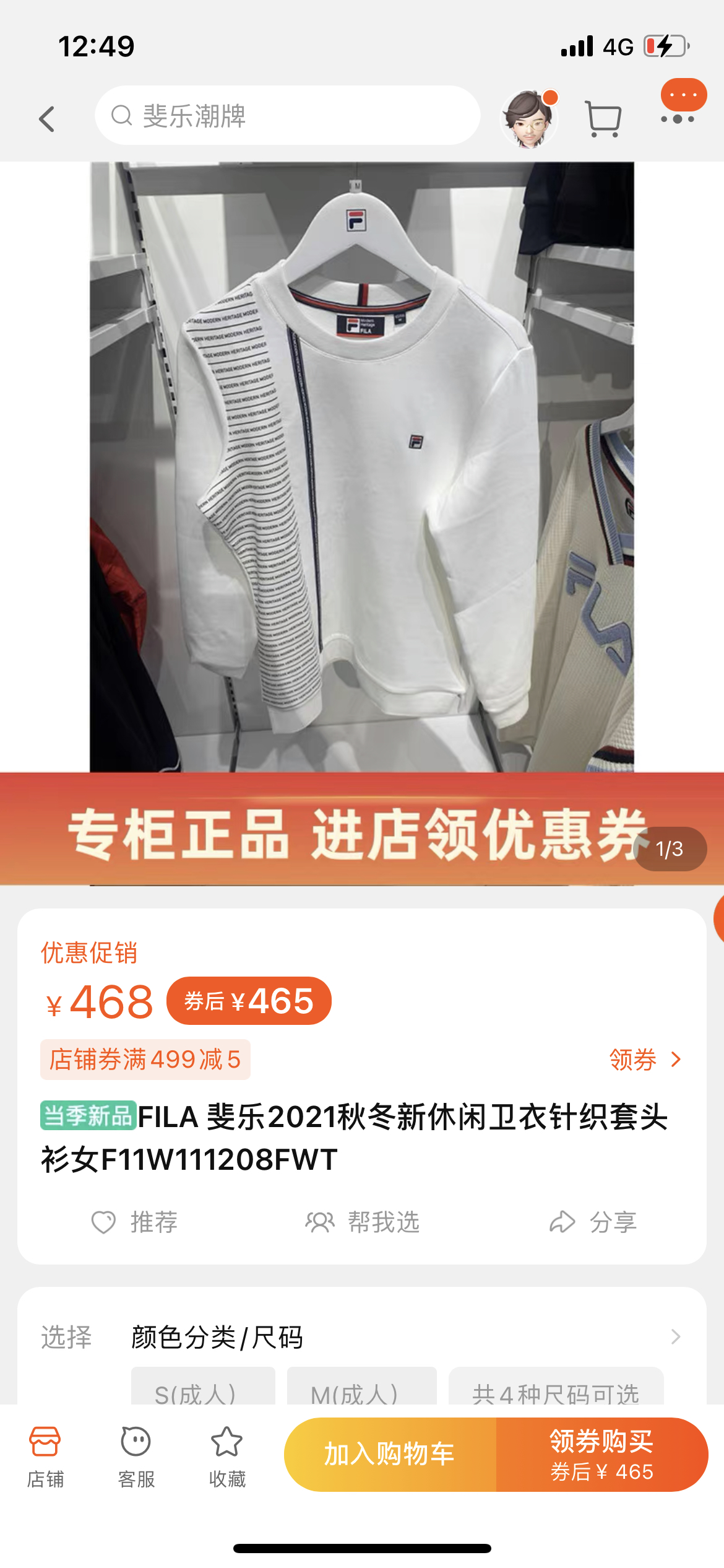 FILA 斐乐2021秋冬新休闲卫衣针织套头衫女F11W111208FWT