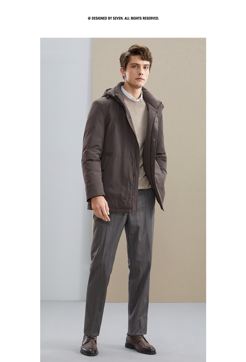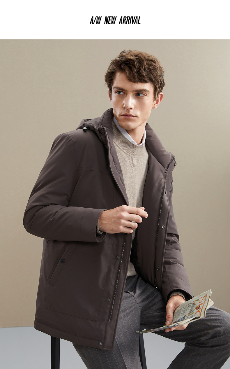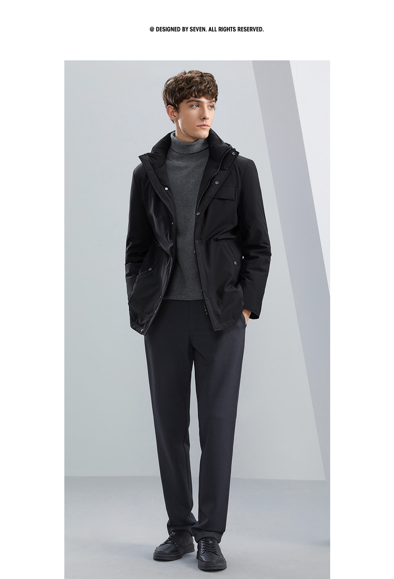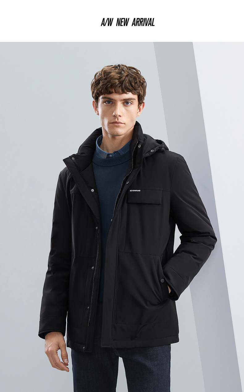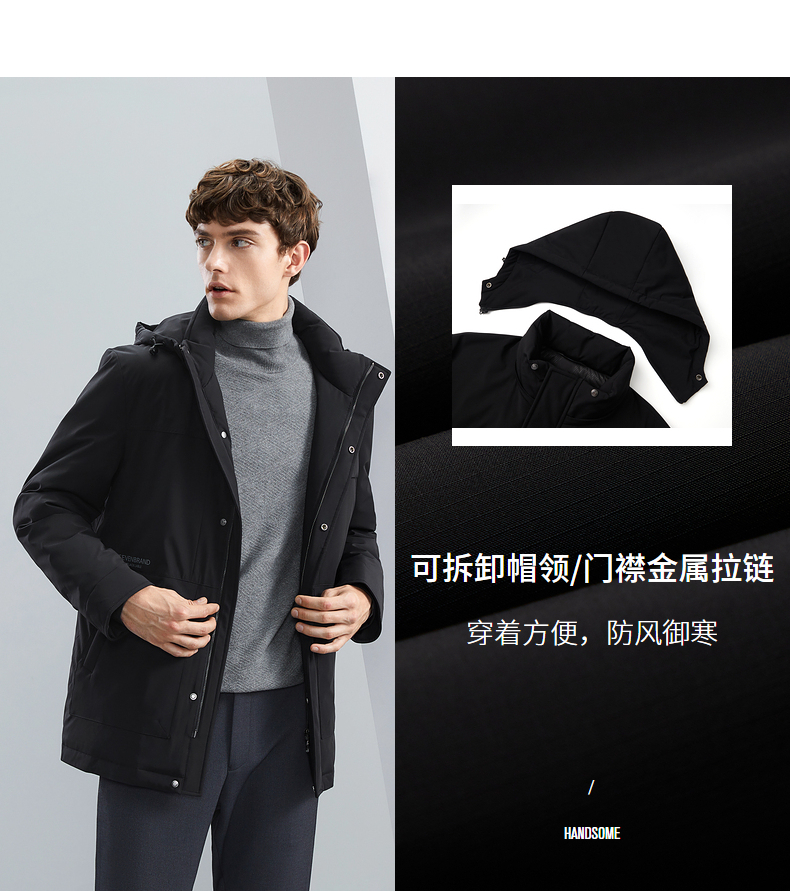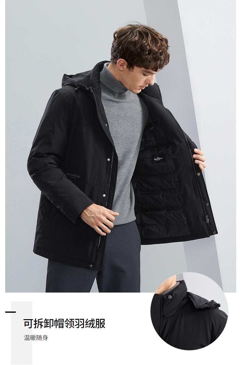 【90白鸭绒】柒牌羽绒服男士冬季厚款时尚休闲可拆卸连帽羽绒外套 127E70020