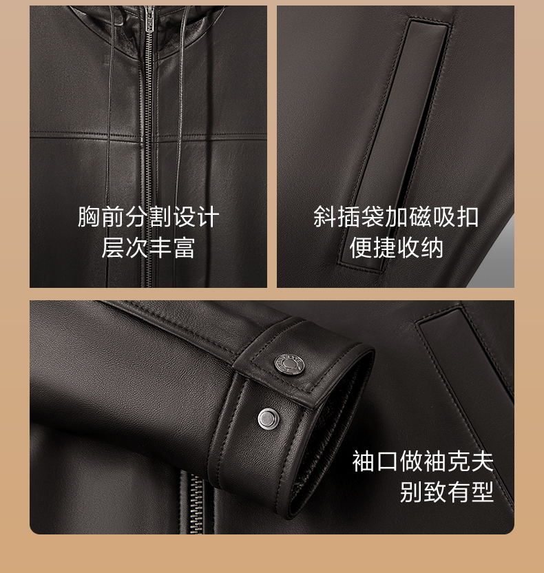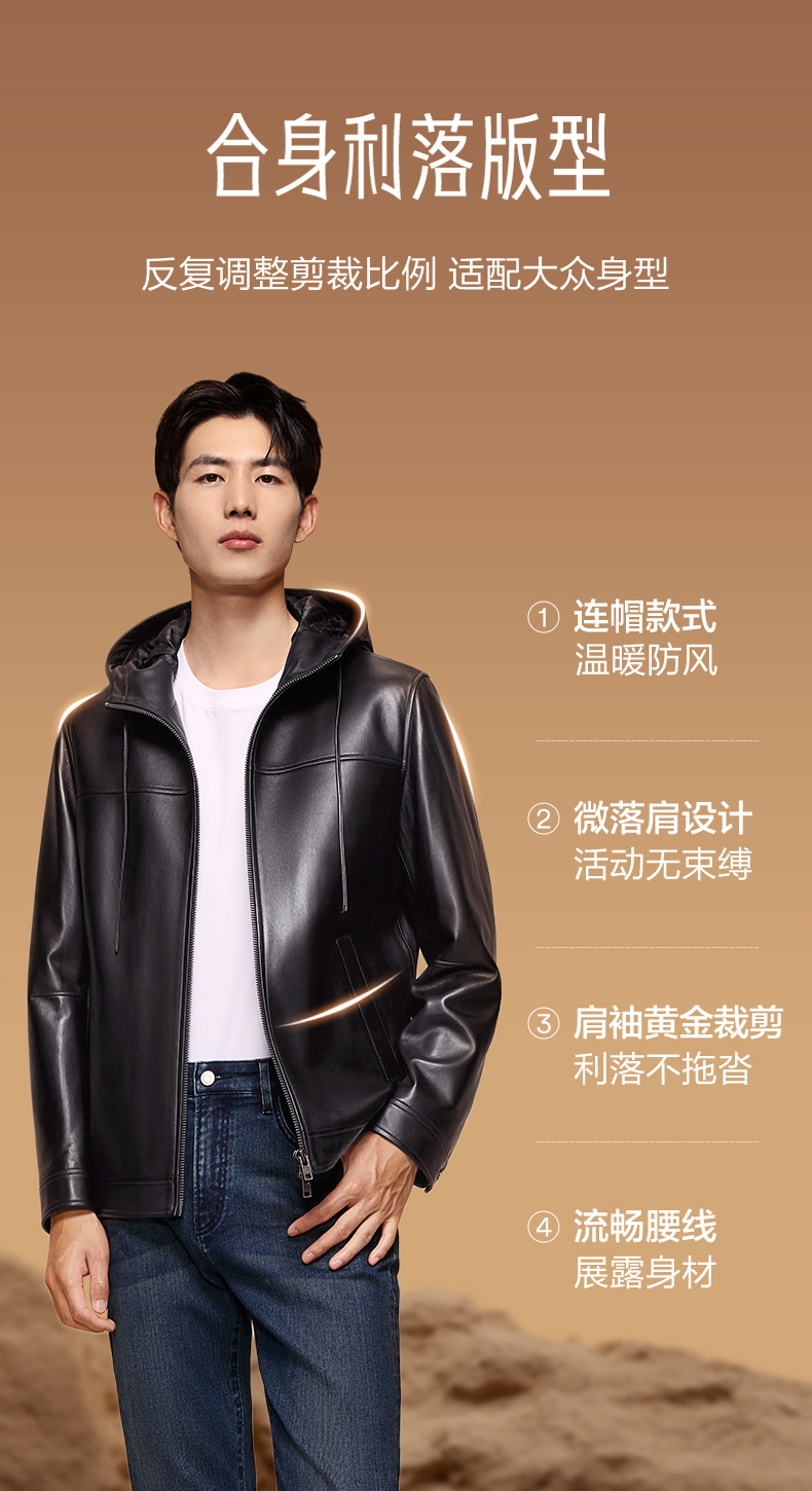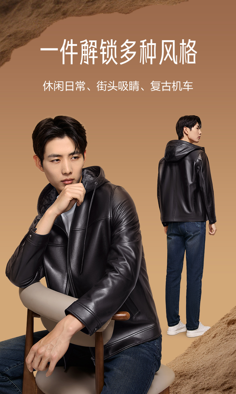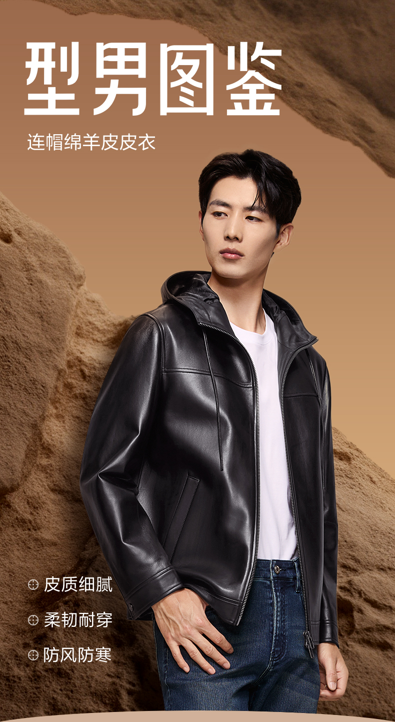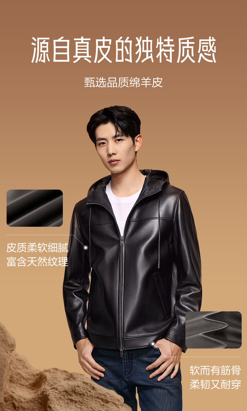 【绵羊皮/连帽皮衣】柒牌男装真皮皮衣2025秋季新品皮夹克外套129J70520