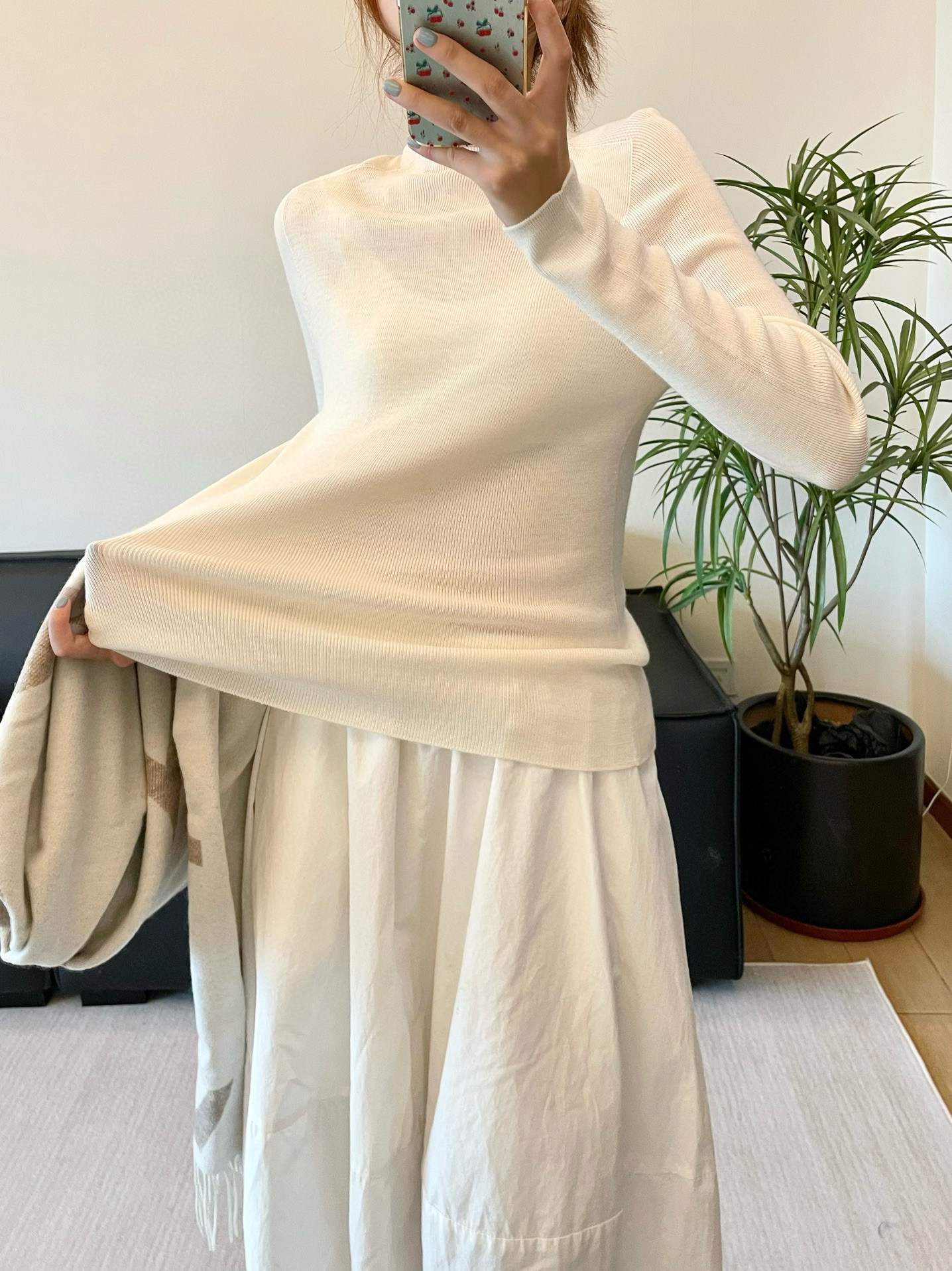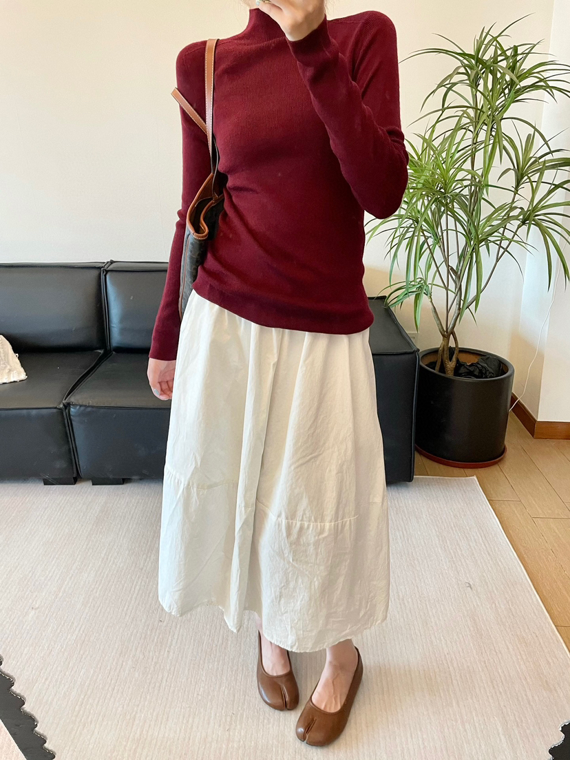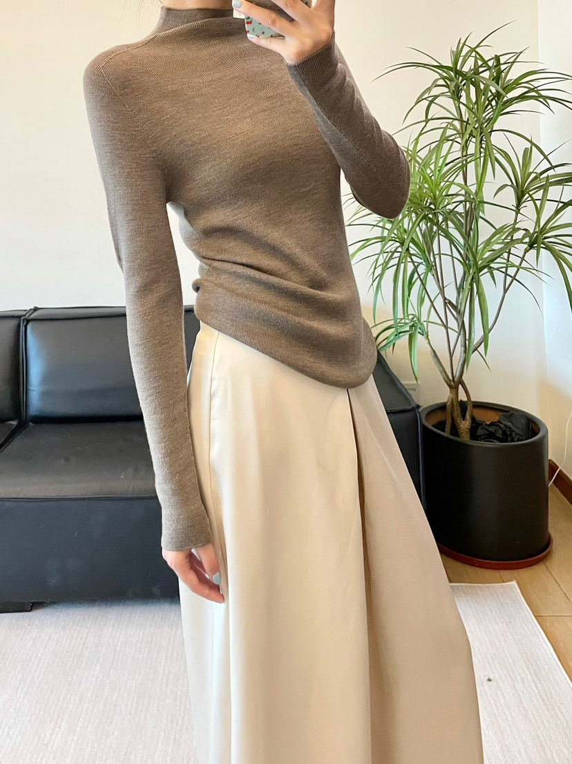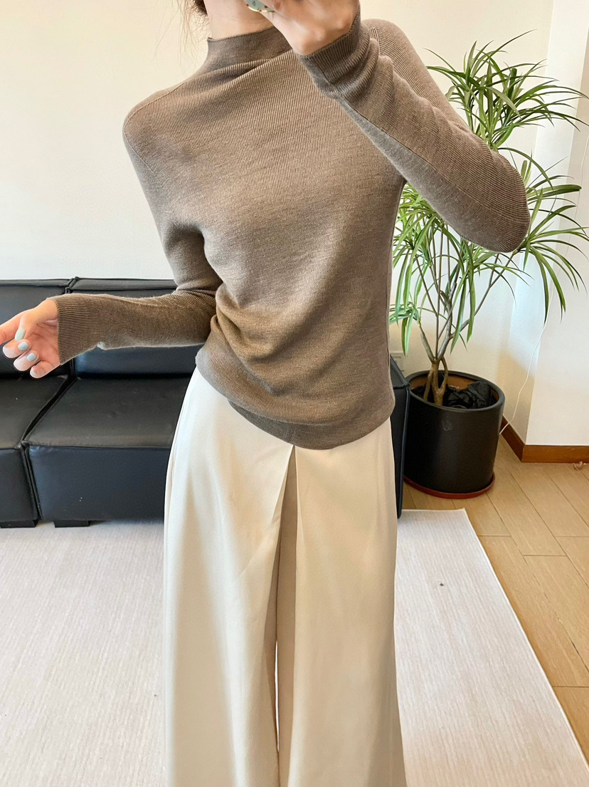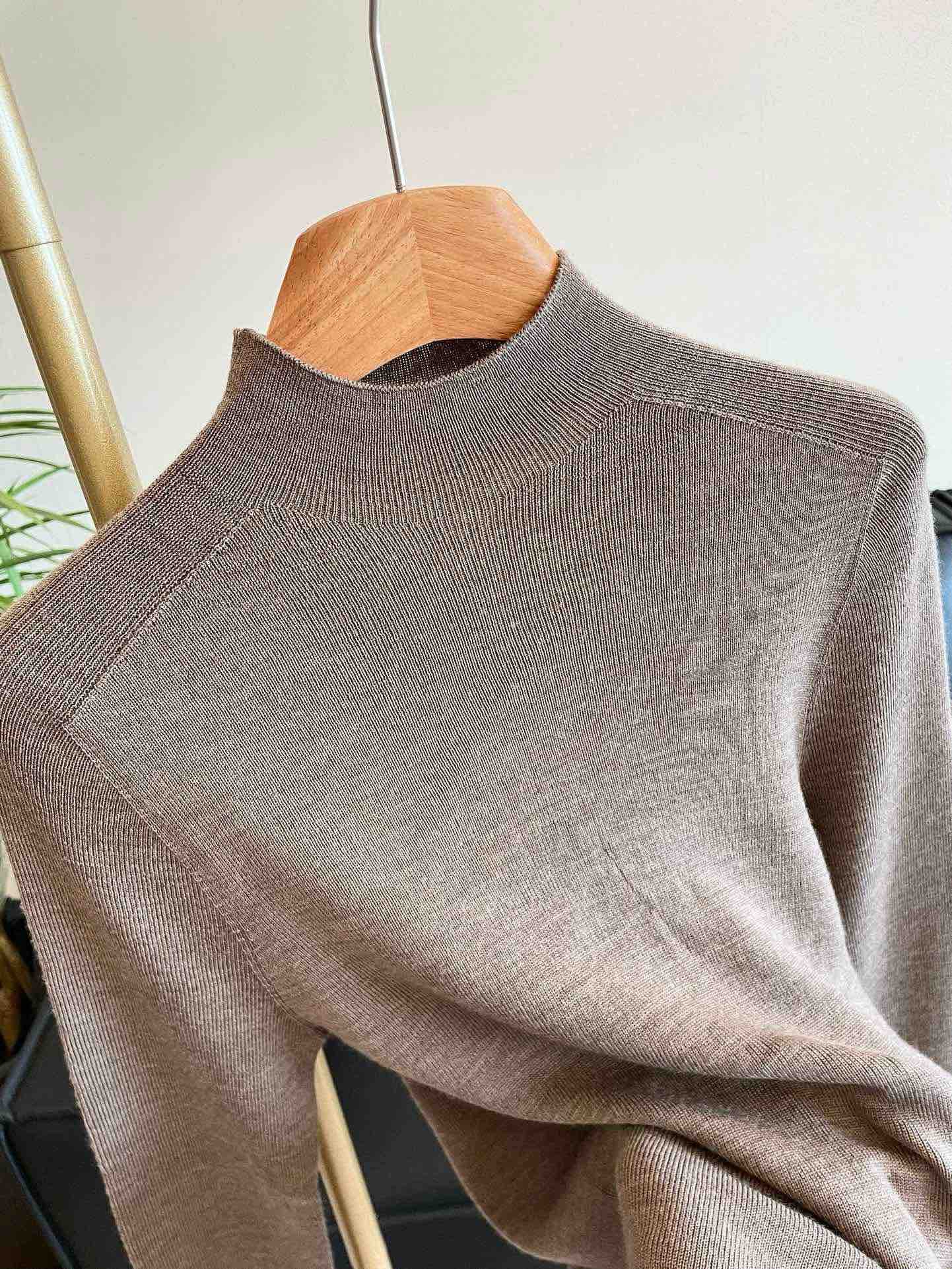 这种水准的半高领非常难得,非常有质感,紧实密实,足够舒服,上身不松胯,不贴身,垂坠感十足,软软糯糯