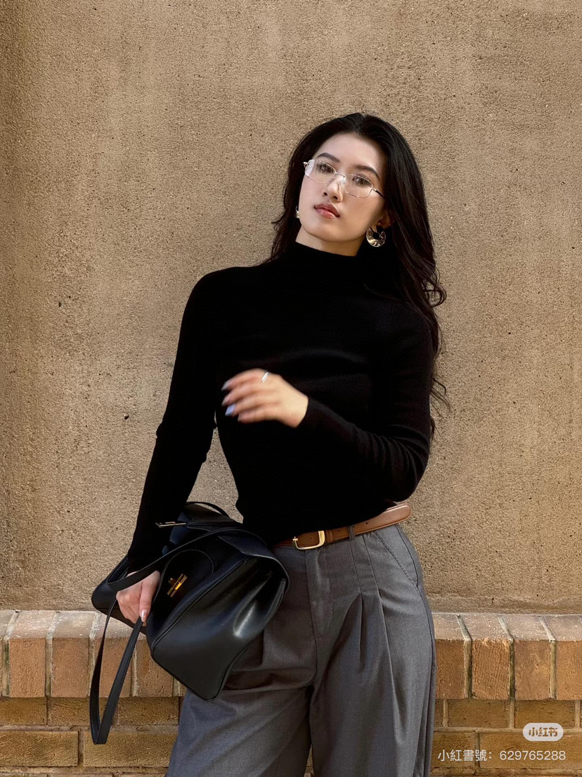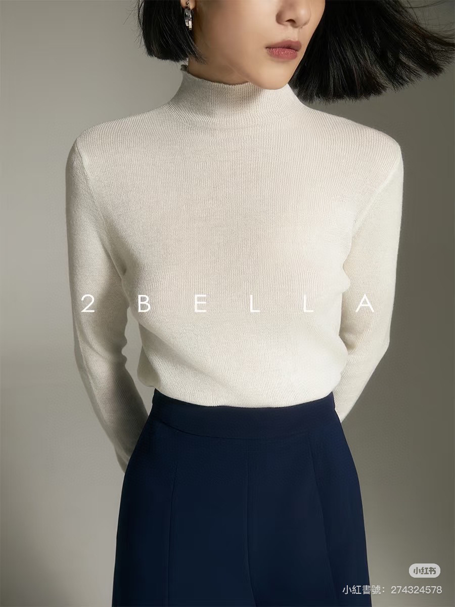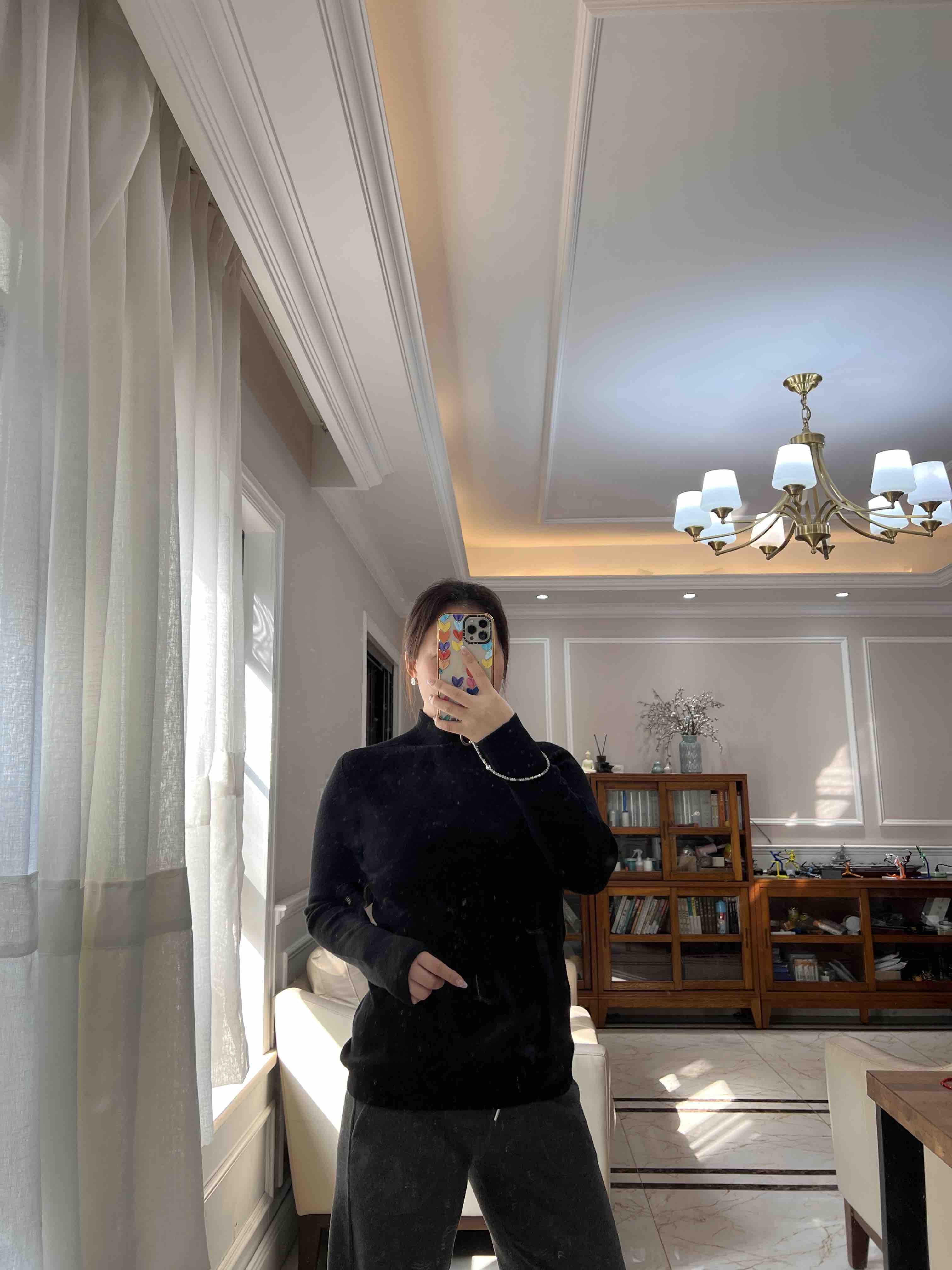 半高领就完全不存在这个问题,脖子不冷,颈椎不冷,藏着颈纹,还能露出一截,总是低头领口也不会变形‼️