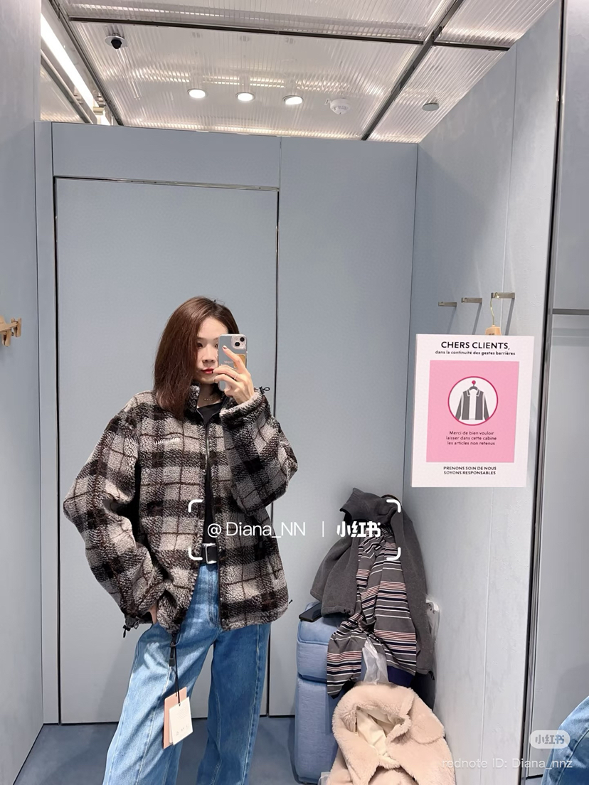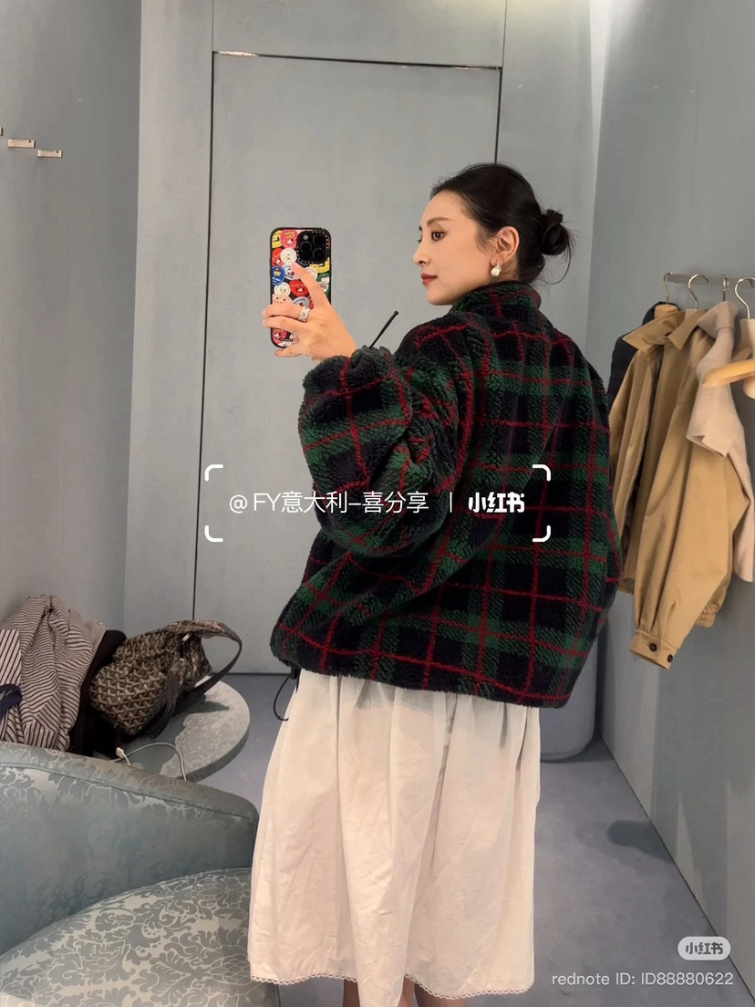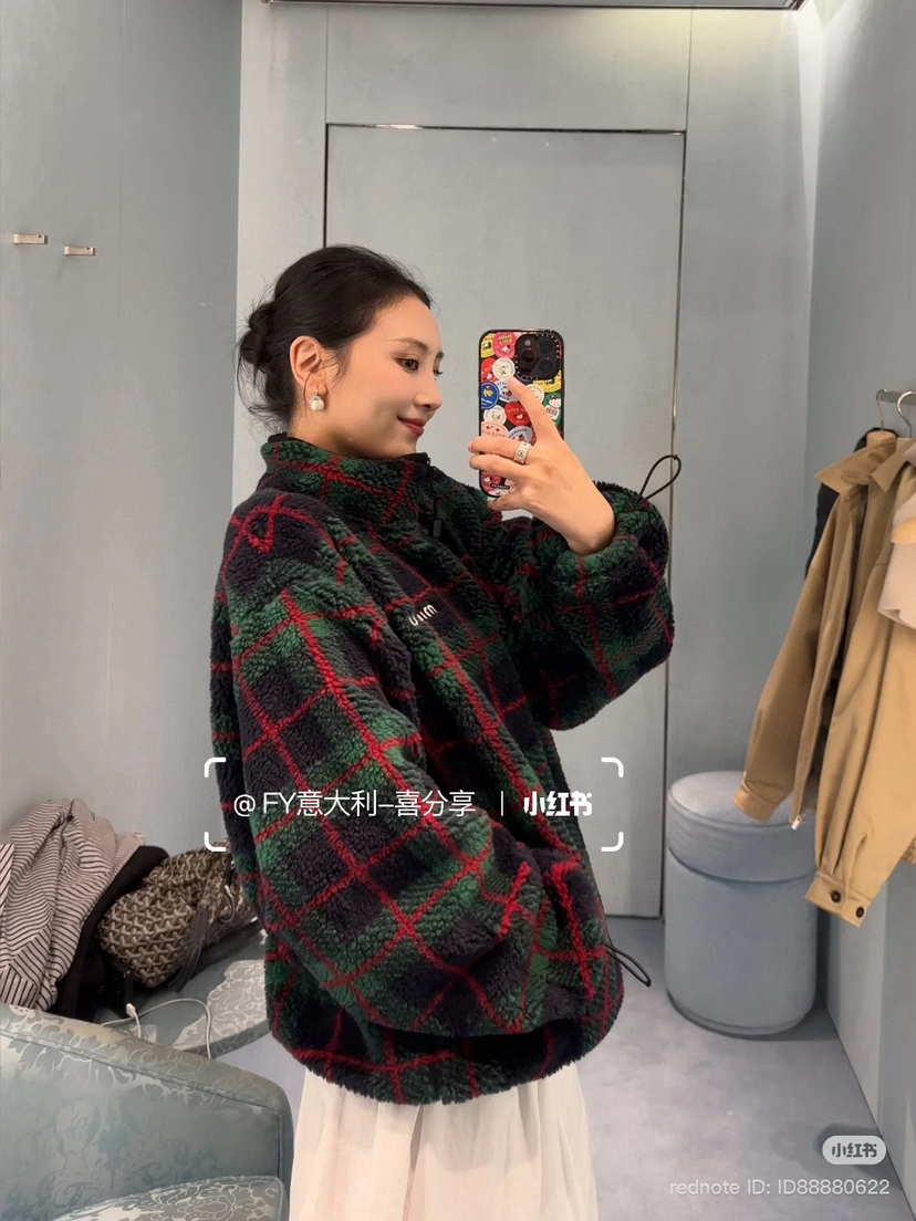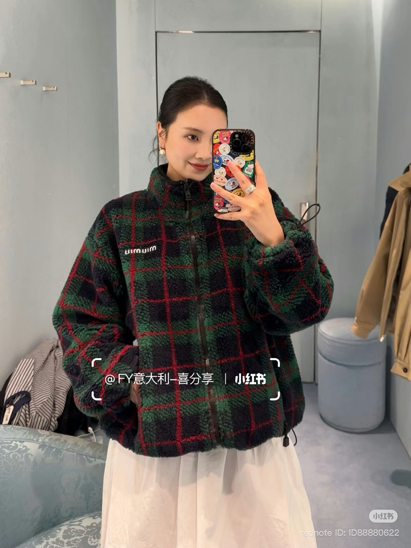 1120-2 月底发 独家圆正 白露同款 miu摇粒绒 拉链格子外套 我穿S宽松合适