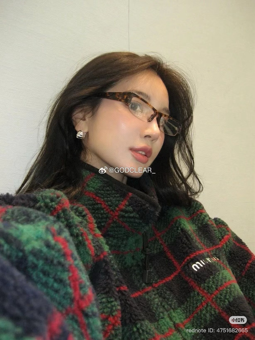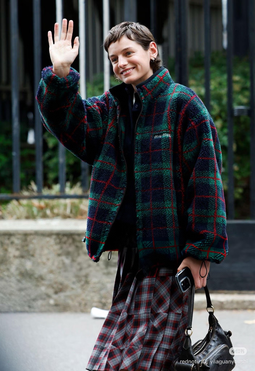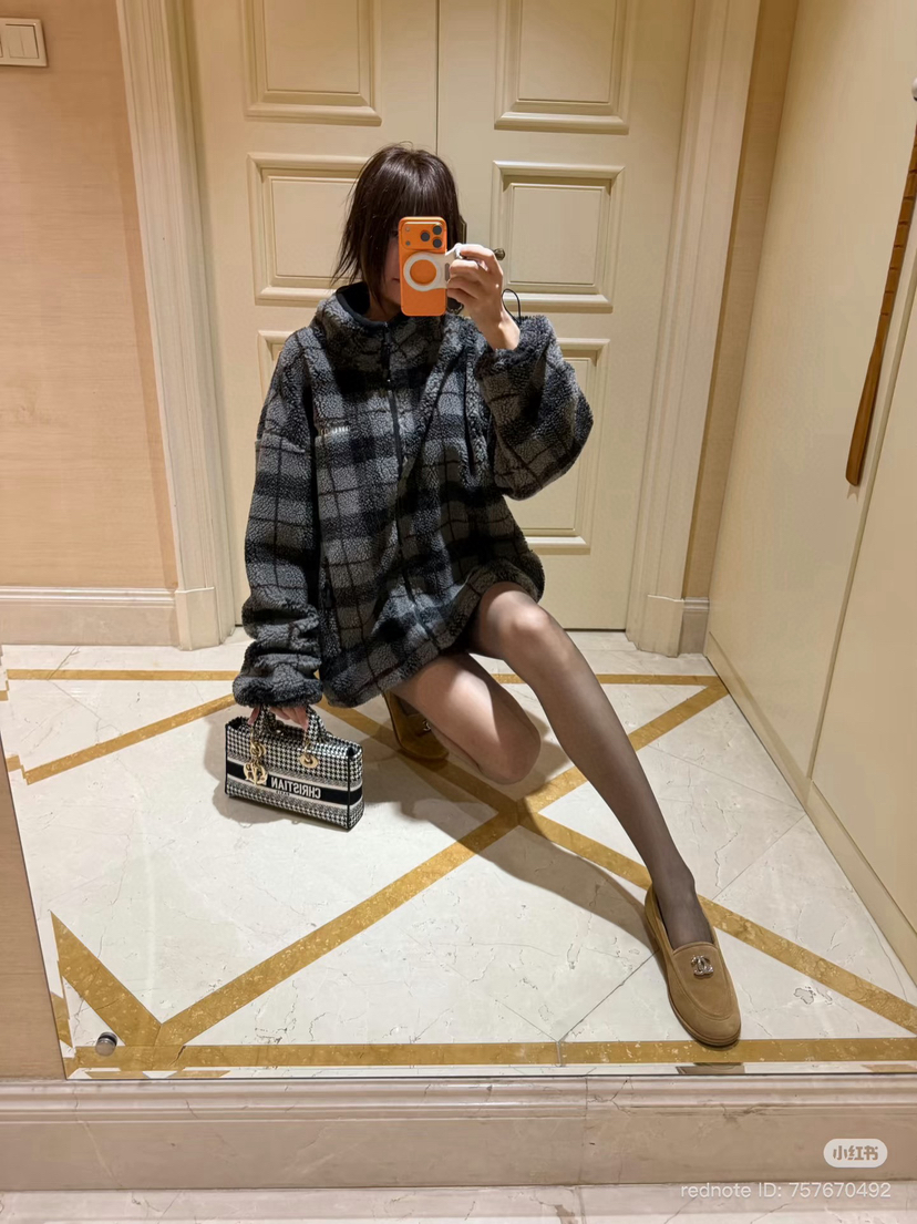 1120-2 月底发 独家圆正 白露同款 miu摇粒绒 拉链格子外套 我穿S宽松合适