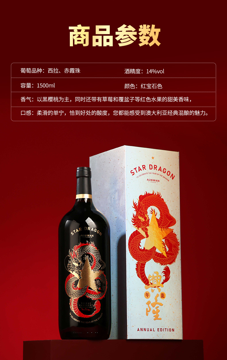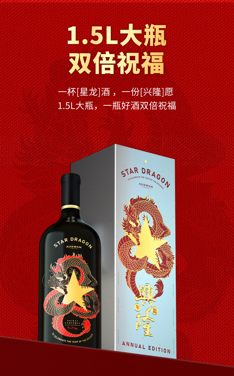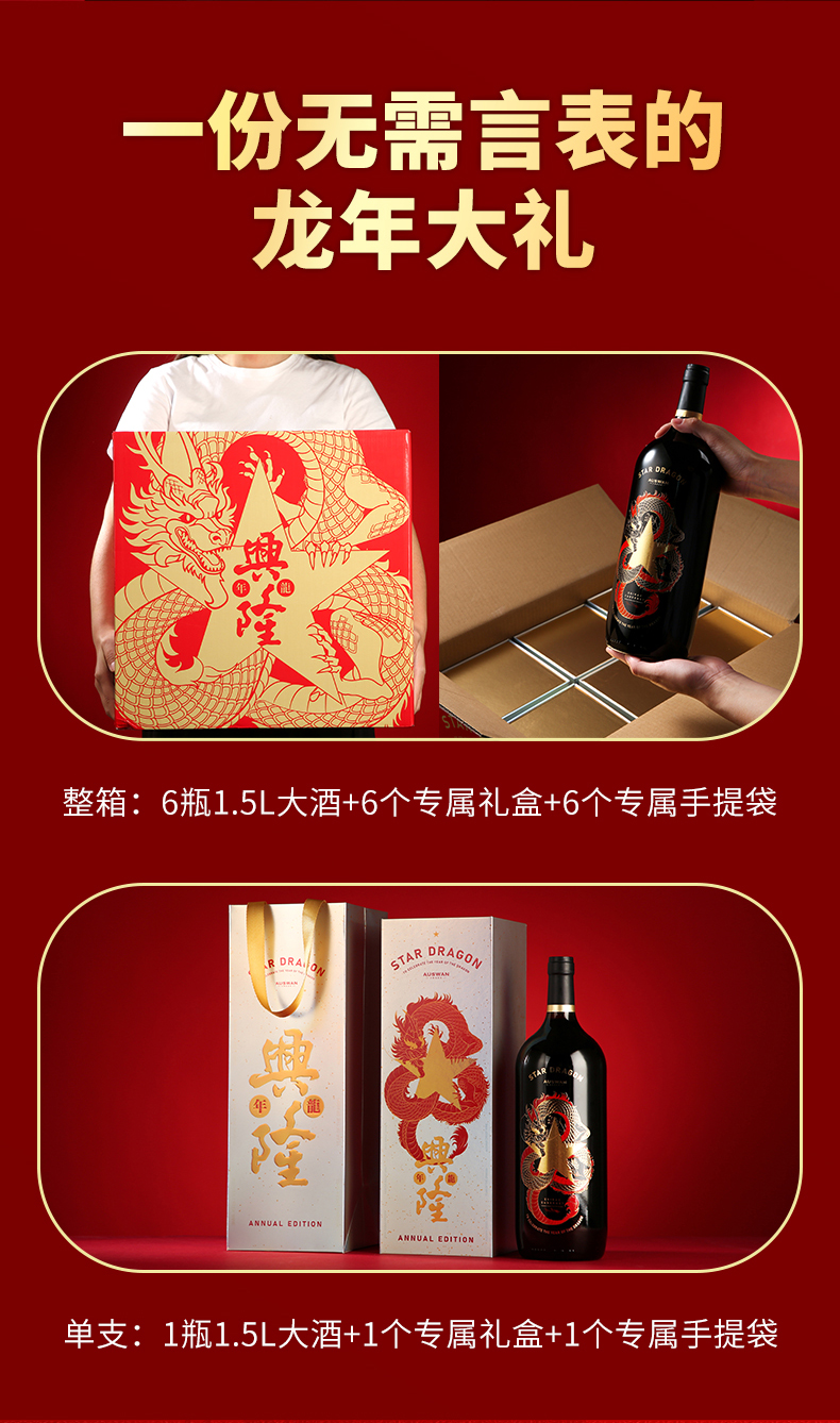 天鹅庄龙年生肖红酒 单支礼盒装 1500ML 送礼盒装珍藏酒【生意星龙】