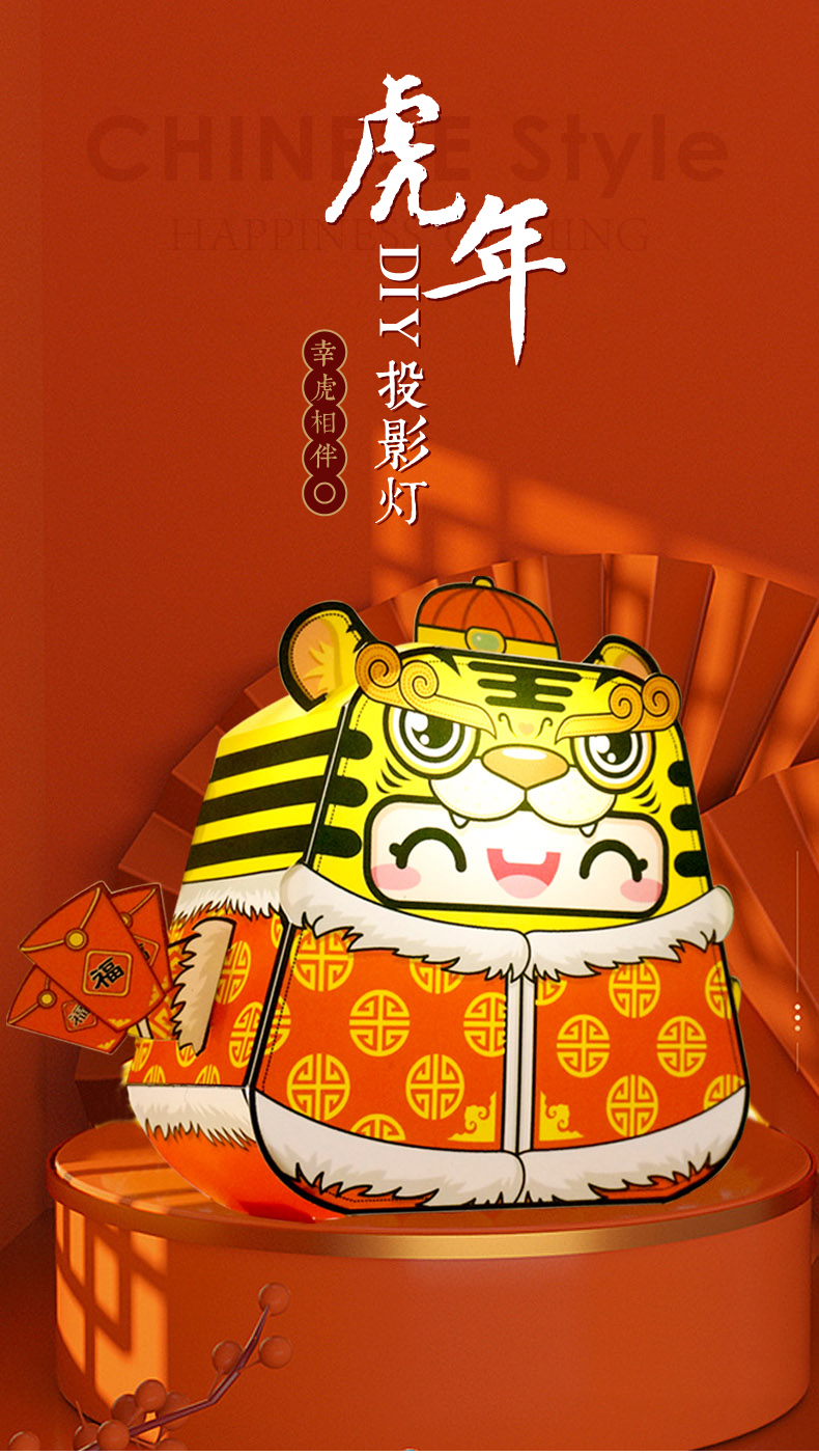 尚寅 原创2022新年虎卡通投影DIY手工灯笼