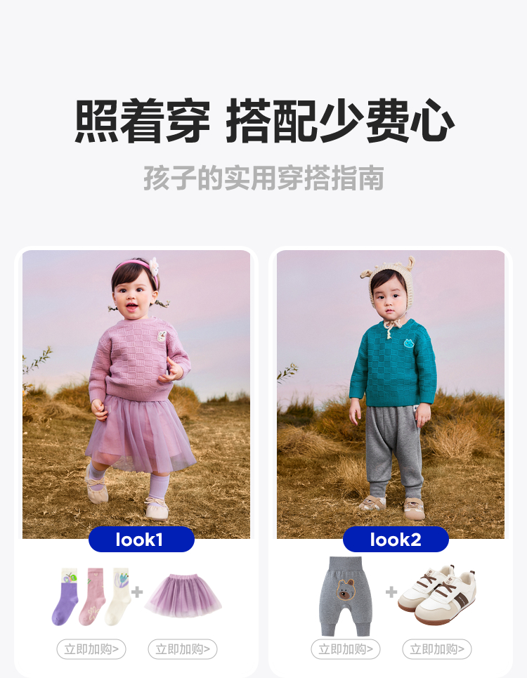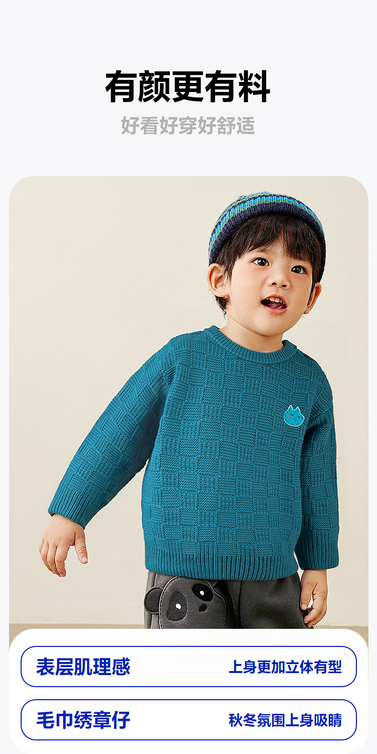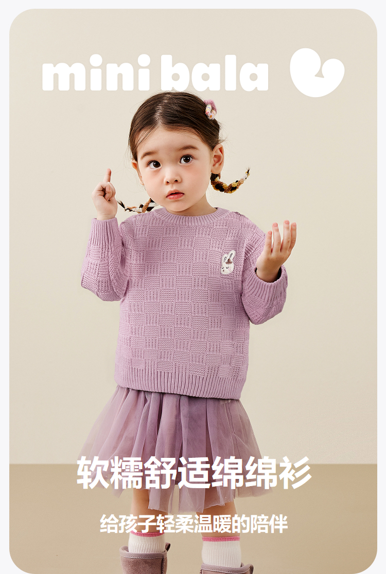 迷你巴拉男女童宝宝秋冬毛衫长袖百搭内搭萌趣提花软毛衣