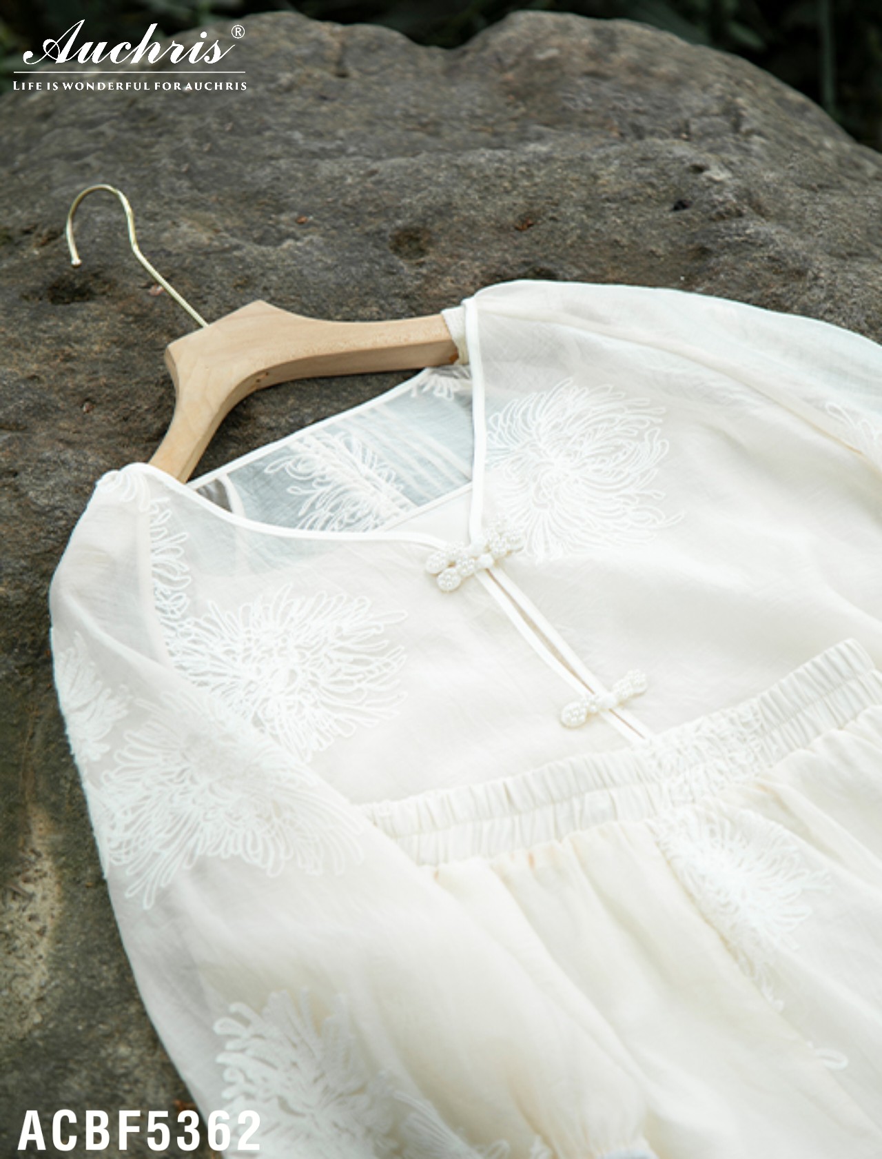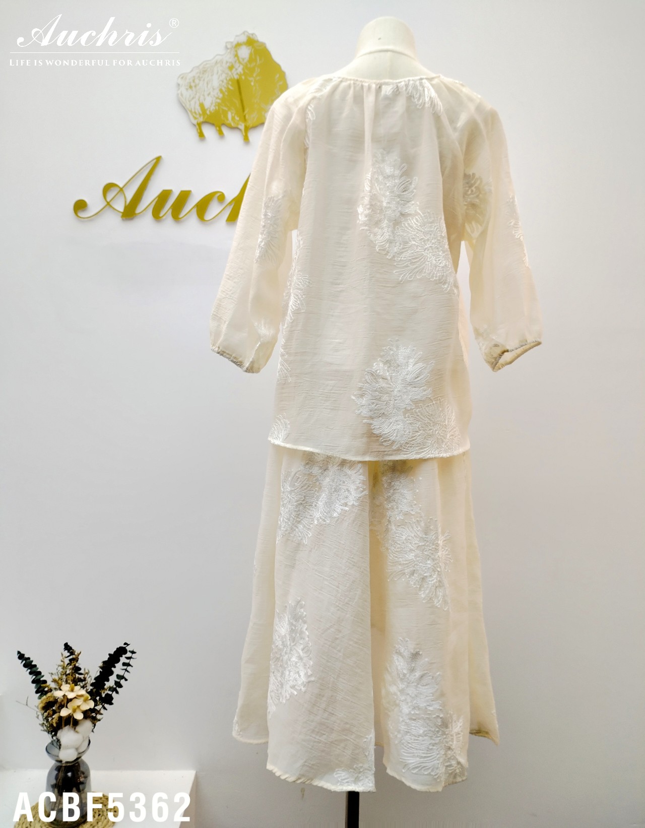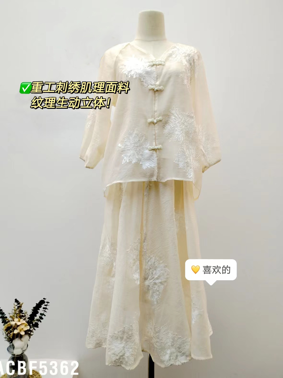 且成衣表面精细的刺绣纹理,