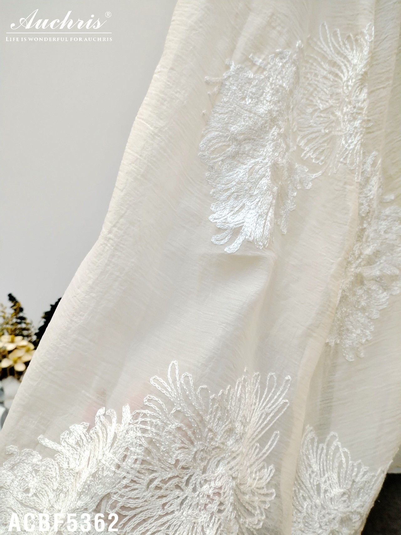【材质】欧根纱绣花