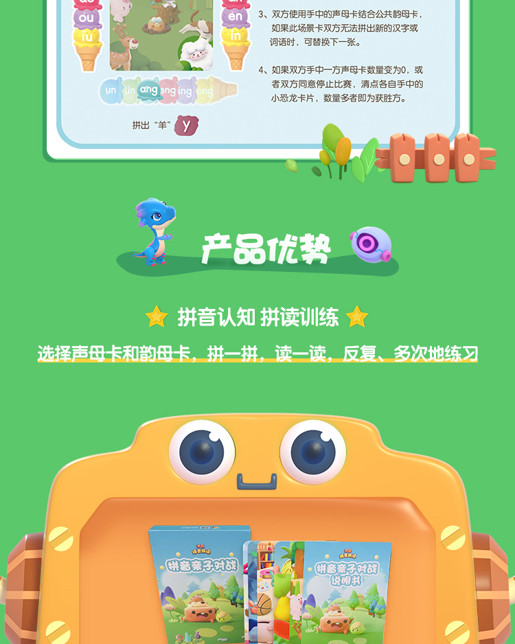 【拼音配套】拼音亲子对战卡片 提供充分联想空间 提升兴趣 限时秒杀