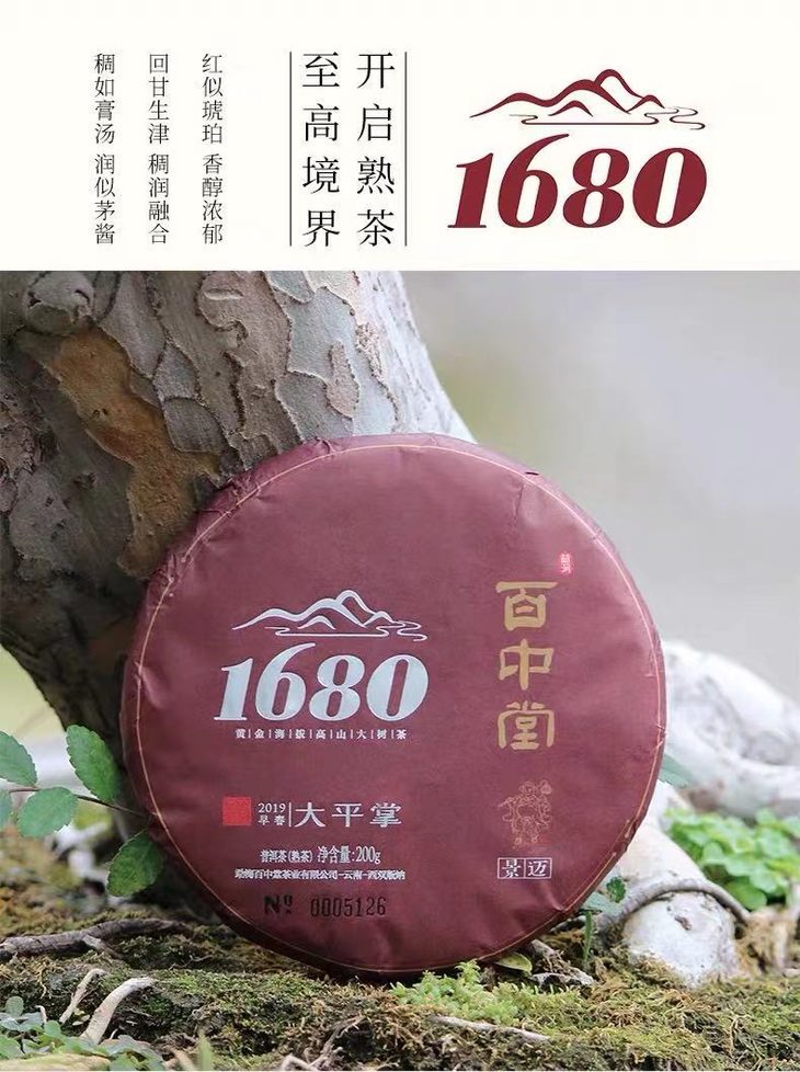 百中堂 2019年 1680大平掌高山大树 景迈普洱熟茶 200g