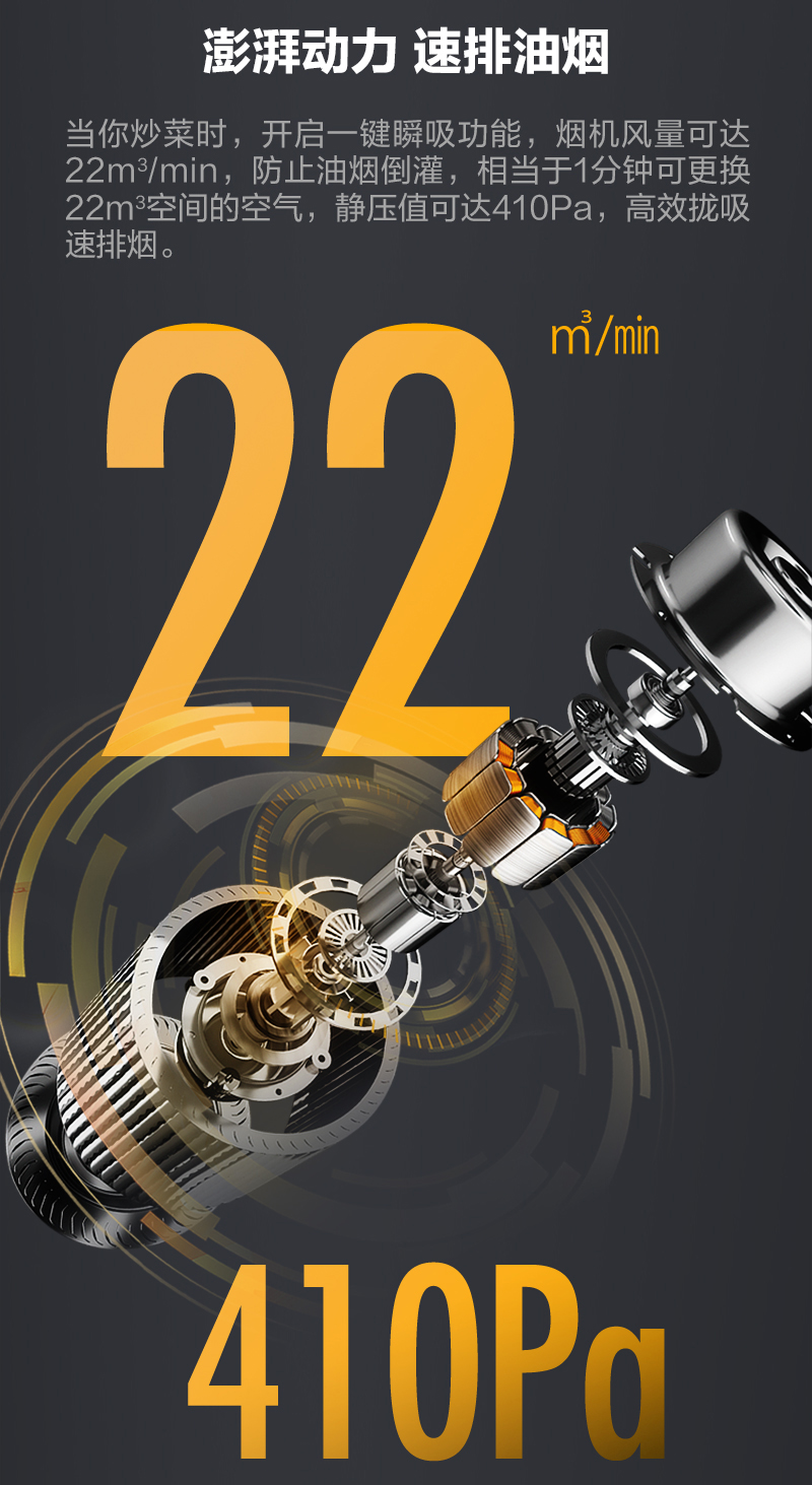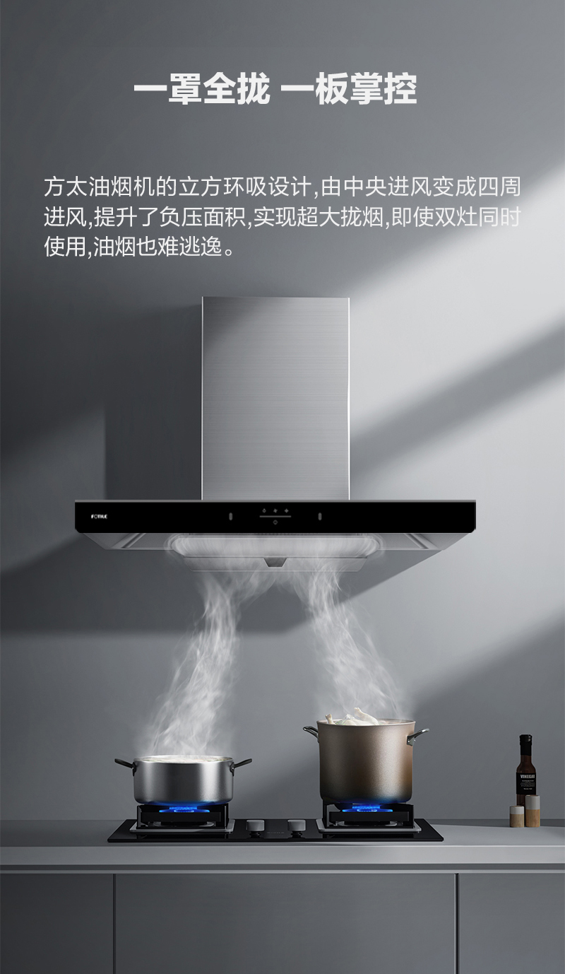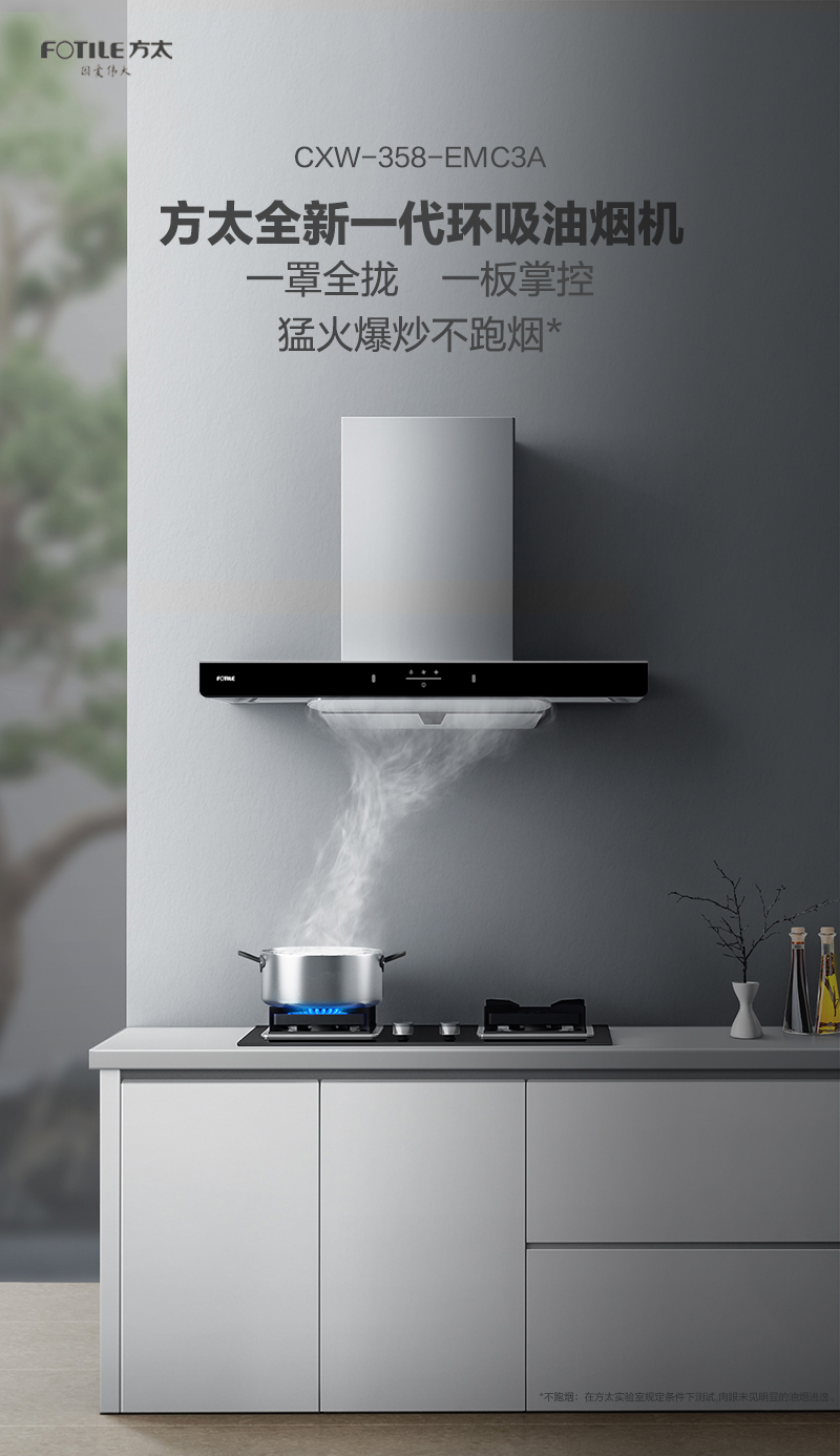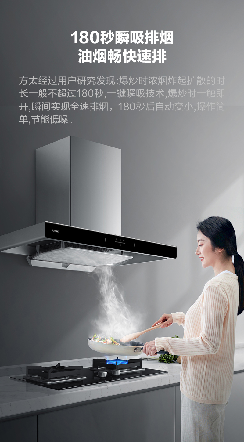方太 FOTILE 欧式油烟 一键瞬吸 手感智控 清洁省心 180秒瞬吸排烟 22m³/min大风量 家用式抽油烟 CXW-358-EMC3A