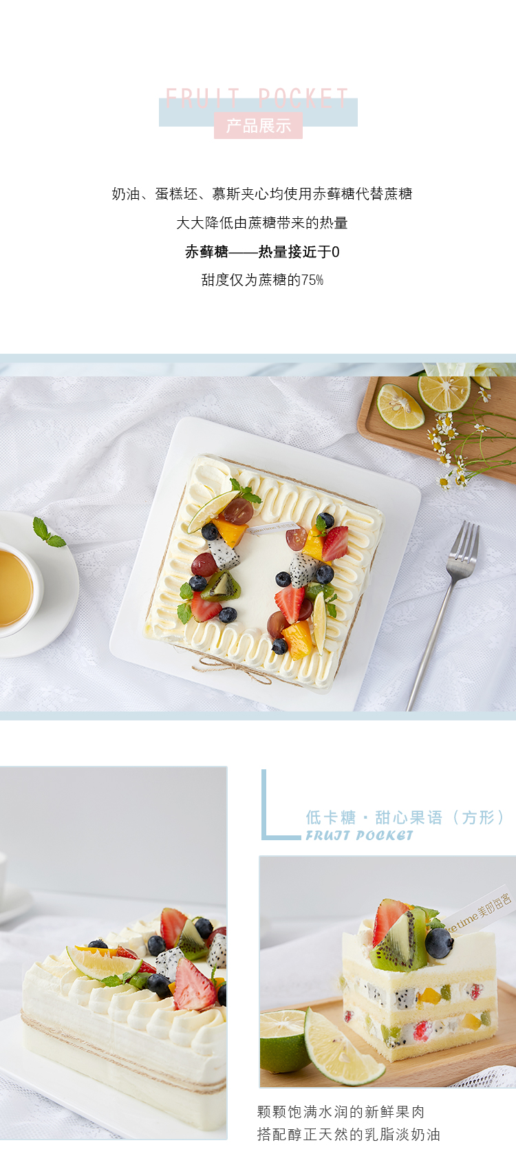 2、奶油、蛋糕坯我们均使用赤藓糖代替蔗糖,赤藓糖--热量接近于0,甜度仅为蔗糖的75%,用赤藓糖替代加入蛋糕中的蔗糖,大大降低由蔗糖带来的热量。