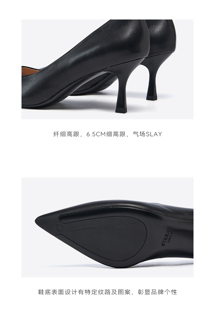 星期六优雅单鞋休闲细跟尖头牛皮高跟鞋SS33111161