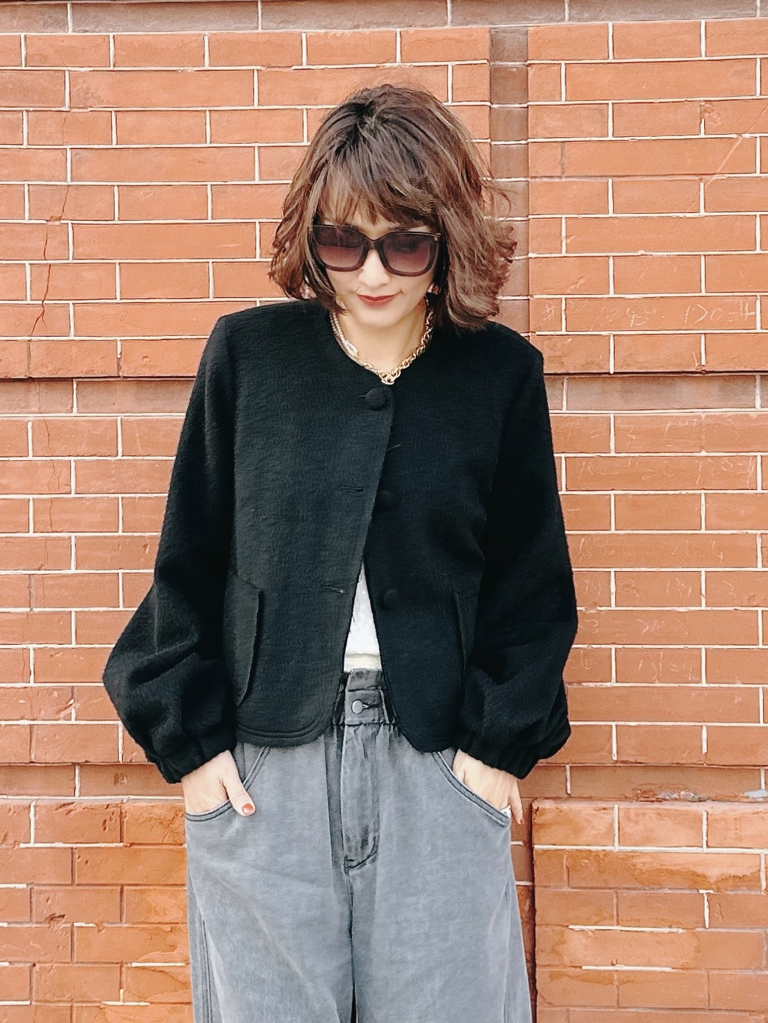 TYNVIE 灯笼袖高腰小外套 - 黑色