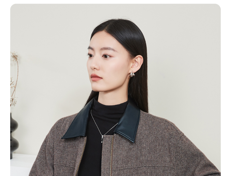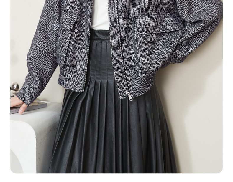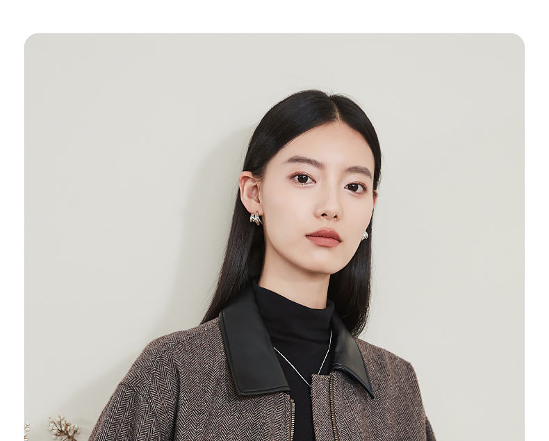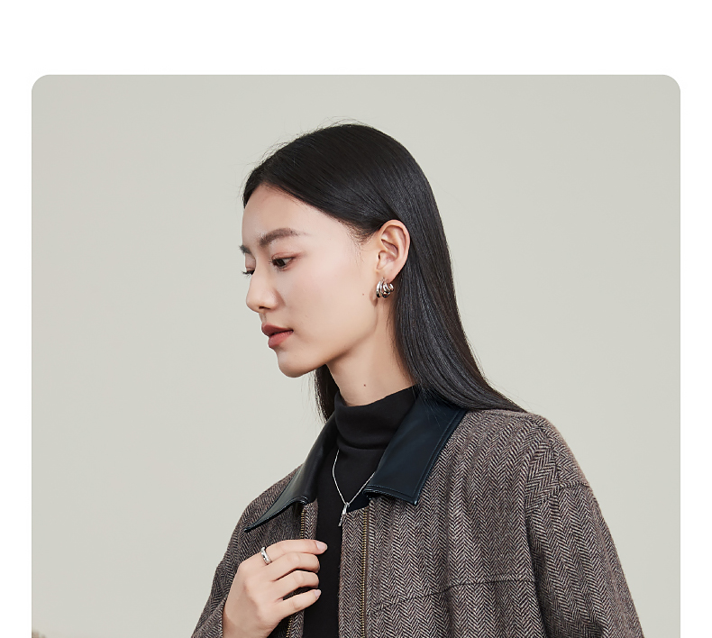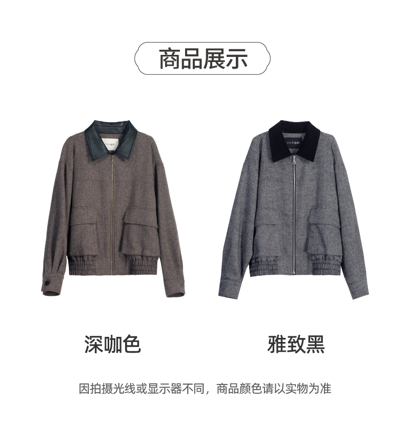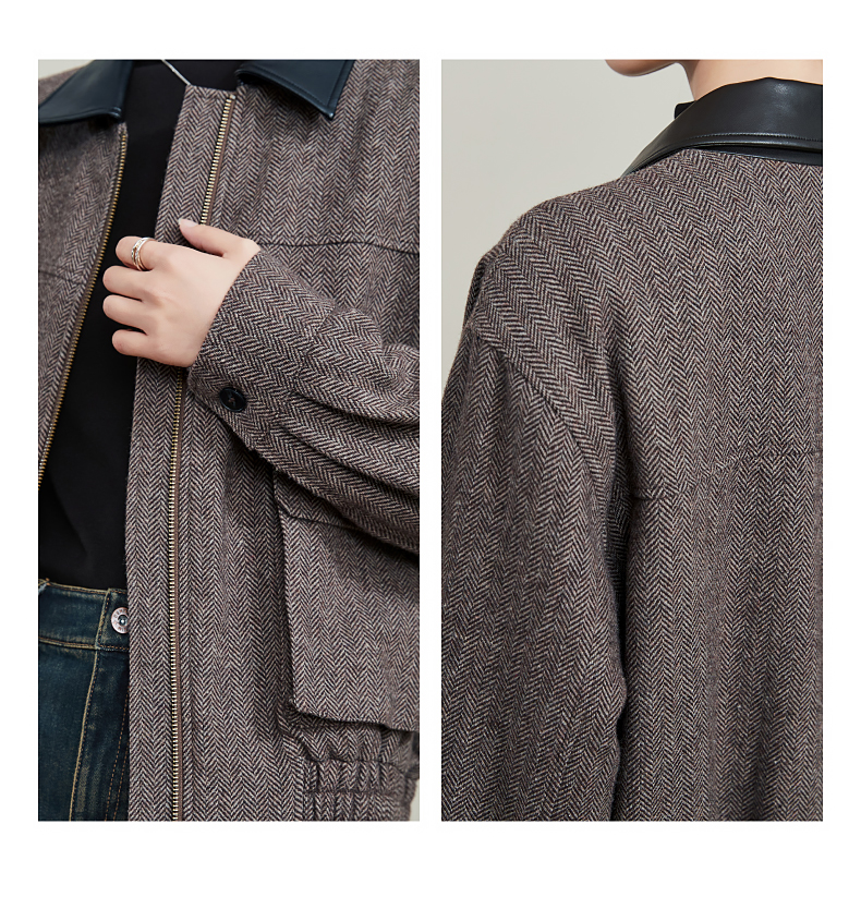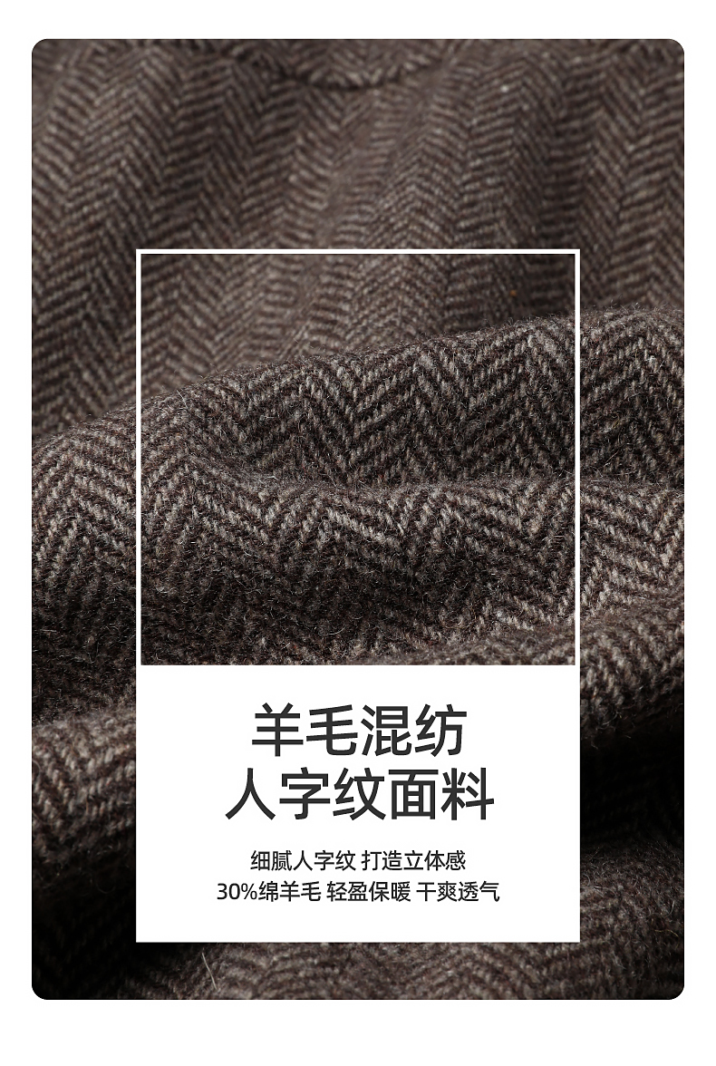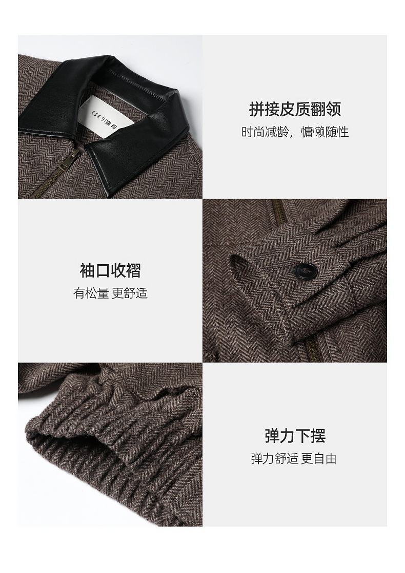 【超值!羊毛夹克外套】逸阳复古翻领人字纹短款宽松简约通勤外套3904