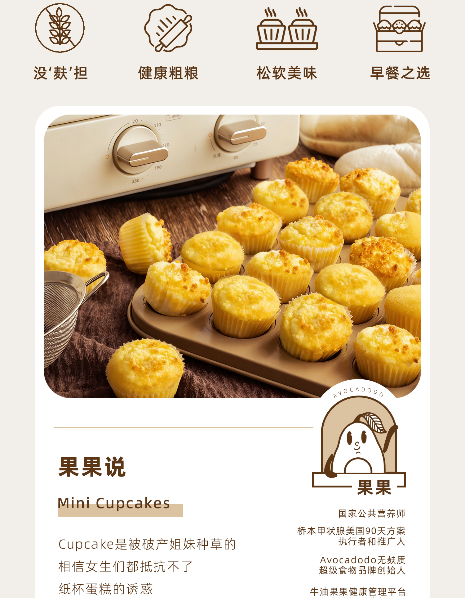 Avocadodo迷你纸杯蛋糕香草不牛奶小麦麸质敏宝早餐牛油果果桥本