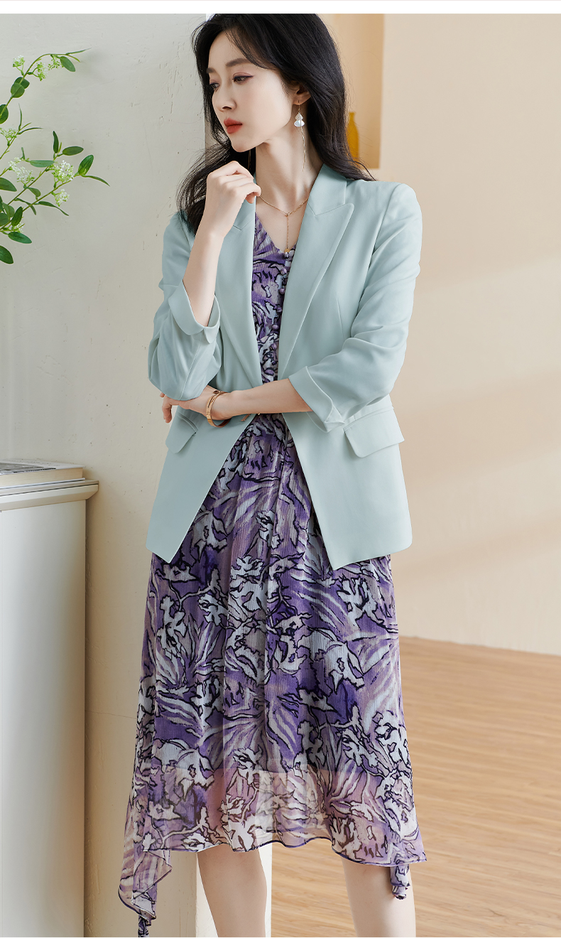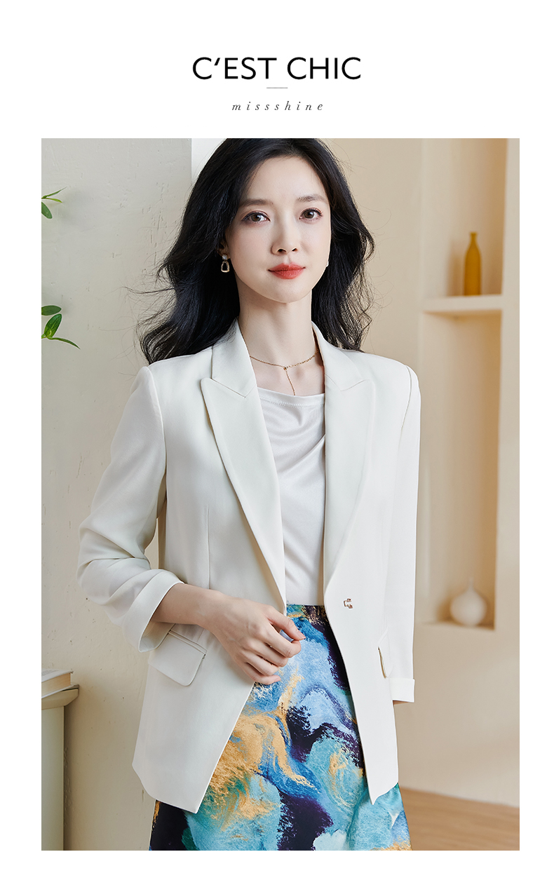 剩S/M 别致七分袖醋酸西服知性职业小西装外套女0824