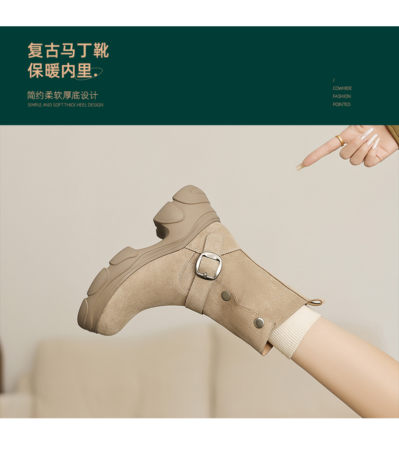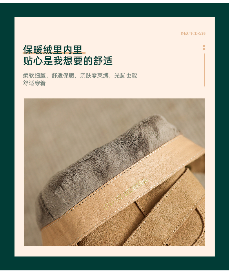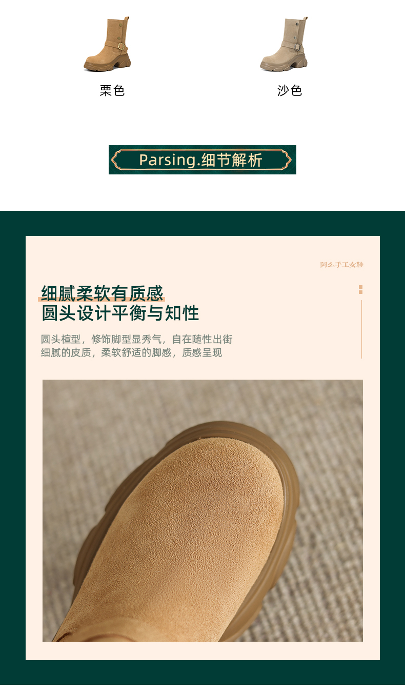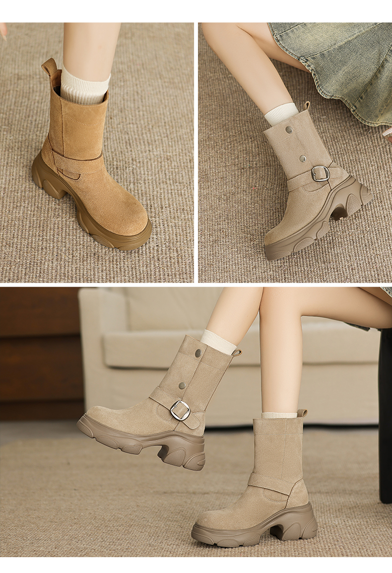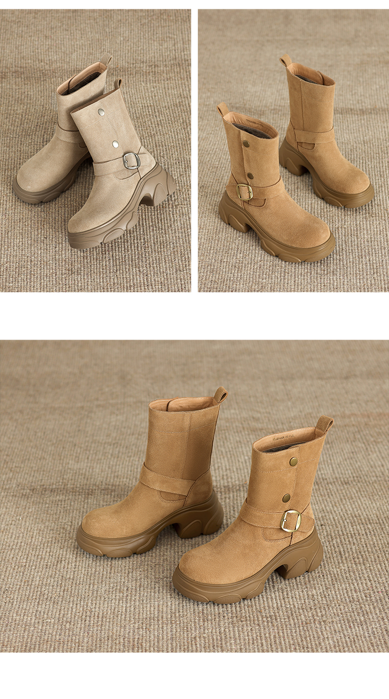 阿么手工女鞋超厚加绒【羊毛】小个子中筒靴子真皮时髦潮堆堆靴7CM