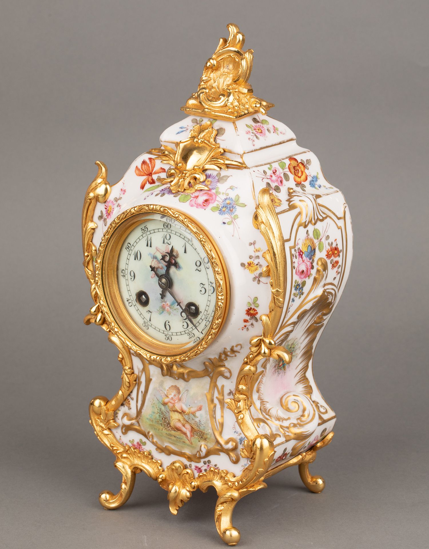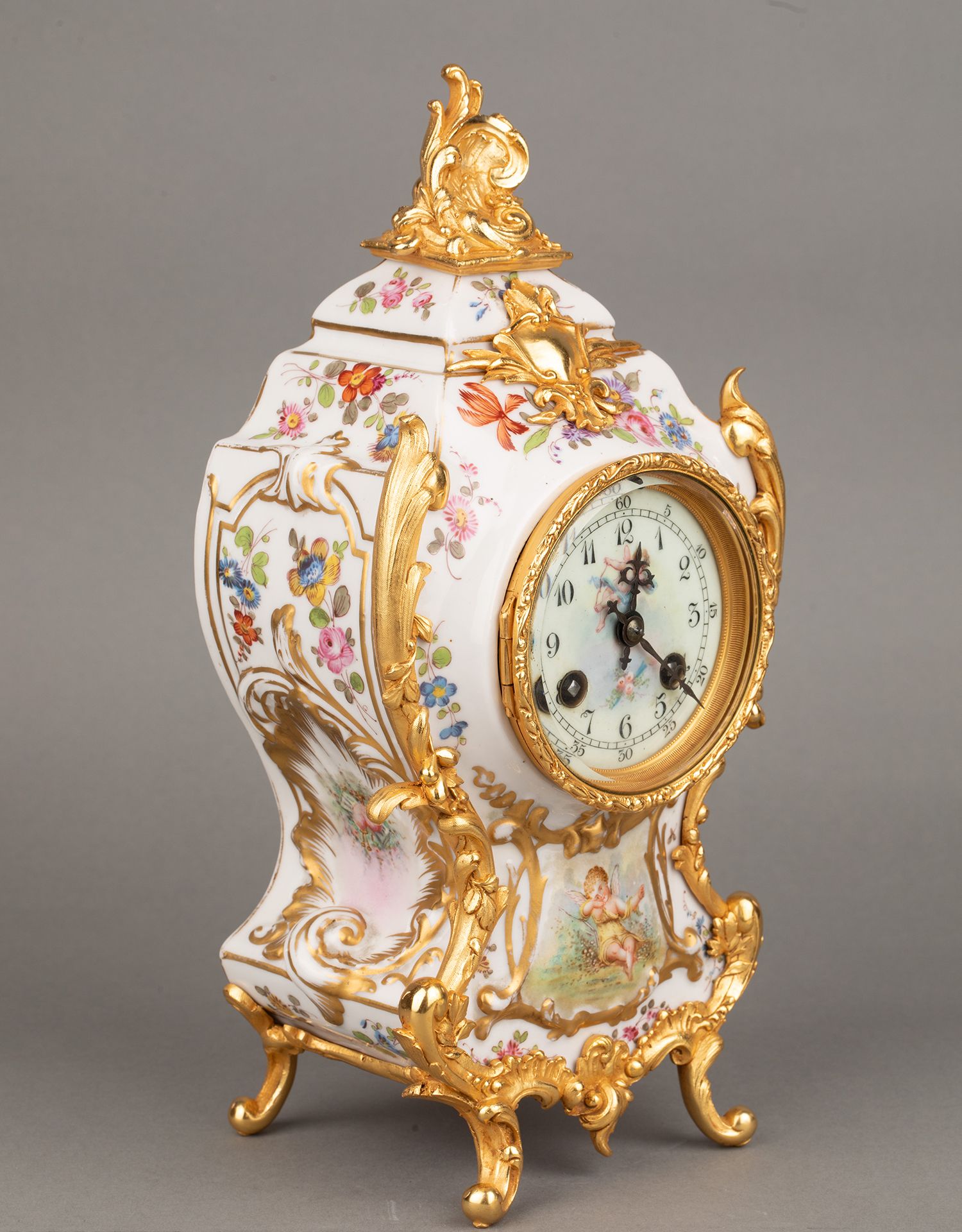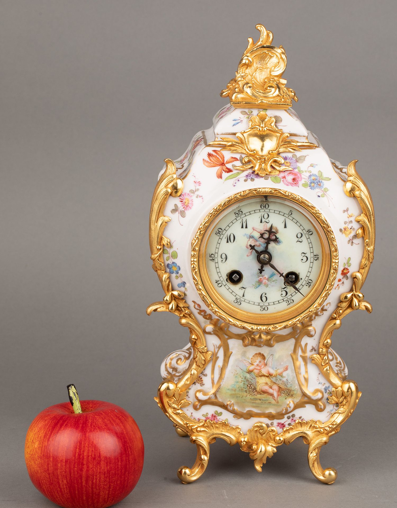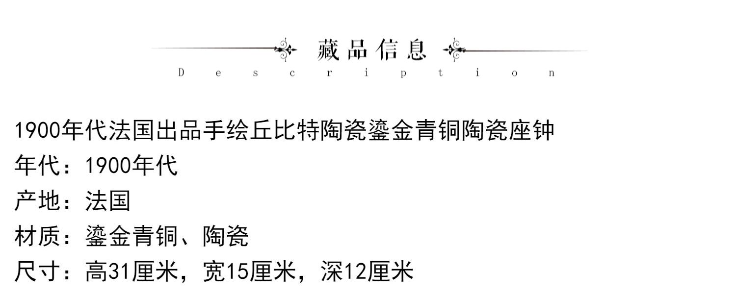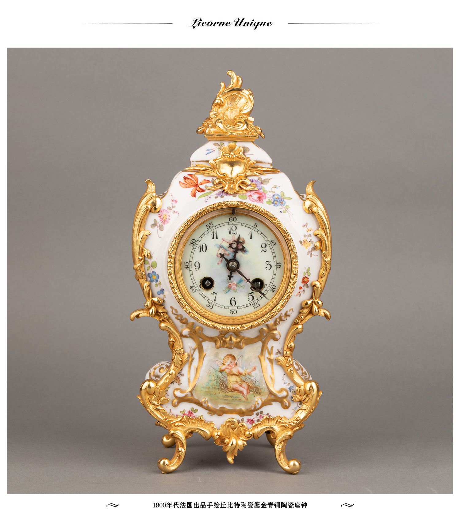 独角鹿西洋古董1900年代法国出品手绘丘比特陶瓷鎏金青铜陶瓷座钟