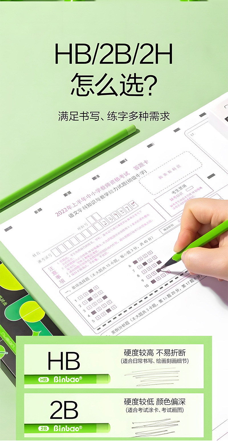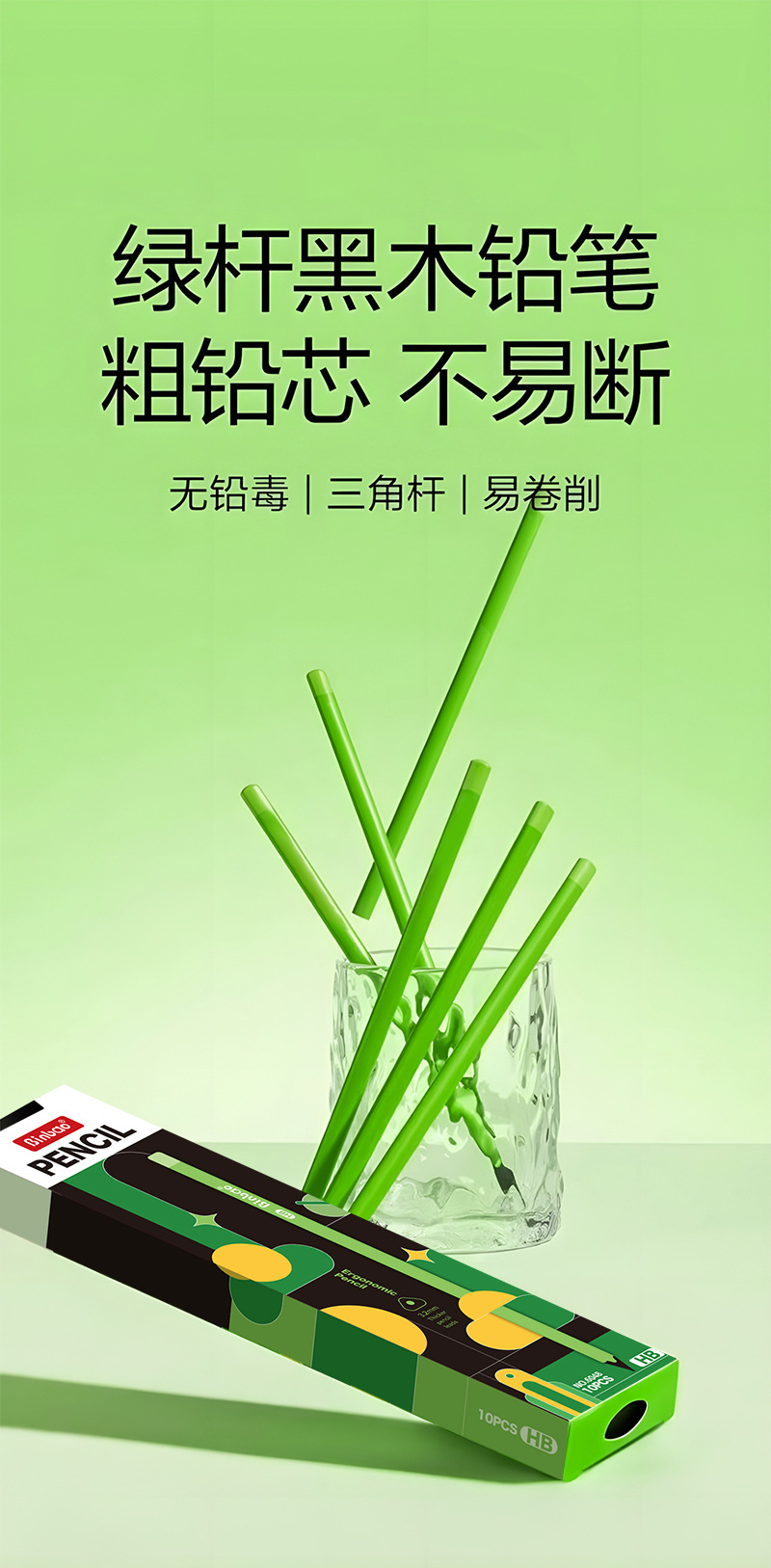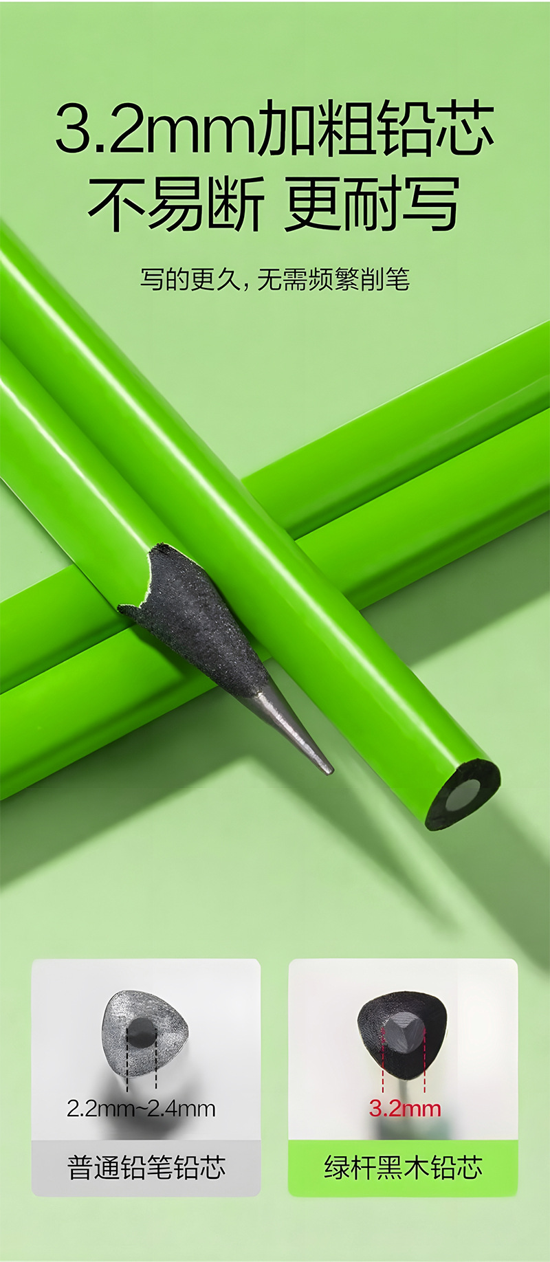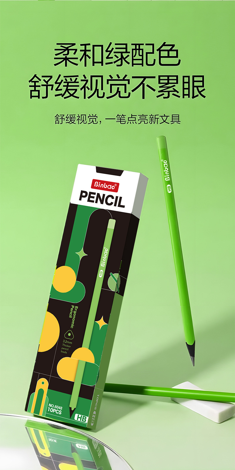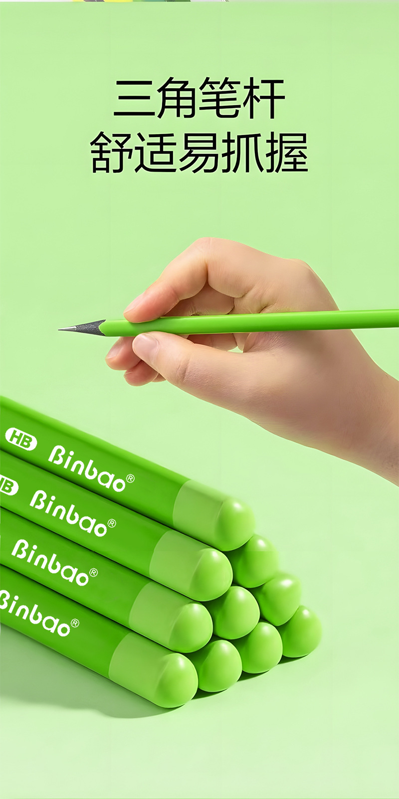 开学福利!【买一盒送一盒 到手20支】缤雹小绿杆三角黑木铅笔小学生用加粗铅芯HB/2B儿童书写铅笔