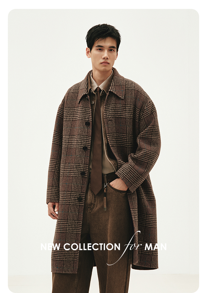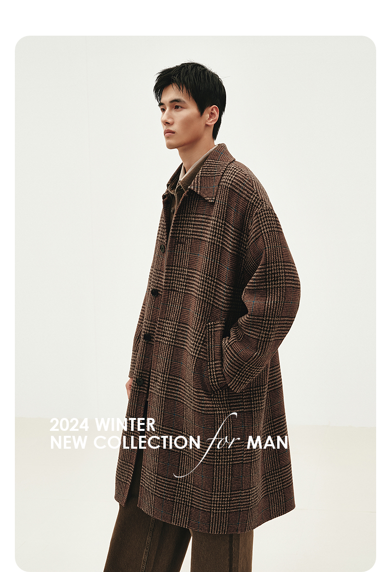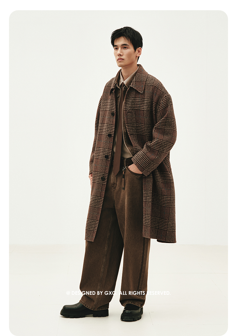 GXG男装 咖格宽松休闲通勤长款大衣 热卖G24X264004