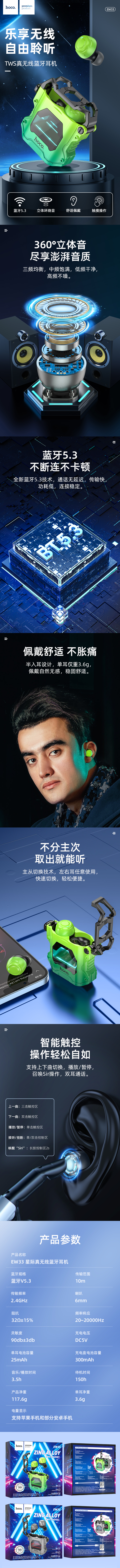 浩酷(hoco.)EW33 星际真无线蓝牙耳机EW33