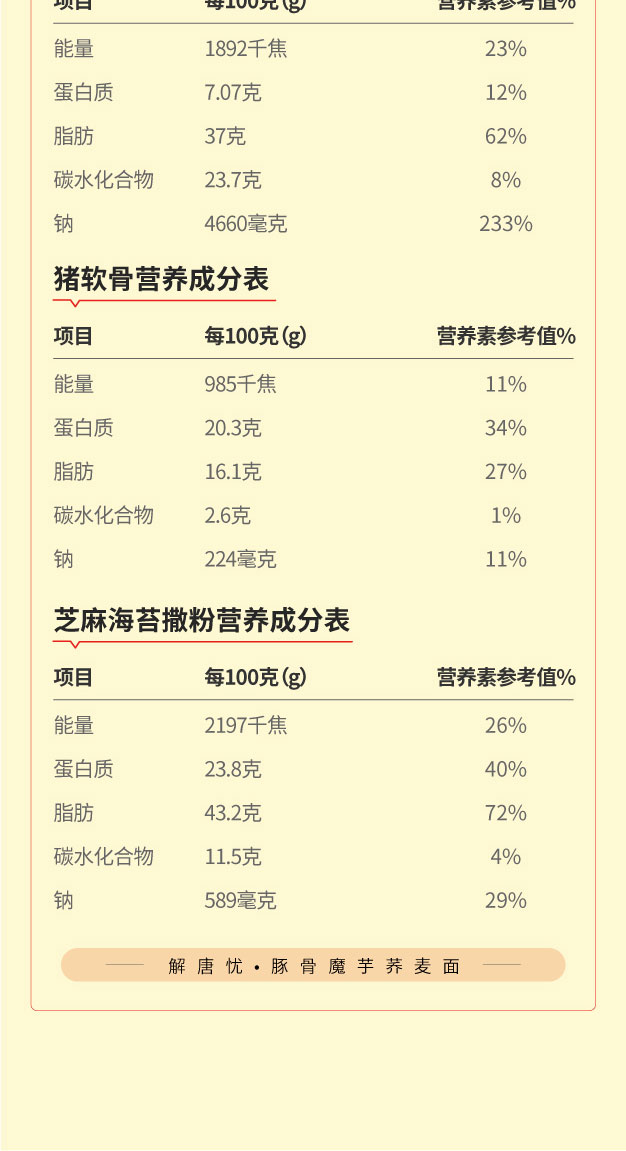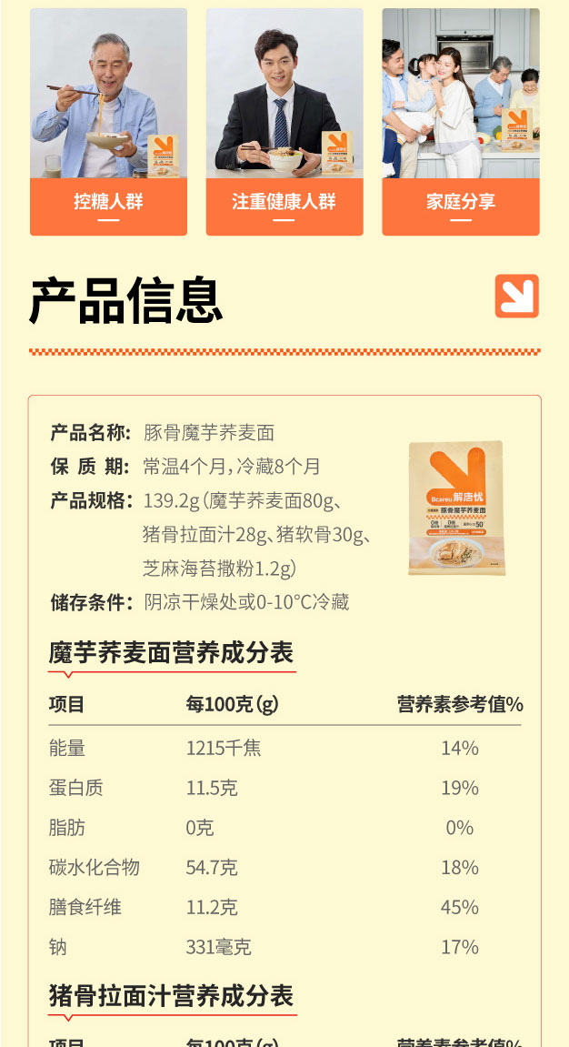 解唐忧豚骨魔芋荞麦面139.2g