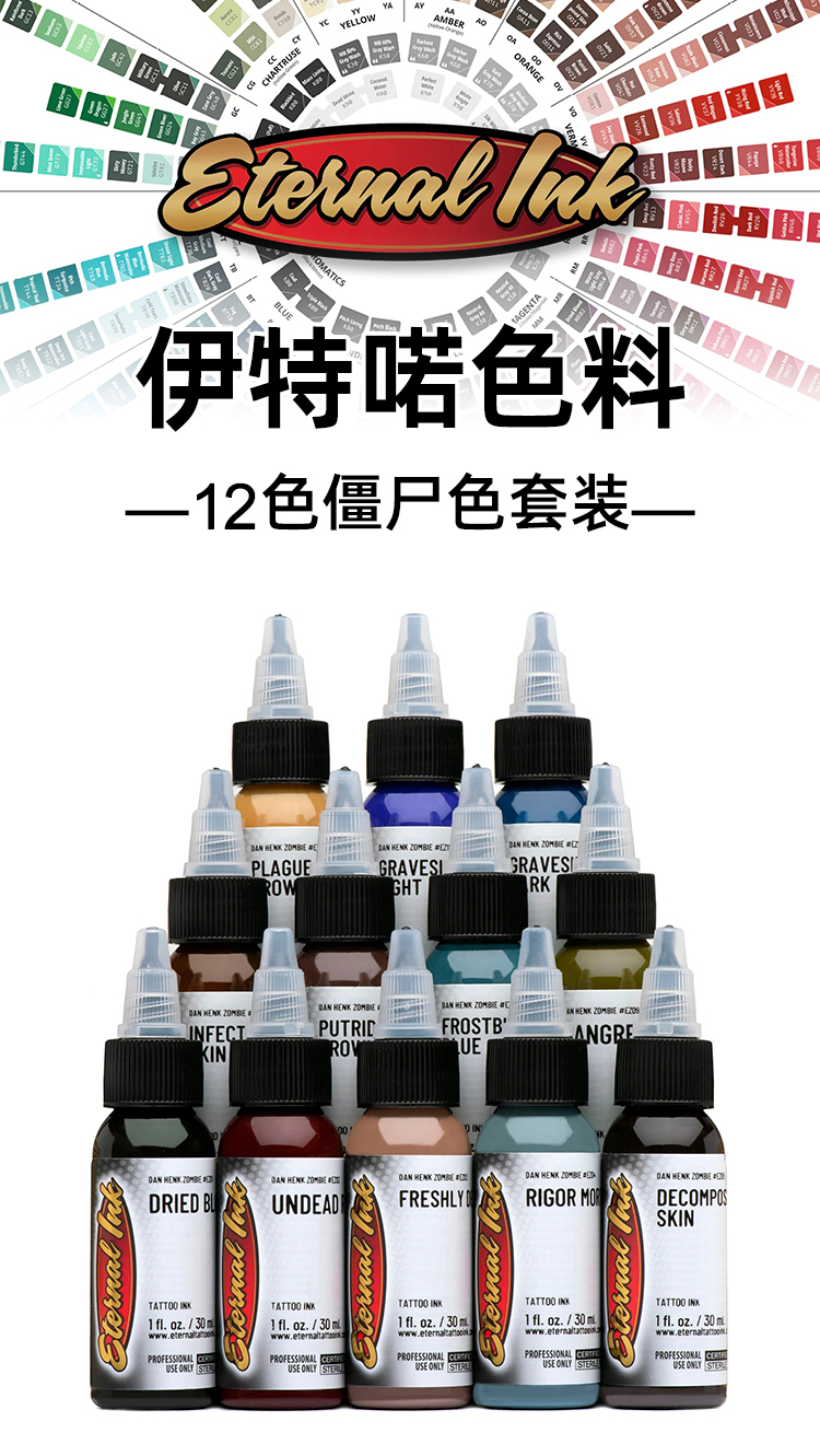 伊特喏纹身彩色僵尸12色套装彩色偏色全套颜料惊蛰刺青器材