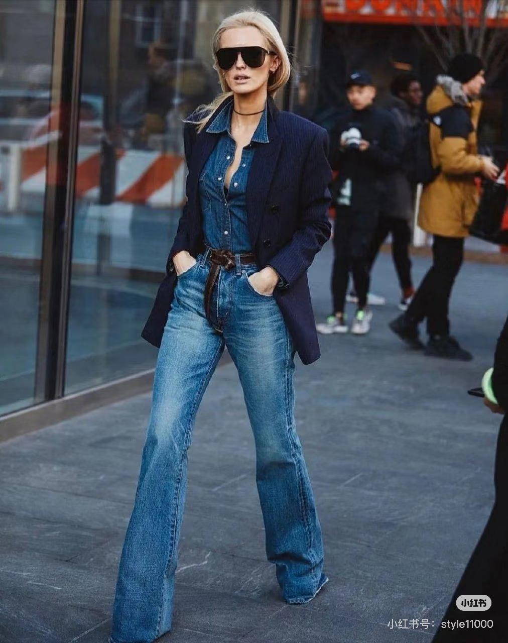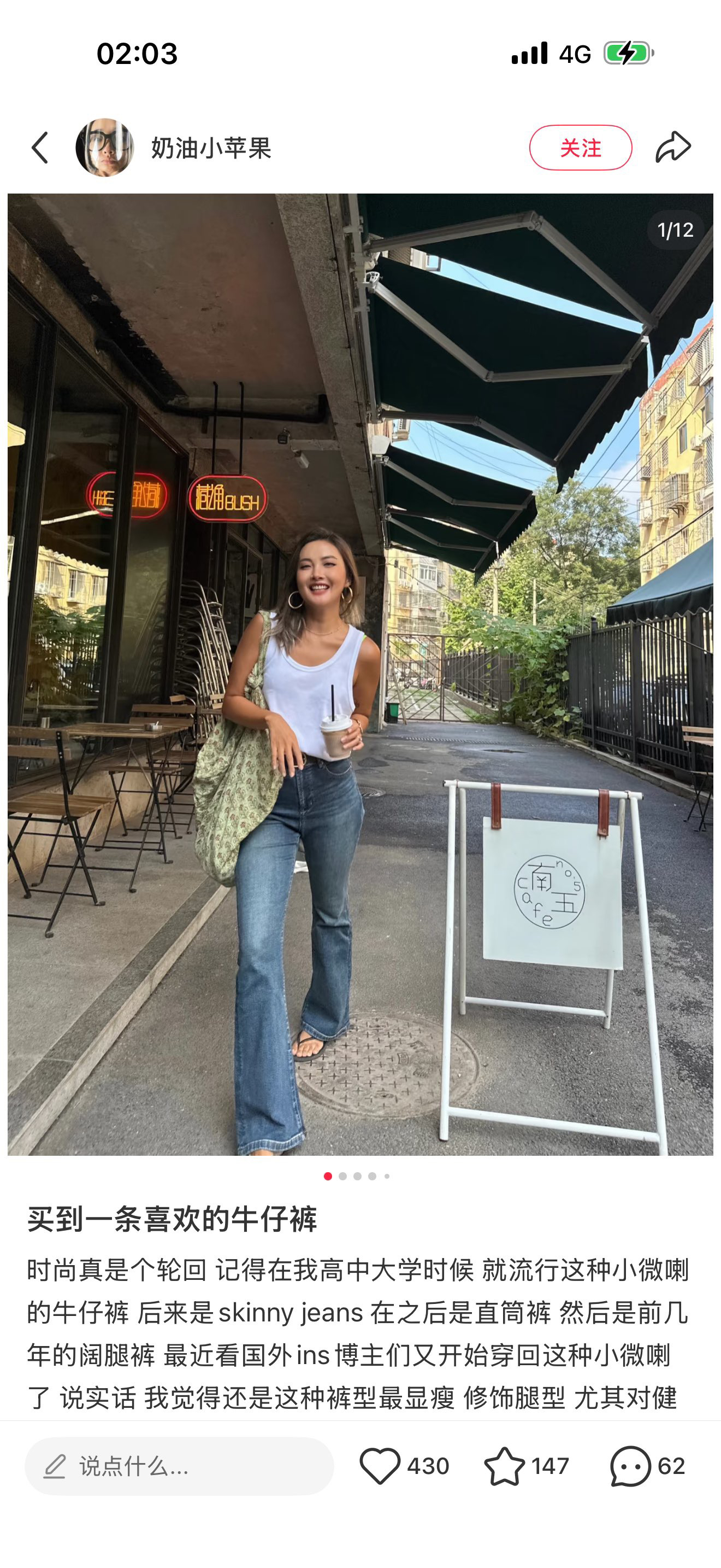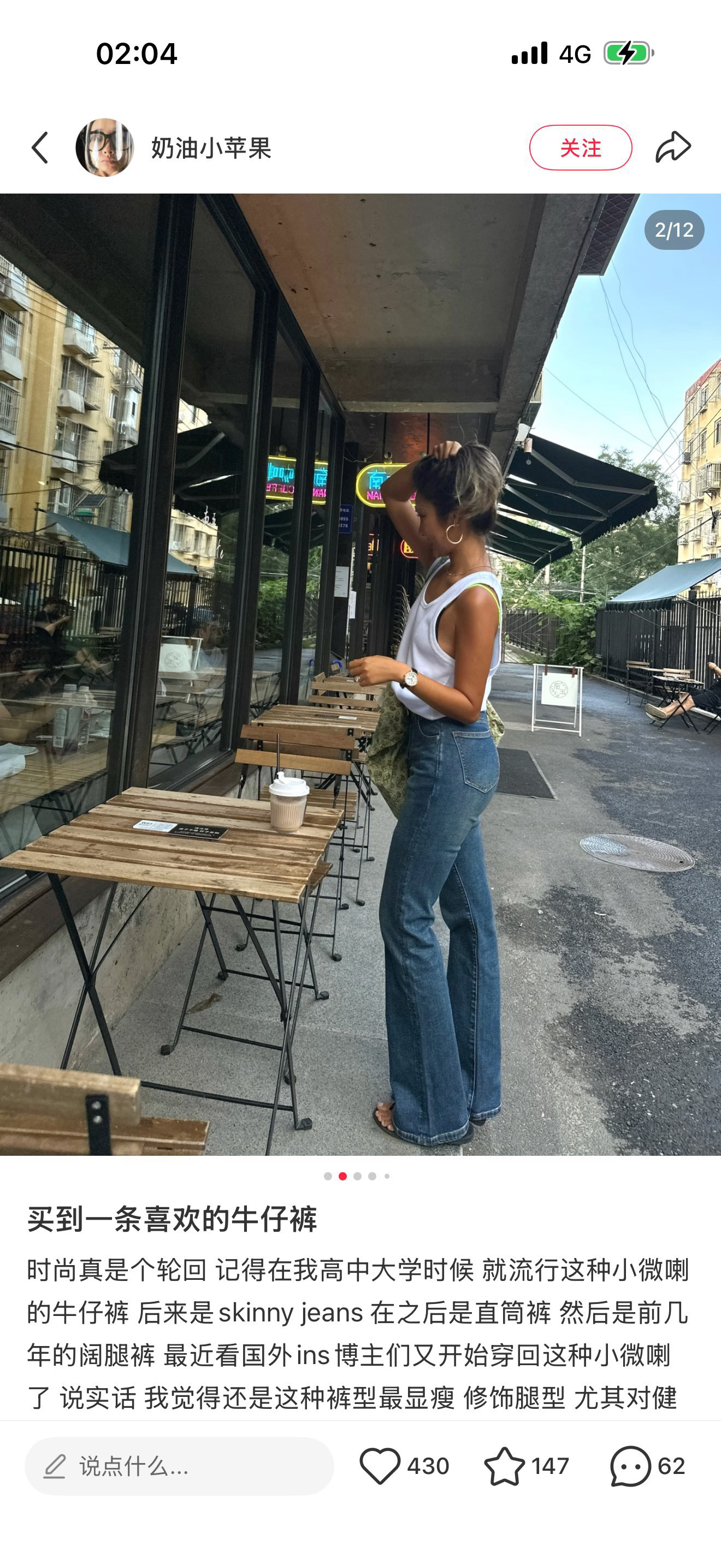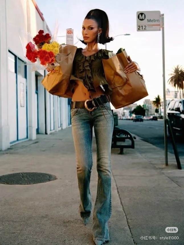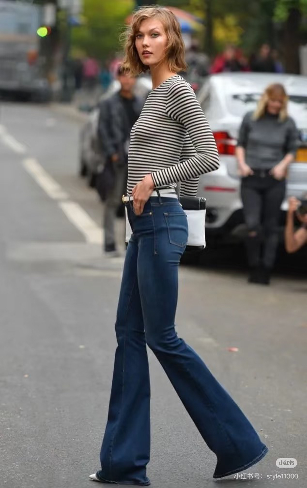 穿搭参考!感觉微喇牛仔裤比较友好,遮肉还拉长腿型,梨形身材也可以冲!~