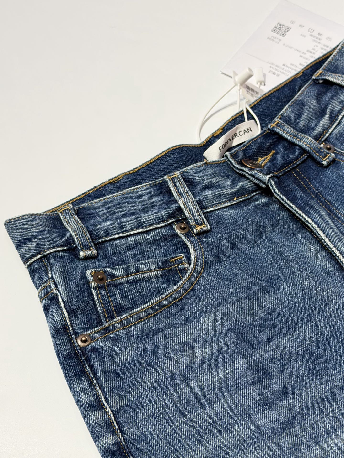 经过多次重工水洗工艺,打造出来很漂亮的复古水洗蓝,而且整体有竖向条纹的肌理感,视觉上更显瘦~