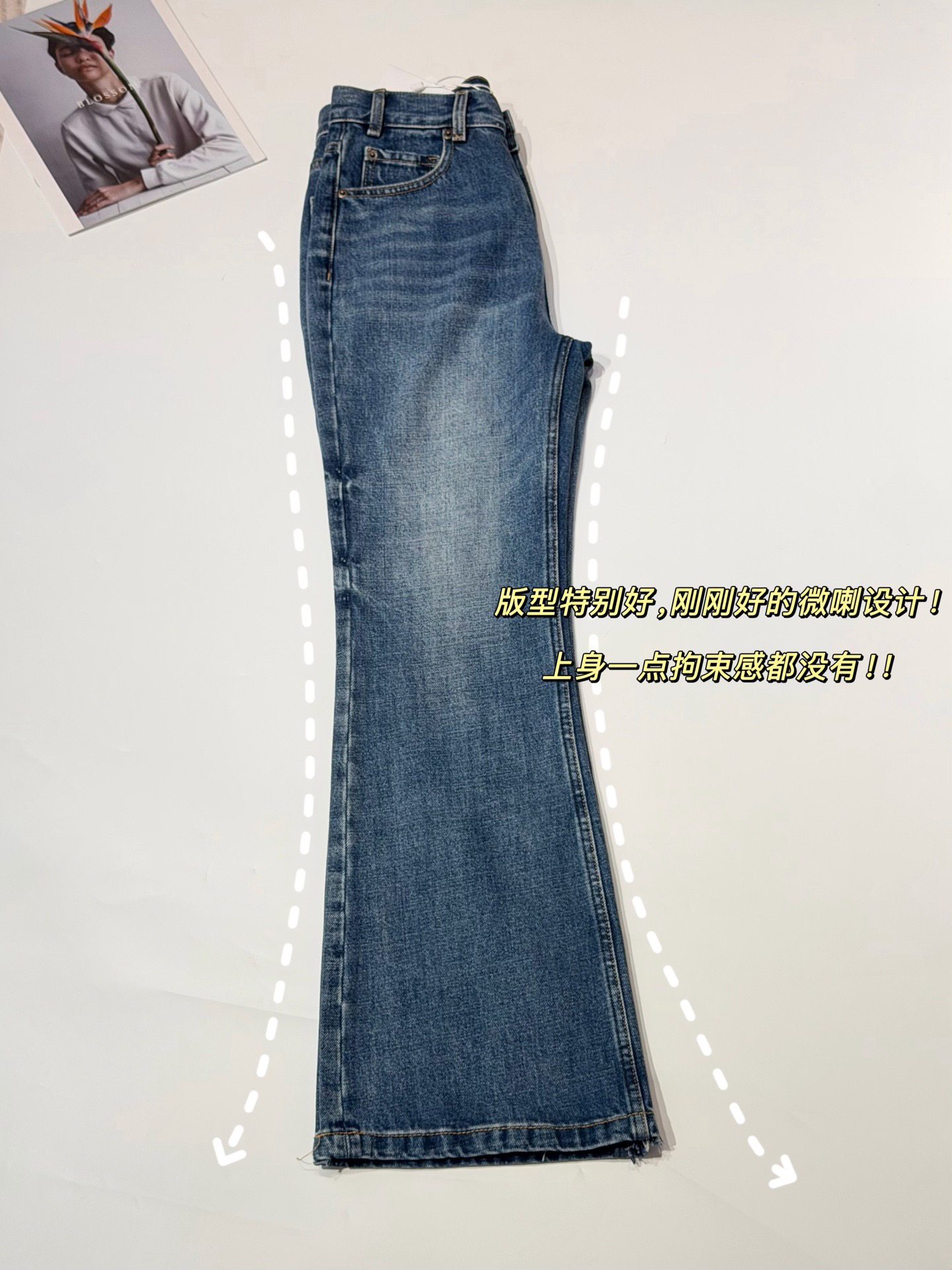 面料好的牛仔裤,无弹全棉微喇|穿上它,腿型自动“拉直”了!亦能够把小腹上的赘肉收得很舒服,上身非常非常显瘦显高妥妥大长腿。反复水洗把控深蹲无压力的穿着体验,都会让它在你的一年四季单品中一骑绝尘,成为当之无愧的搭配王!