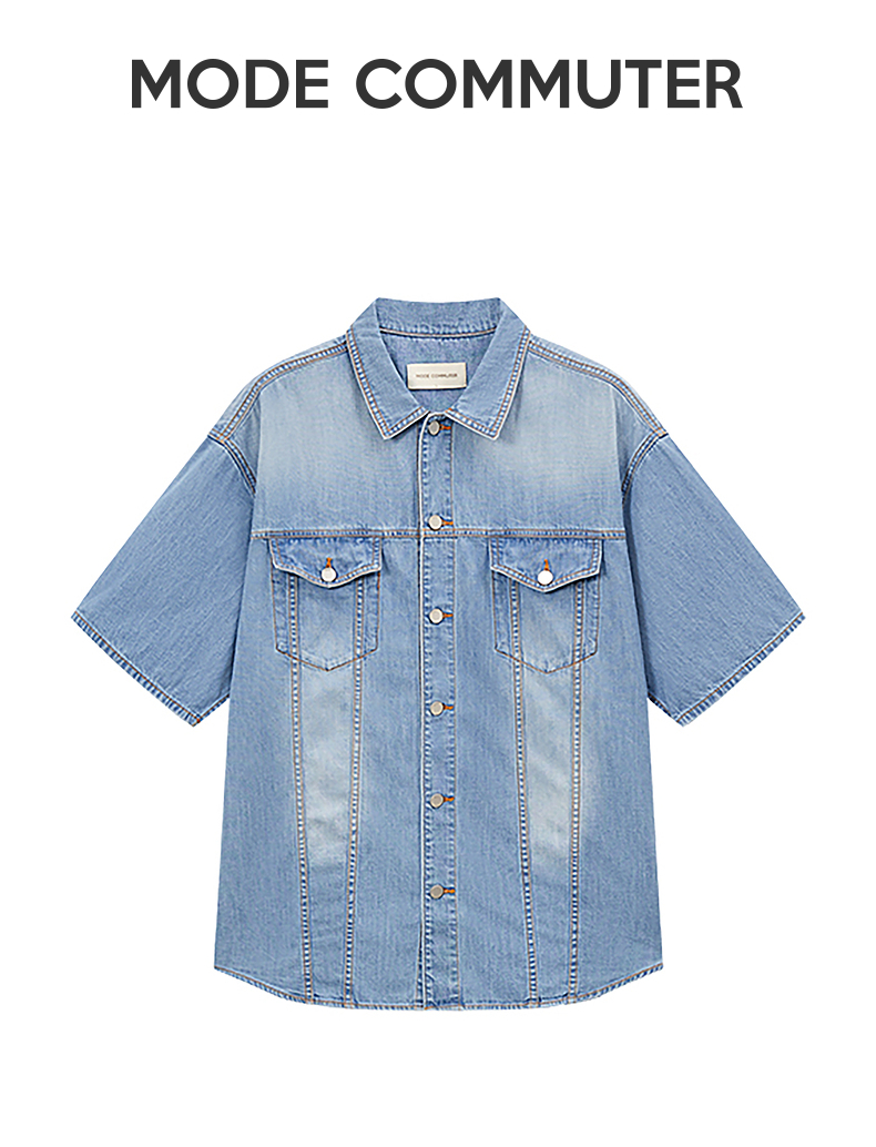 MC |MODE COMMUTER春季翻领宽松牛仔衫男短袖MCD123003A