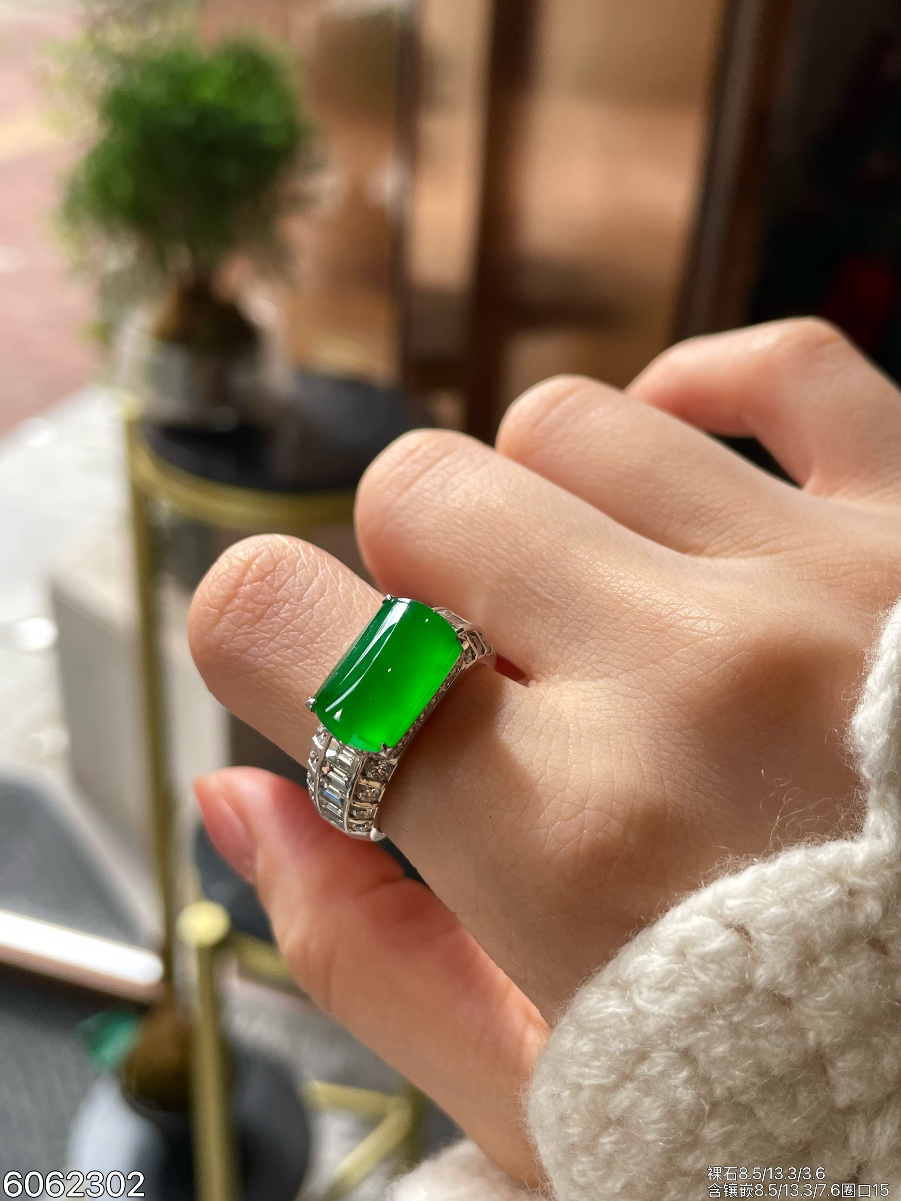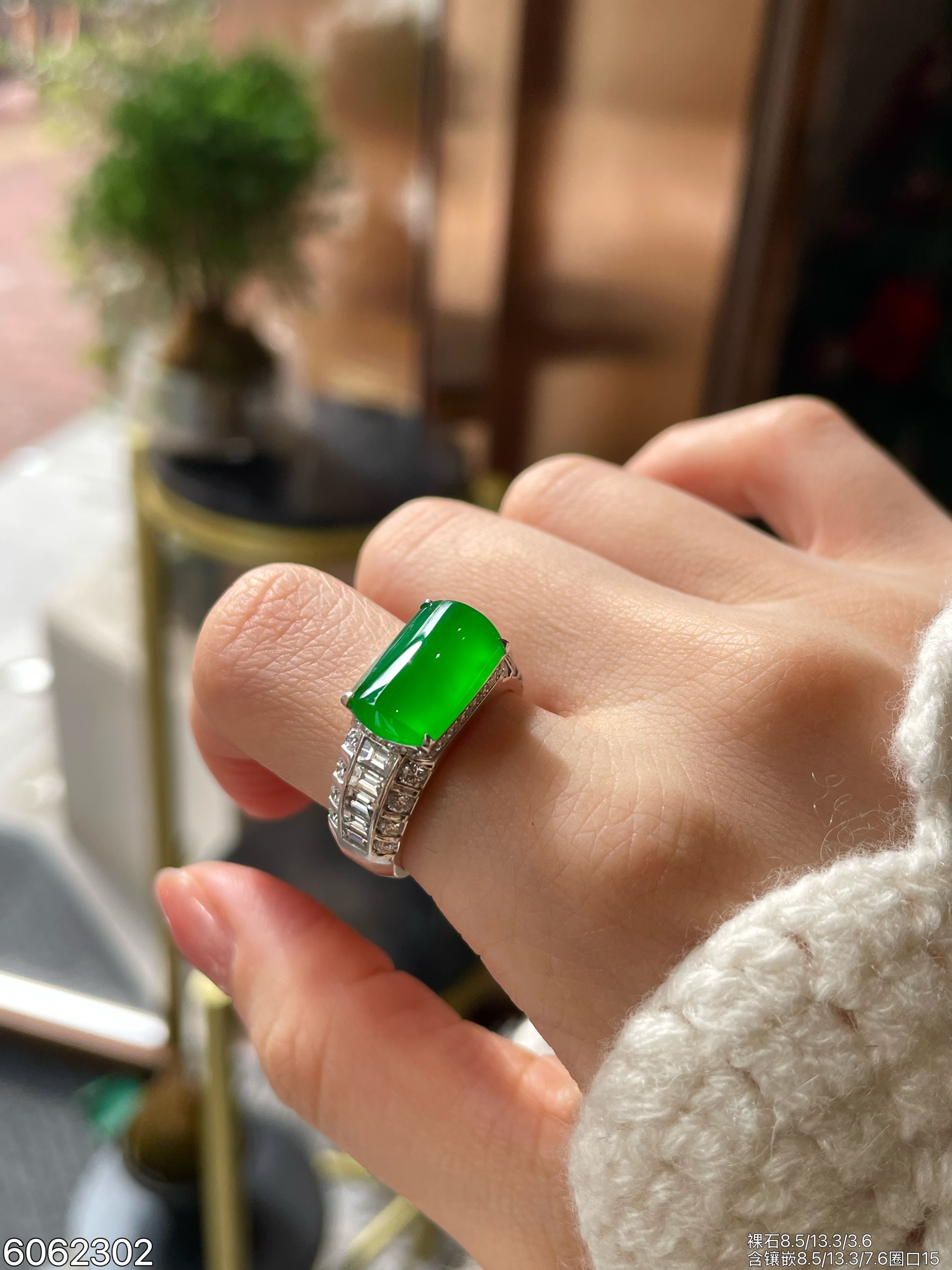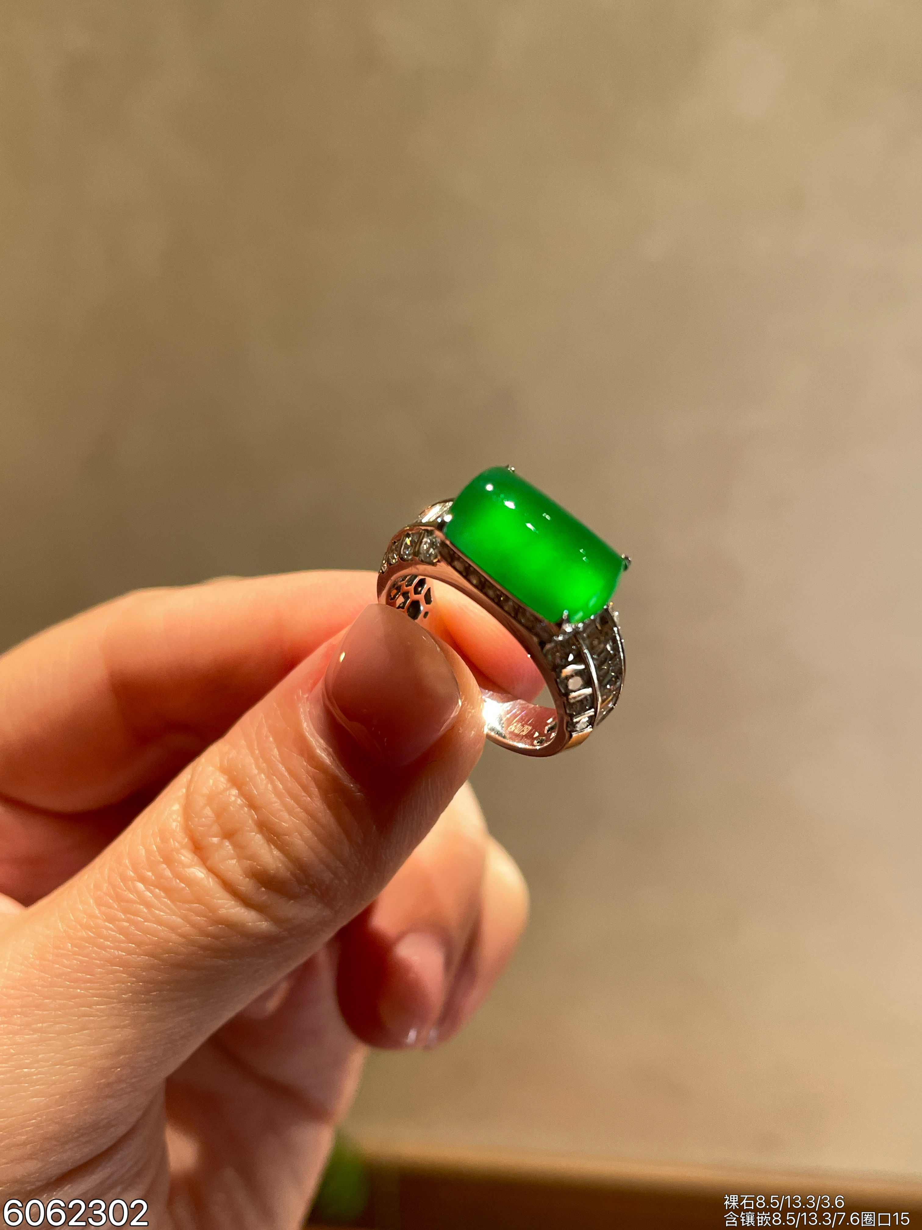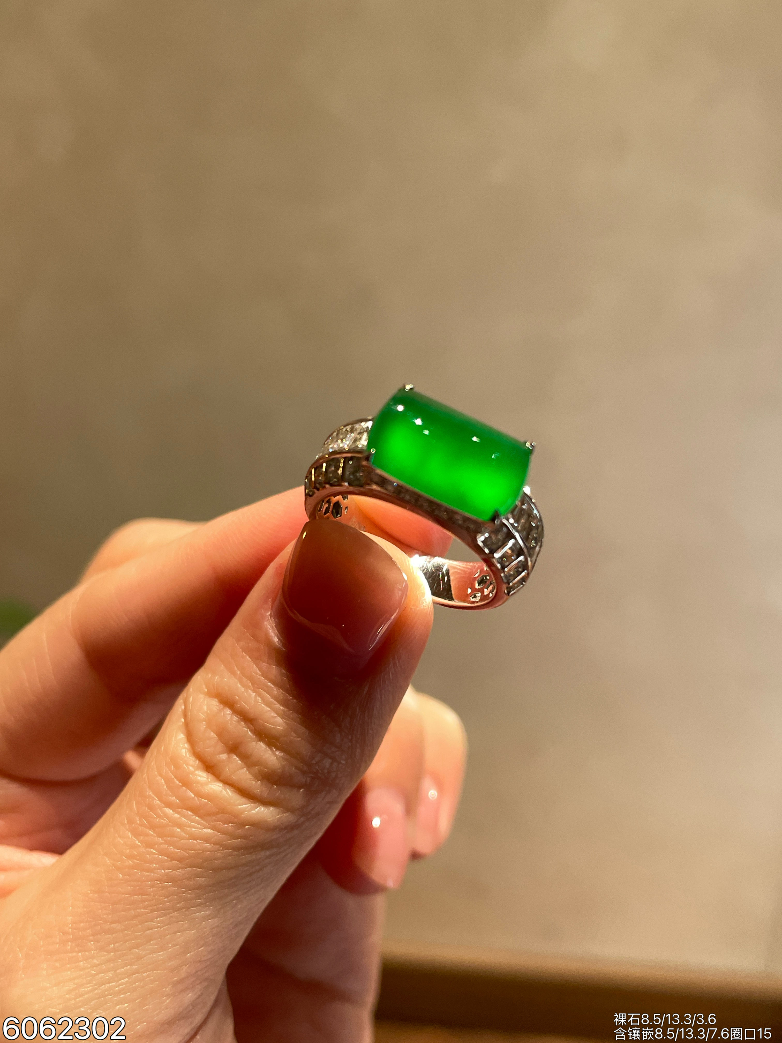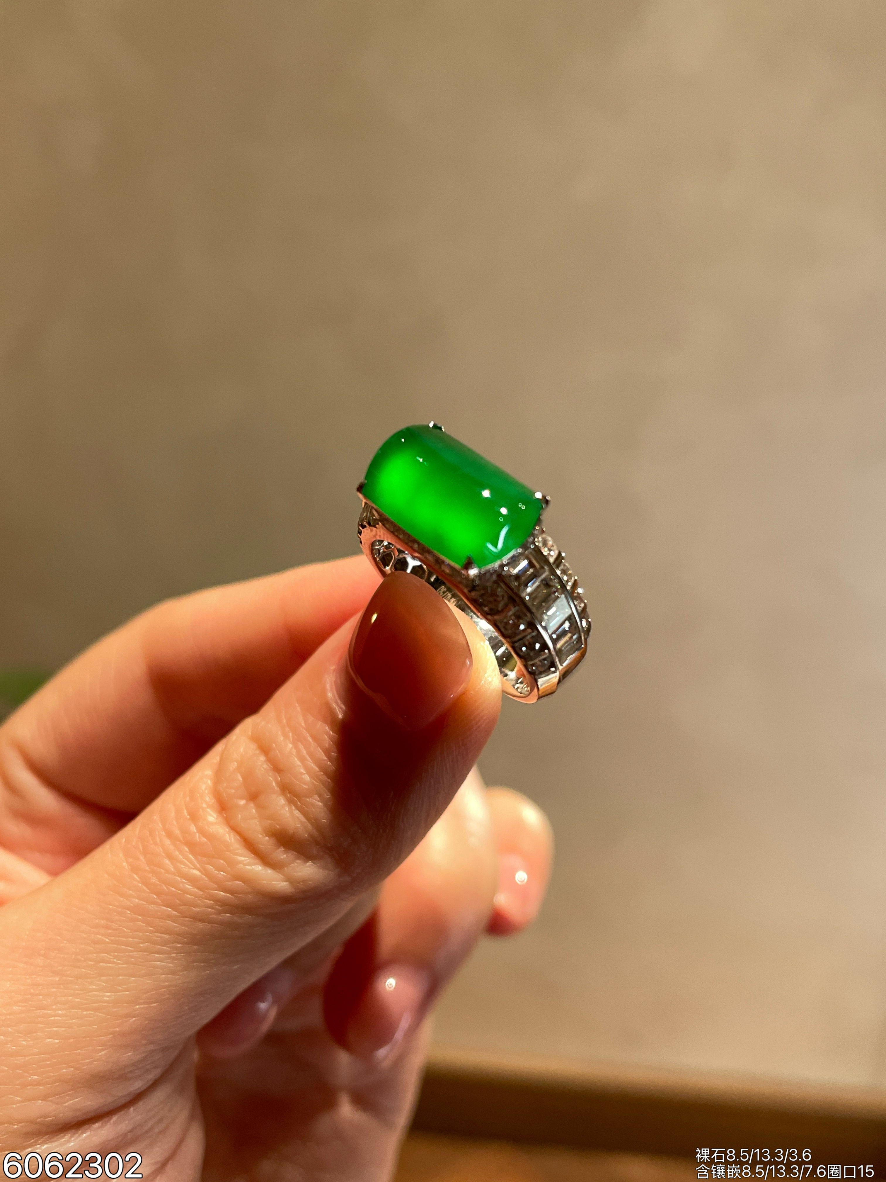 132-2123701,老坑高冰艳绿蛋面戒指,6599