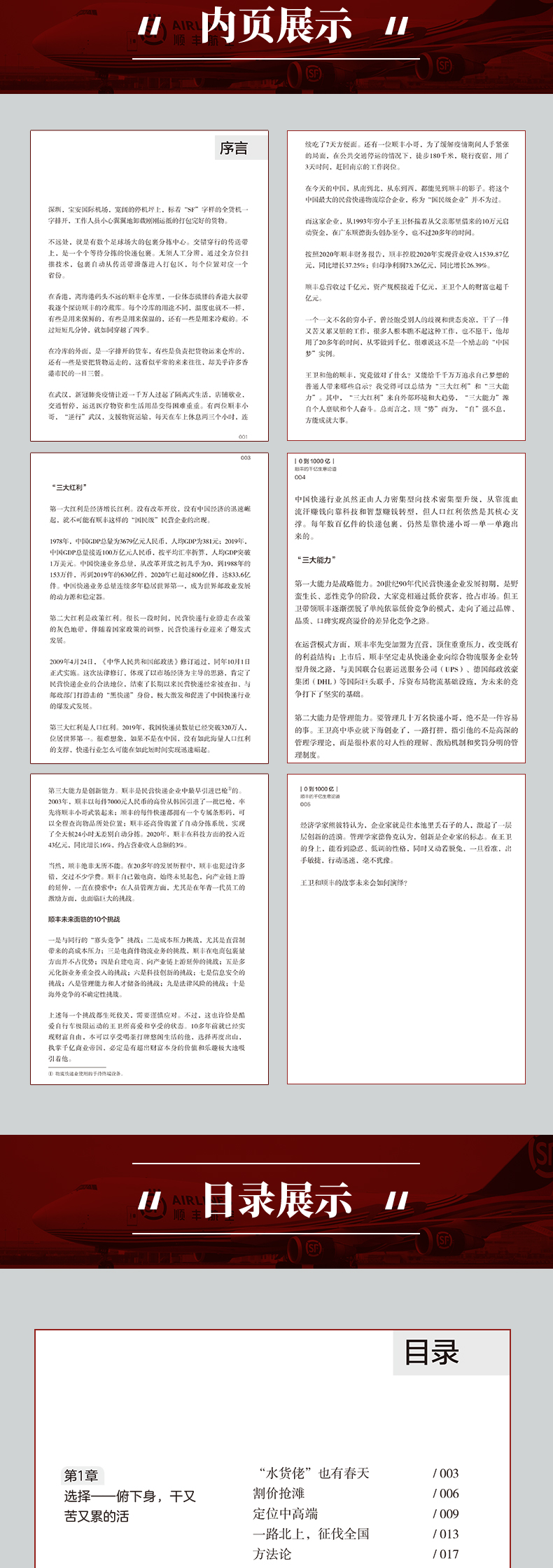 从肩扛手提到快递王国,从低利润到疯狂回报,解码顺丰创业与管理方法论,为中国实体企业崛起贡献力量。