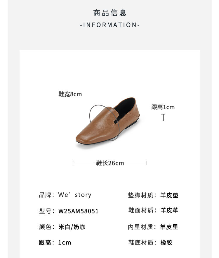 Westory2025年春季小方头平底休闲通勤乐福深口单鞋W25AM58051